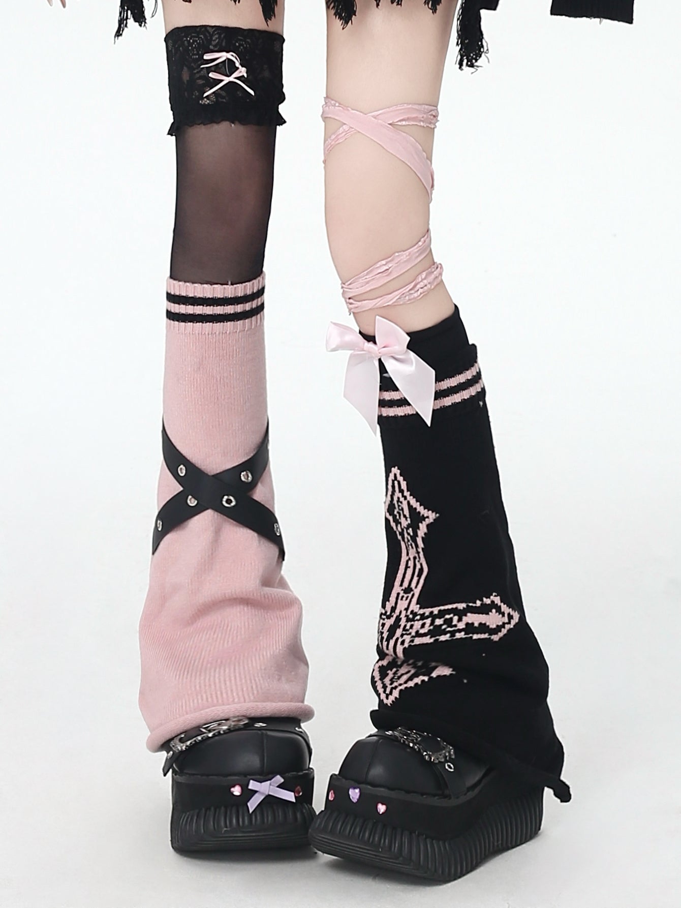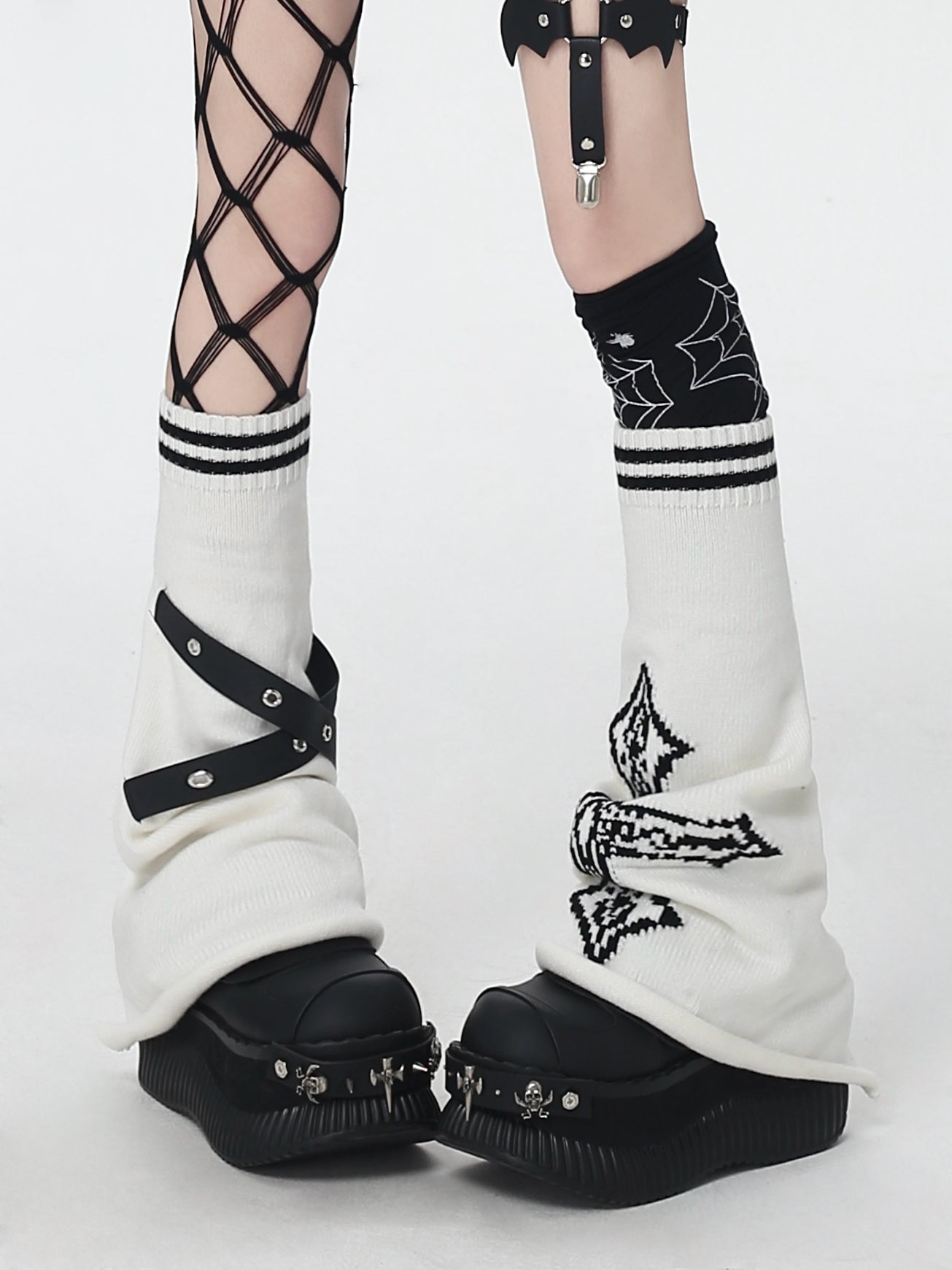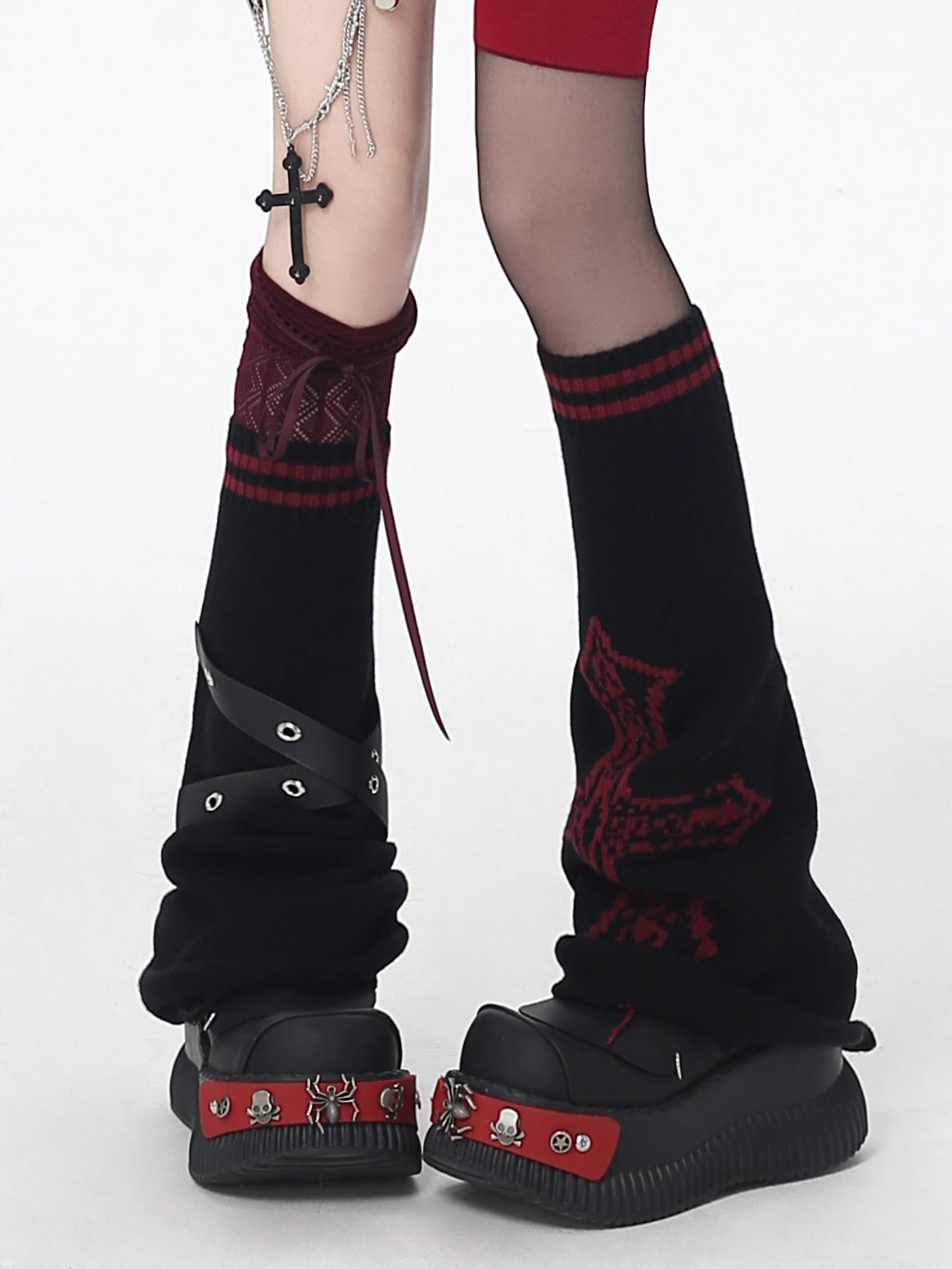 十字架モチーフとストライプが映えるアンダーニーハイソックス。独特なデザイン感で、コーディネートにアクセントをプラス。地雷系・ゴスロリ・原宿系など、さまざまなアジアンヤングカルチャーのスタイルにぴったりです。