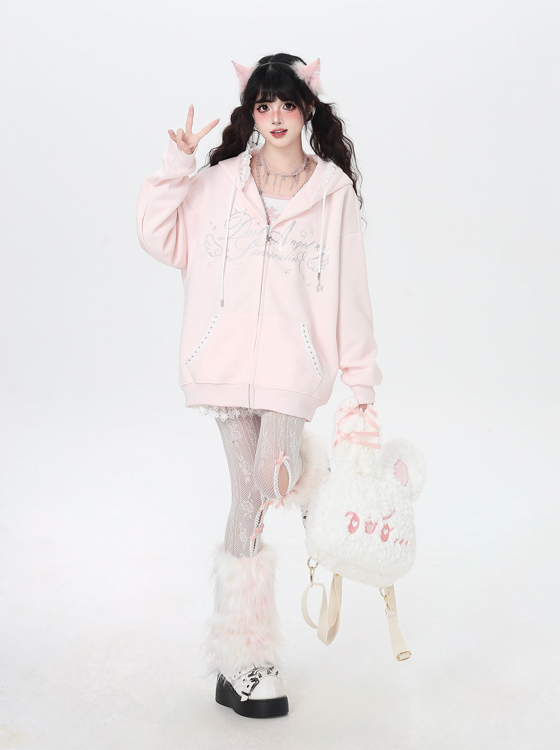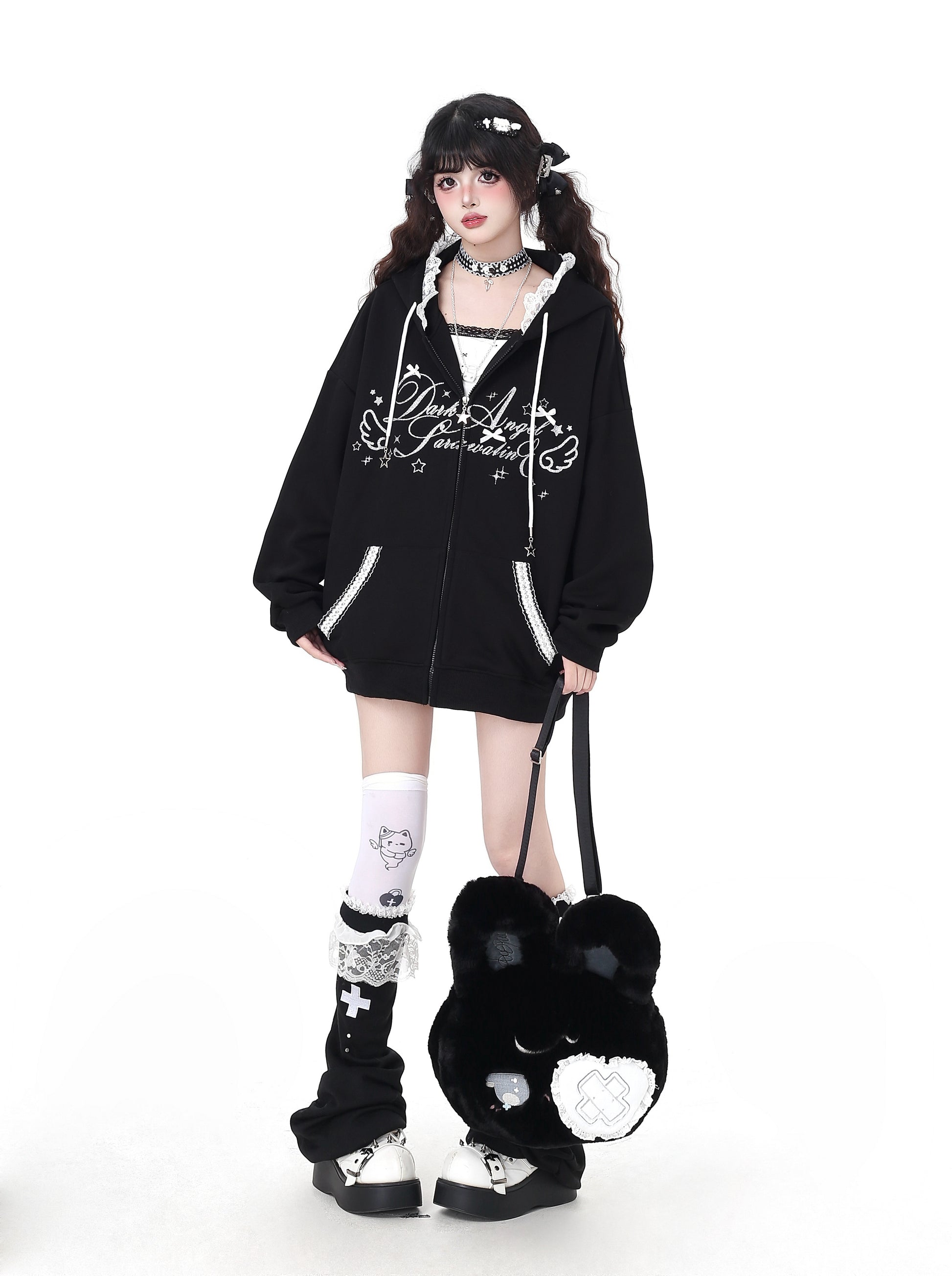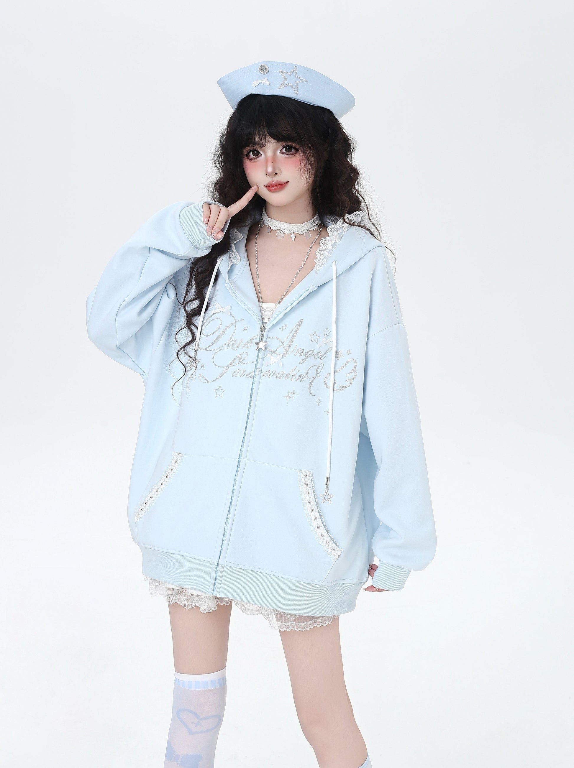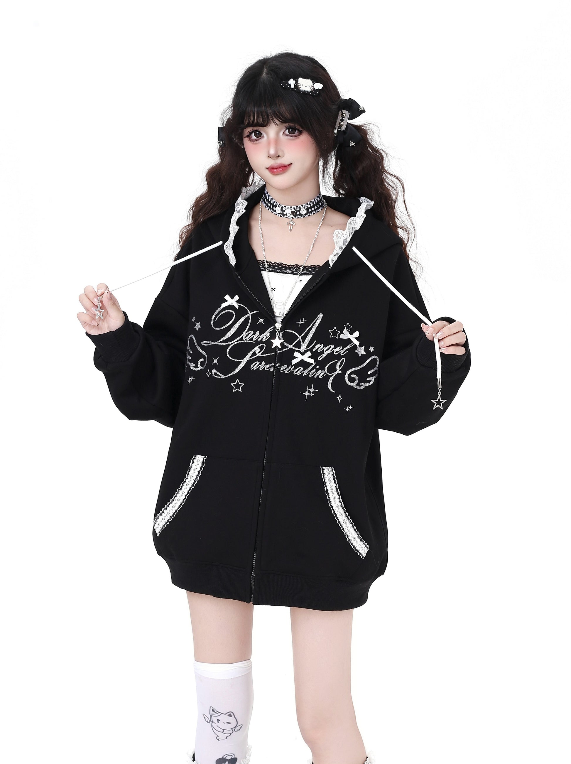 甘く可愛いガーリースタイルにぴったり♡レース付きフードとゆったりシルエットで、秋冬のカジュアルコーデにおすすめ。3色展開でコーデの幅も広がる🖤