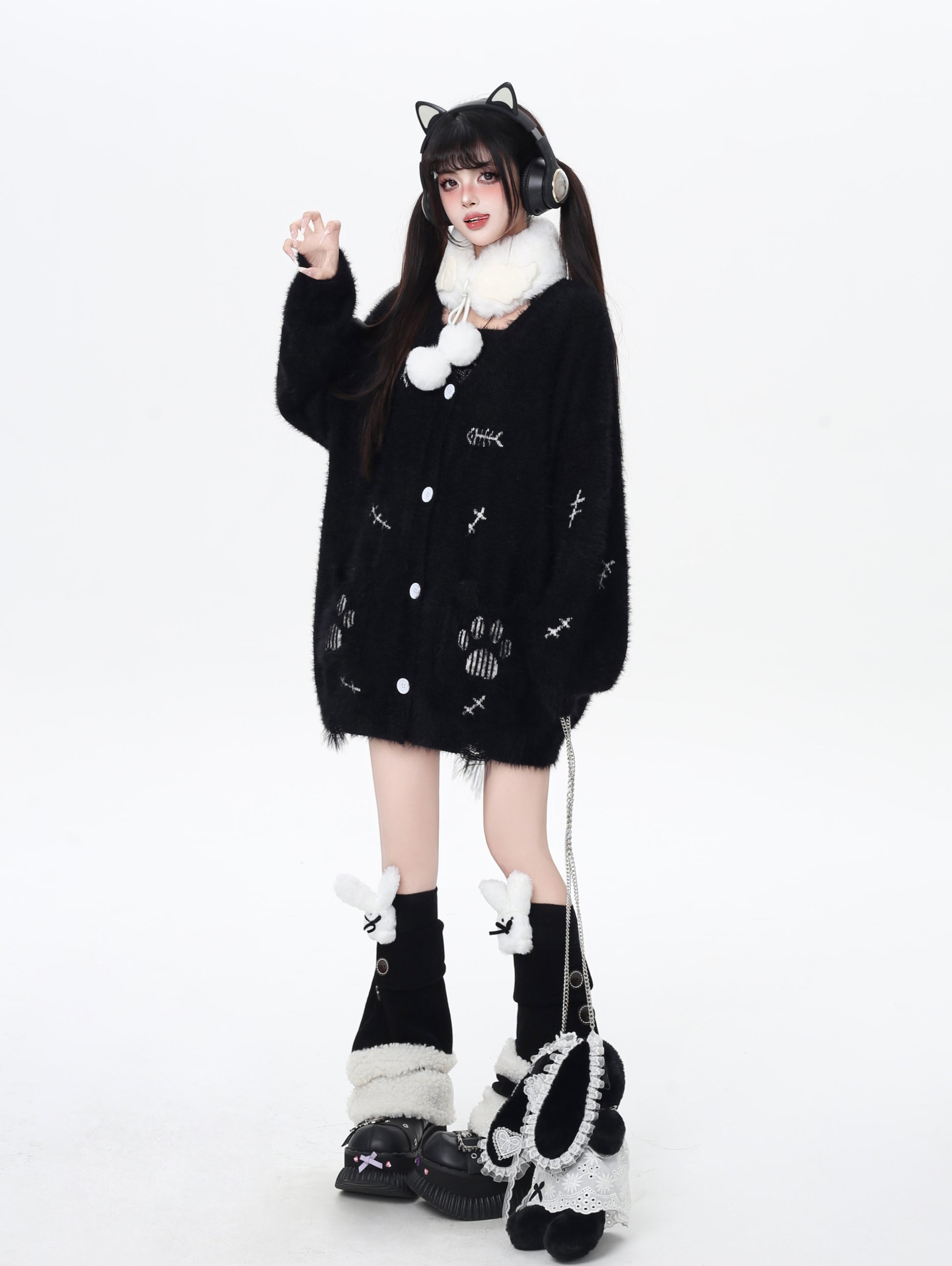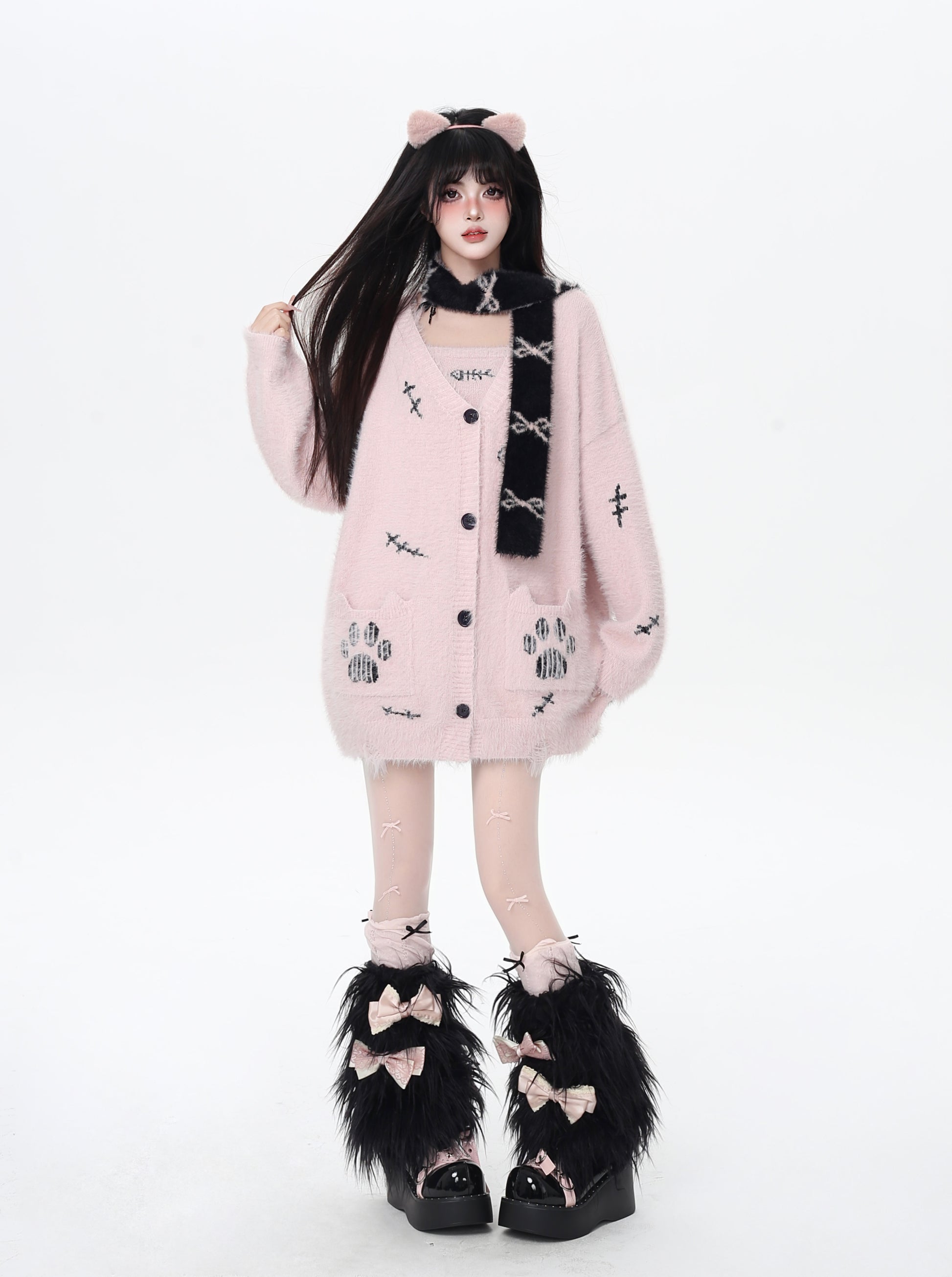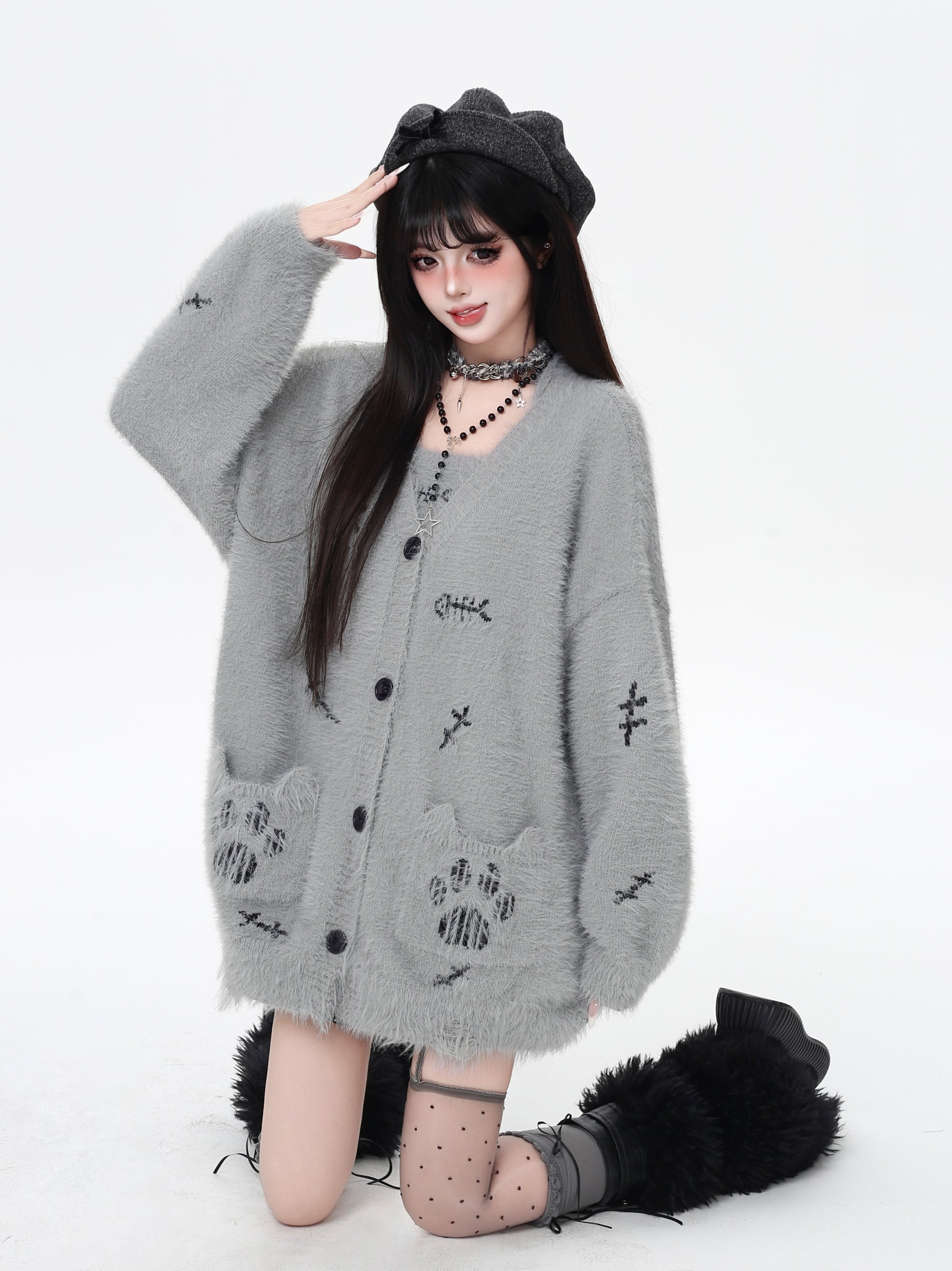 猫の手モチーフ♡ゆる甘ニットカーディガンセット