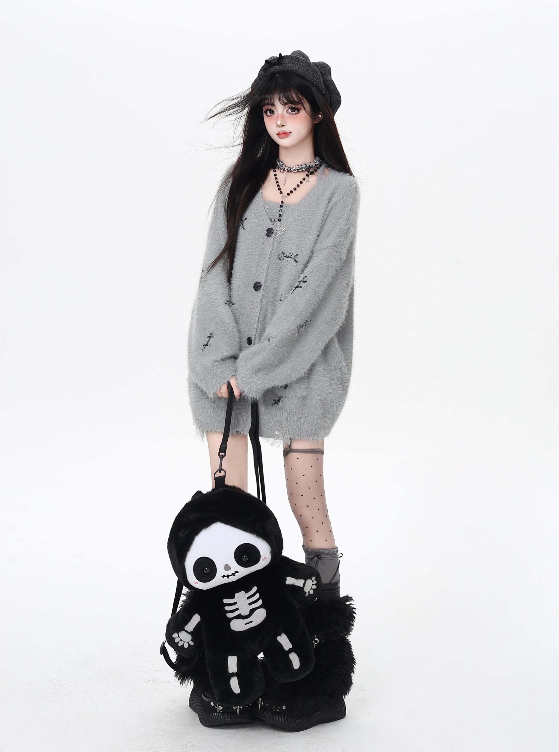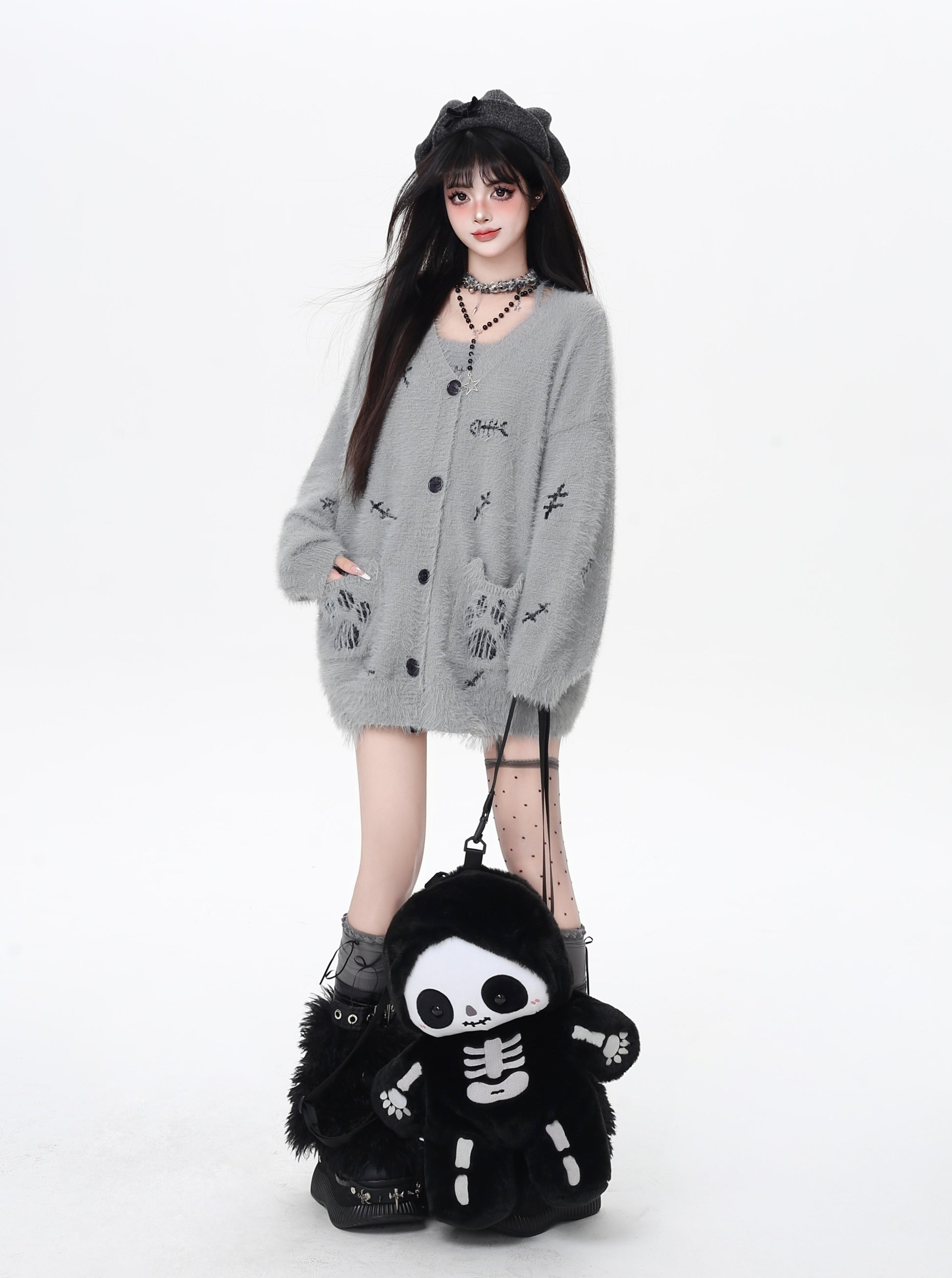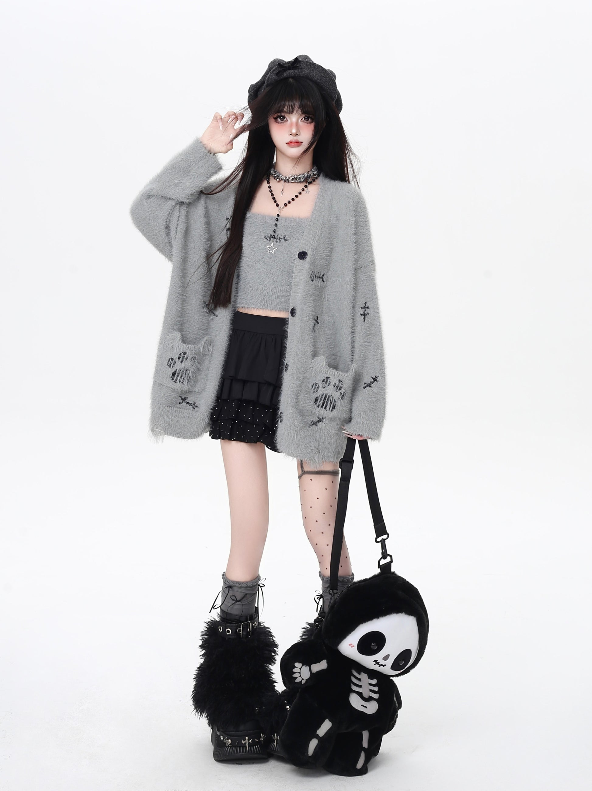 ふんわりゆるっと可愛い♡猫の手モチーフがポイントの秋冬向けニットカーディガンセット。デイリーにもお出かけにもぴったりの甘めスタイル♪
