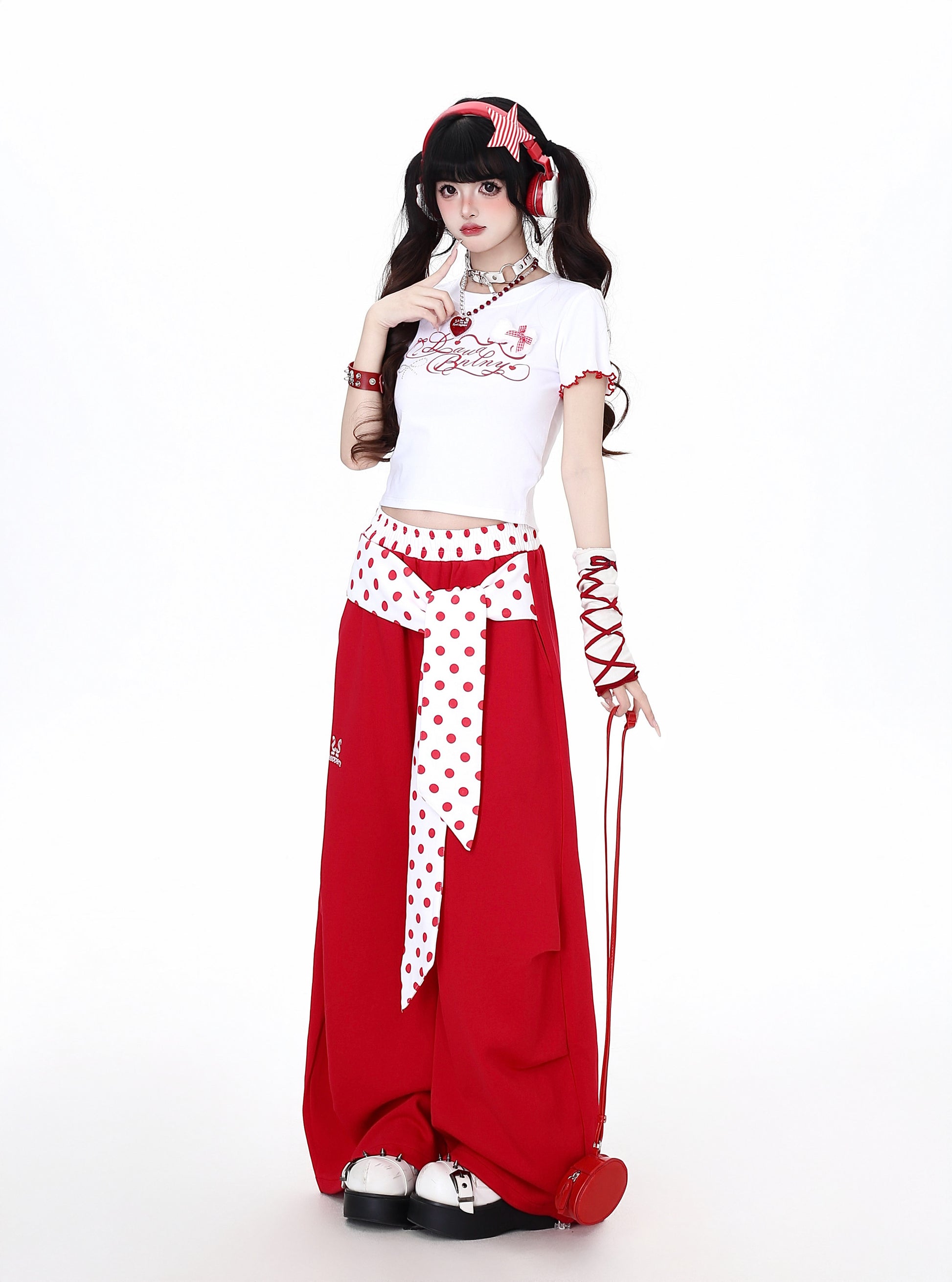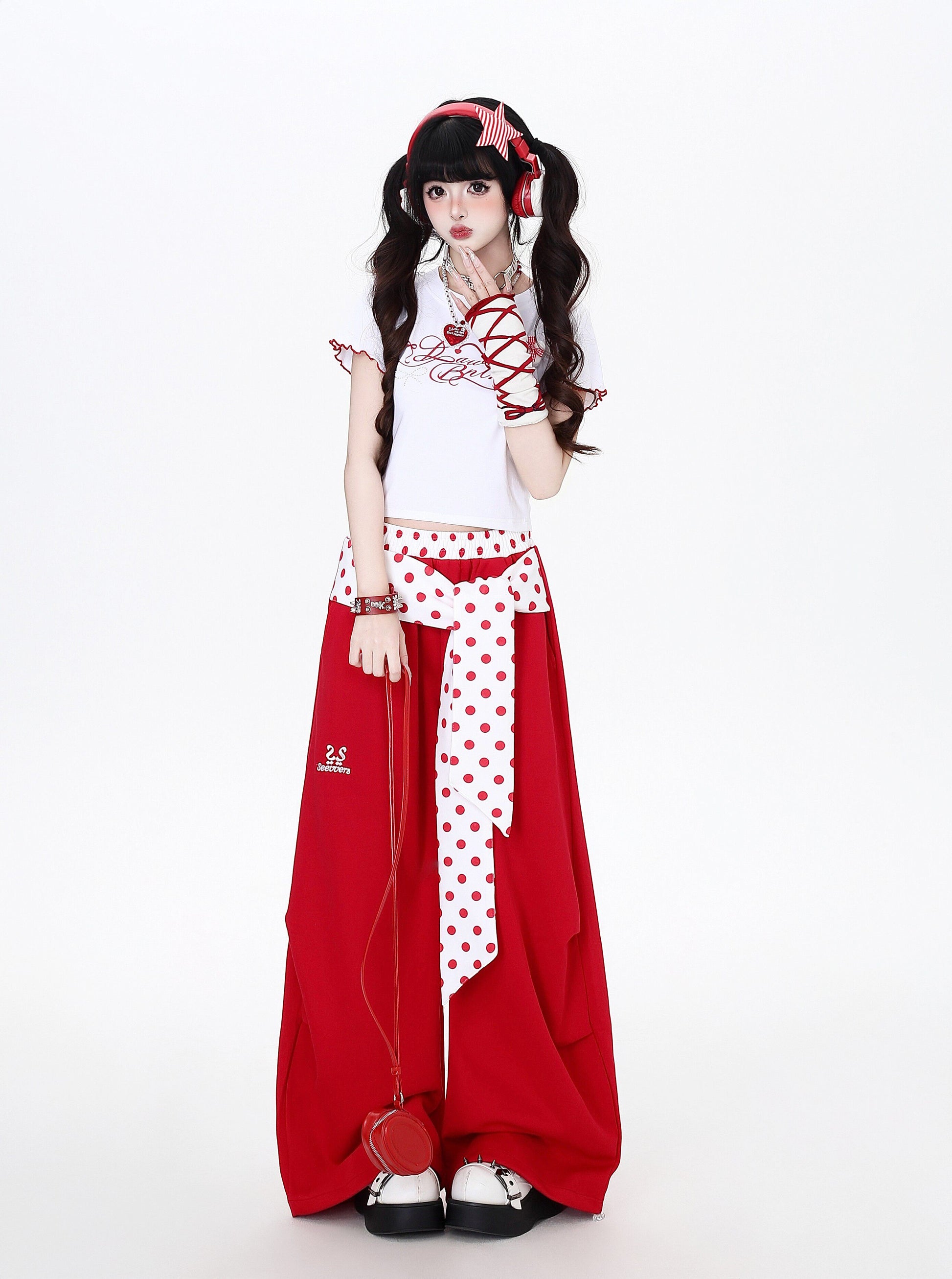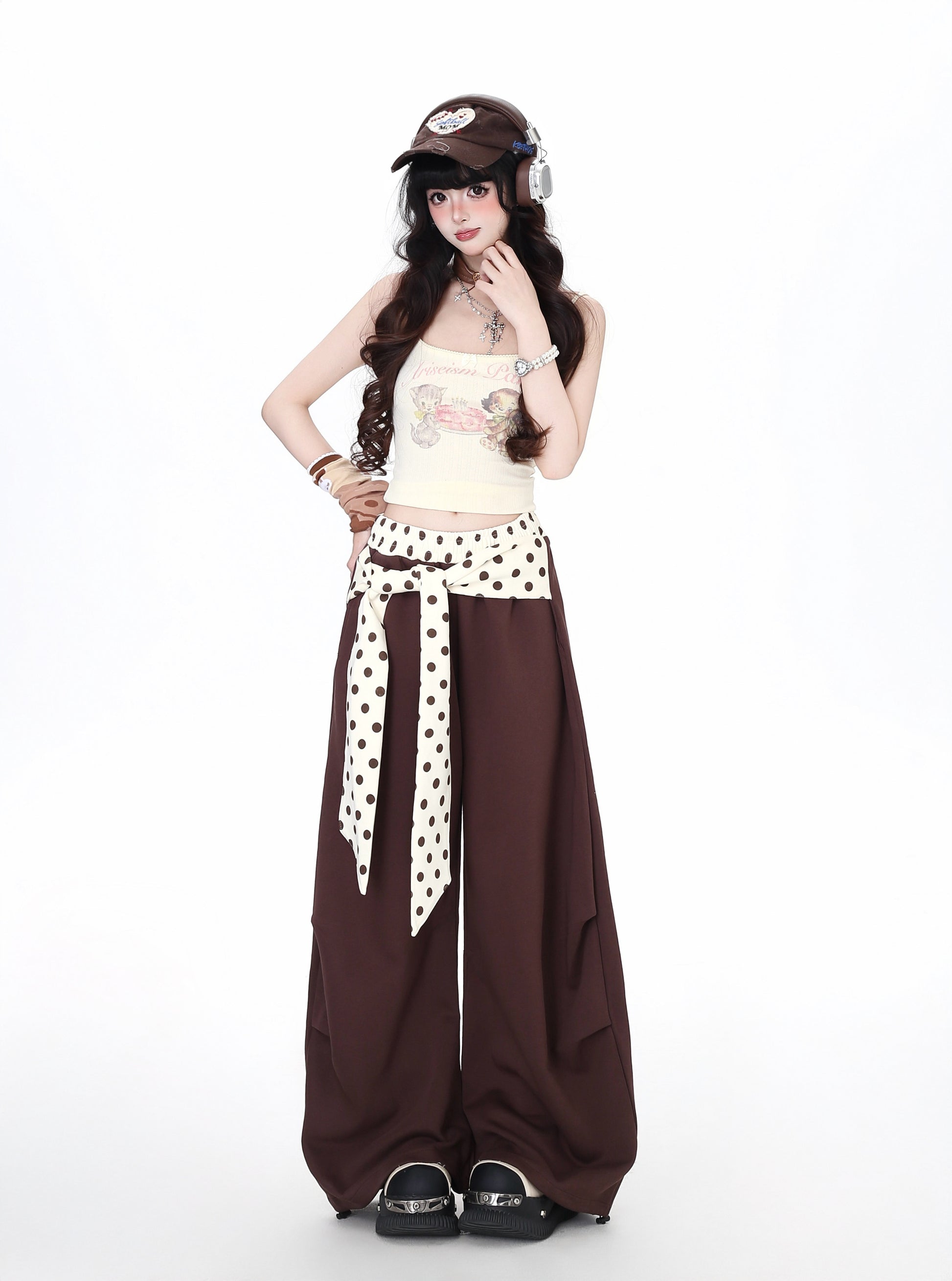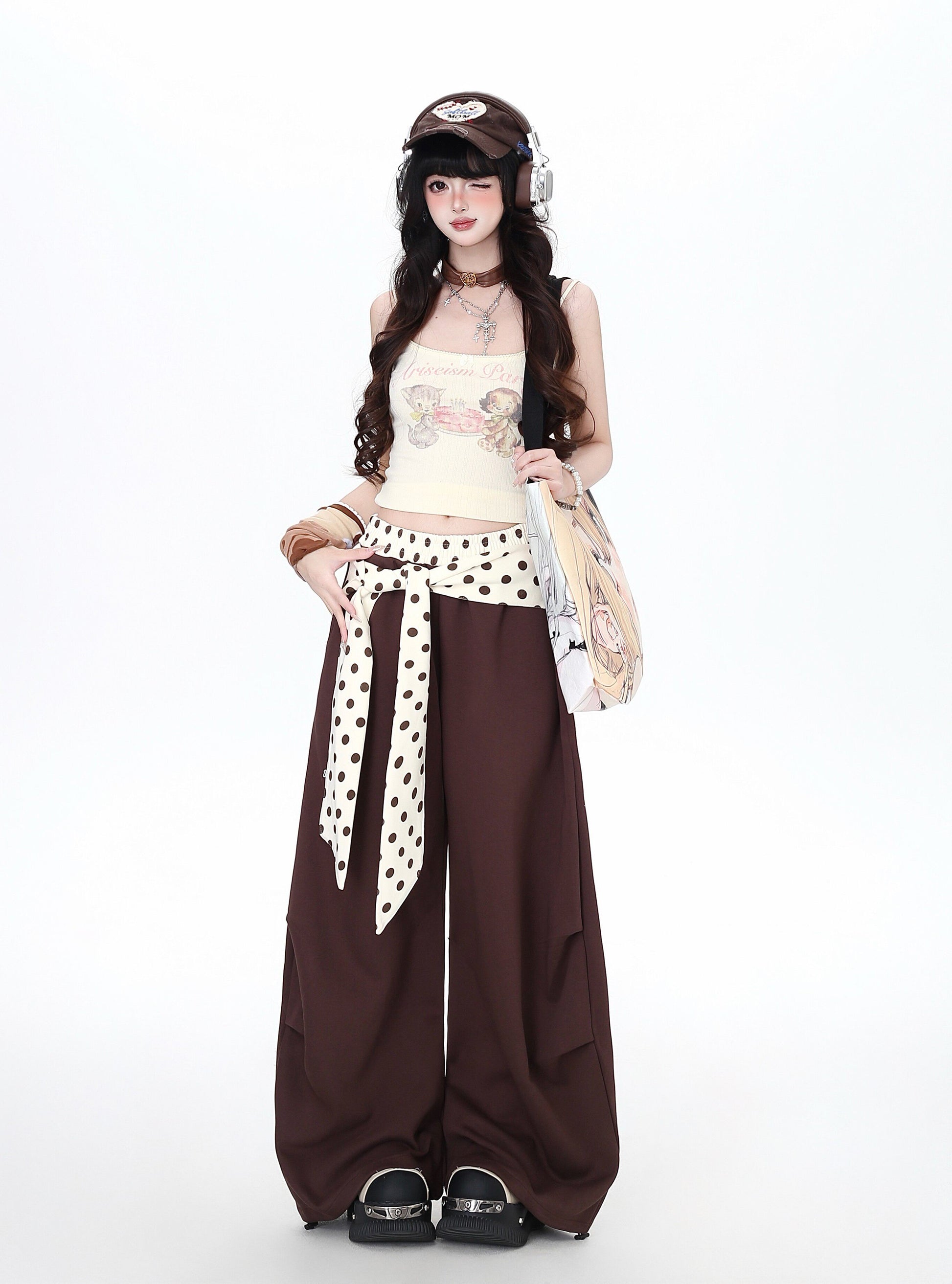ゆるカワ水玉ワイドパンツ