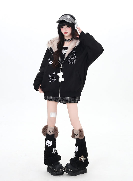 ゆる地雷ふわもこ猫耳スエード中綿アウター
