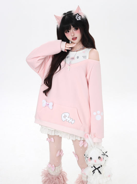 レイヤード風ねこ肩あきスウェット+ボーン付き