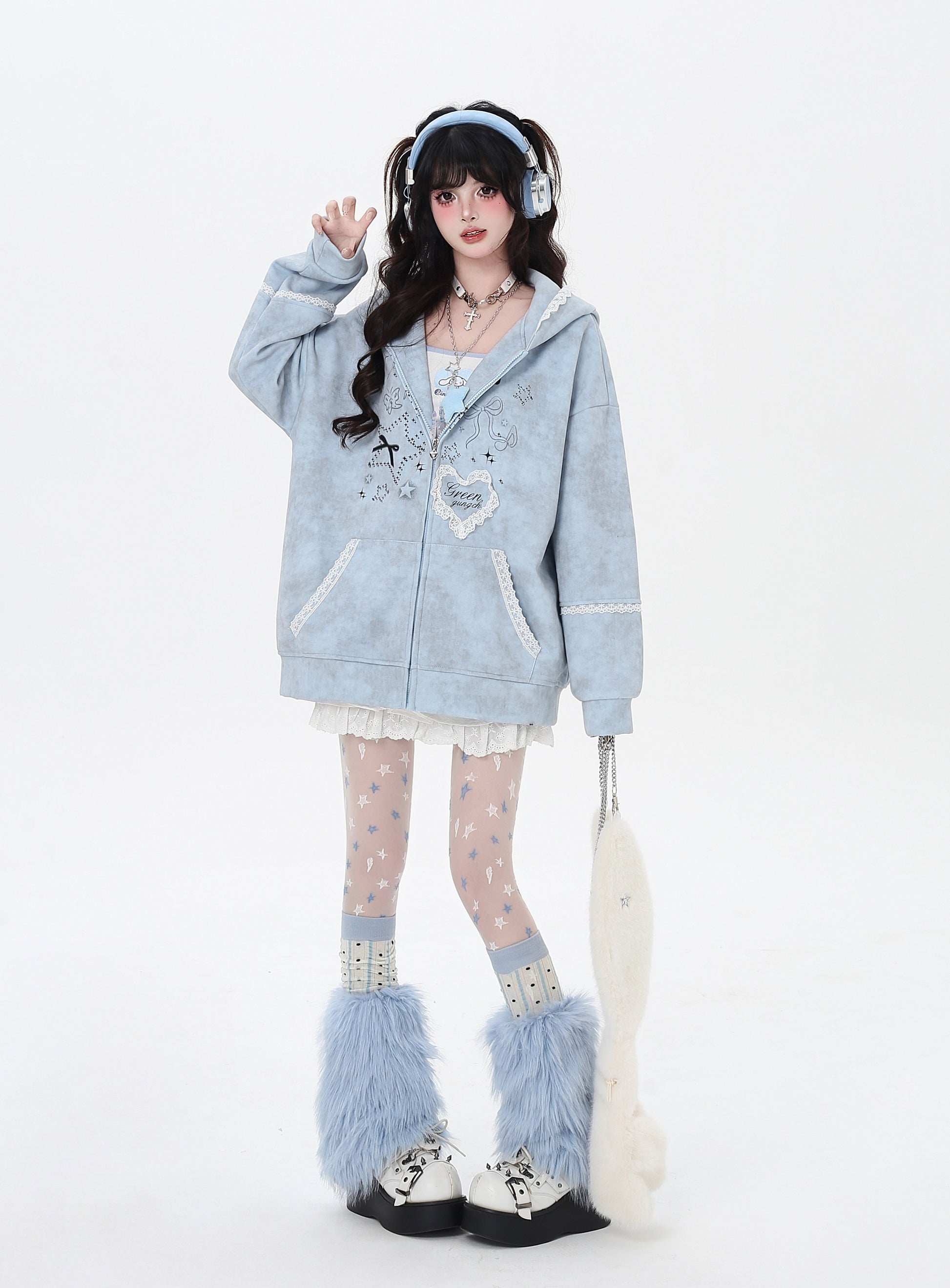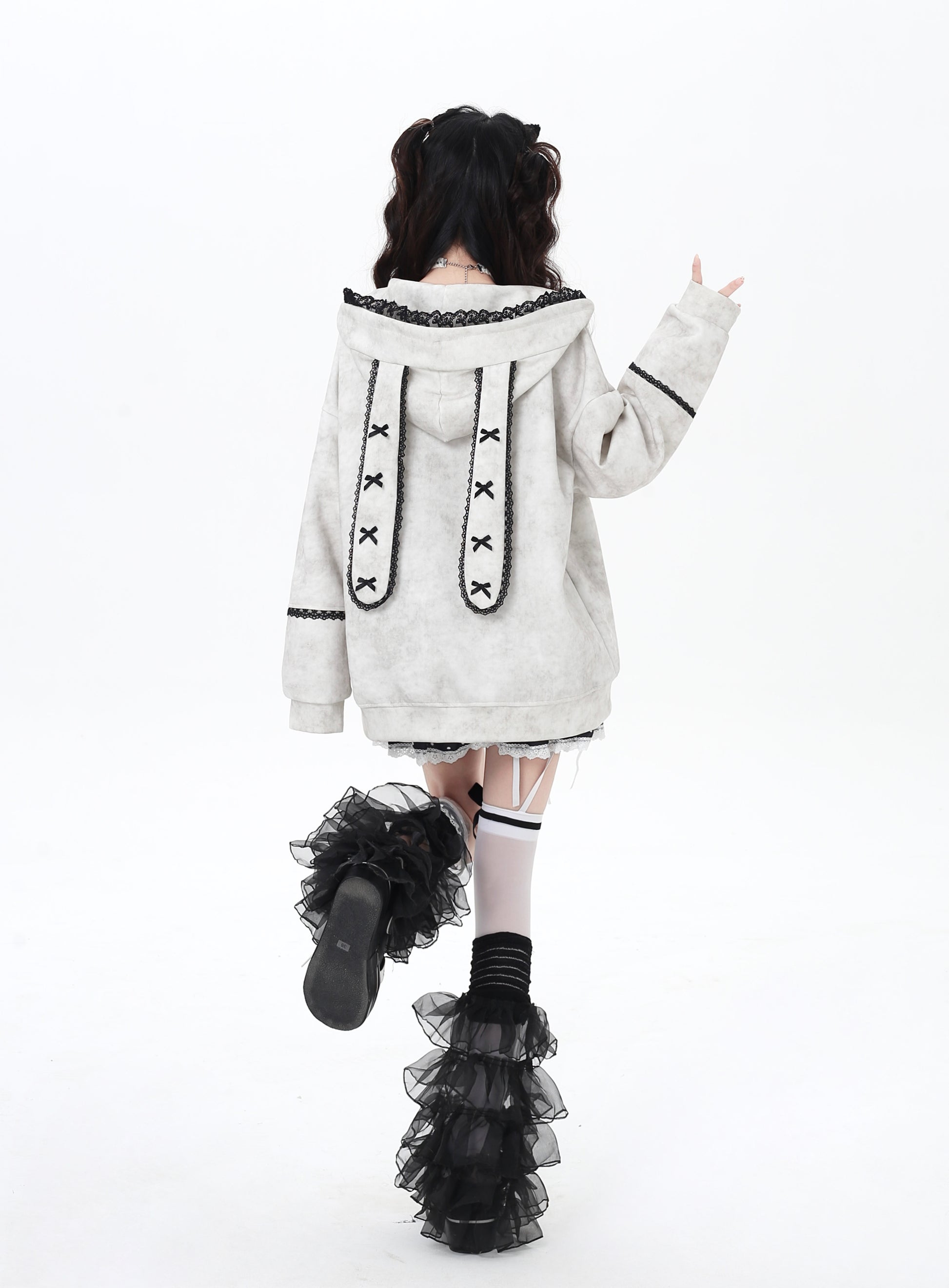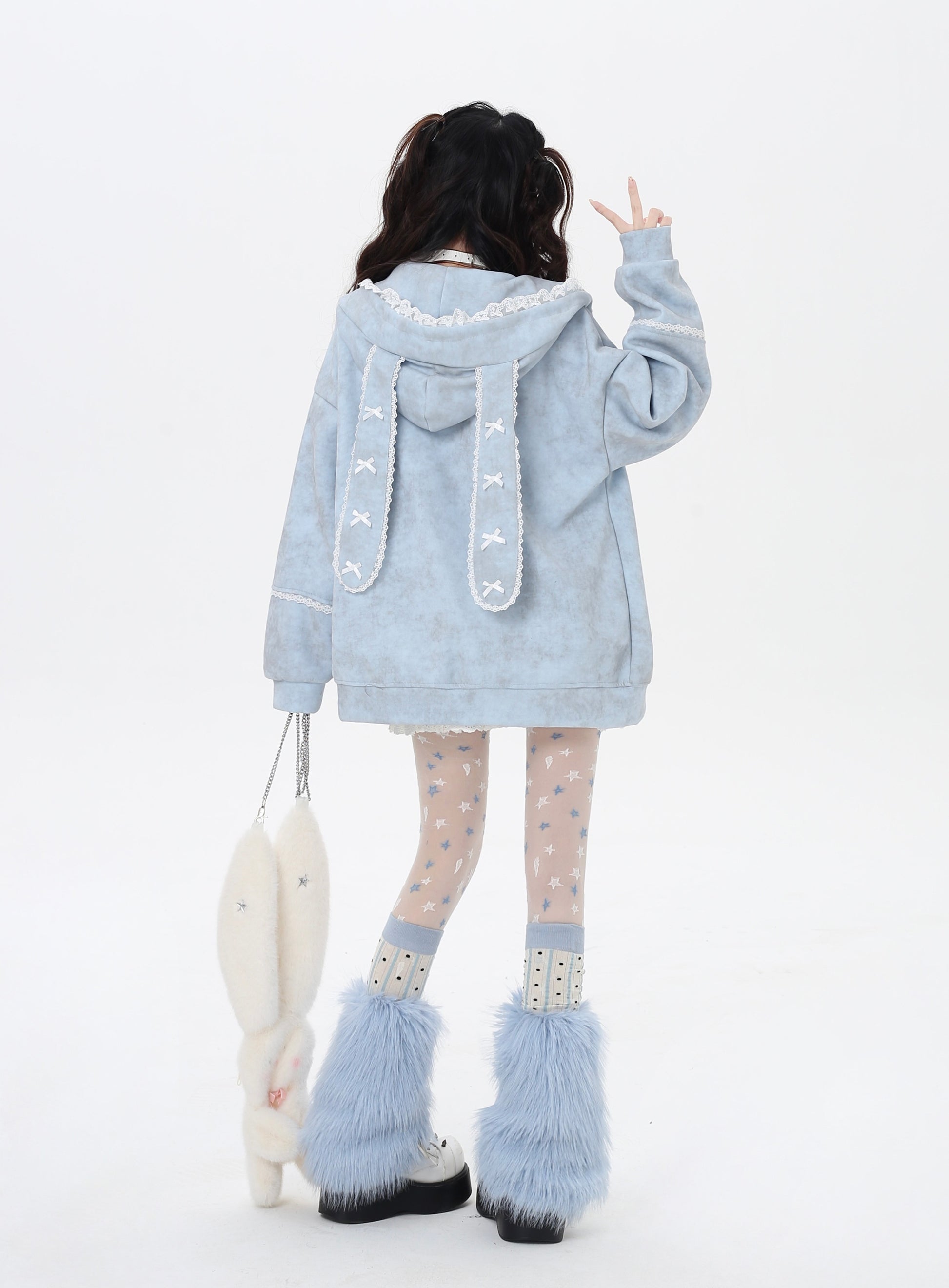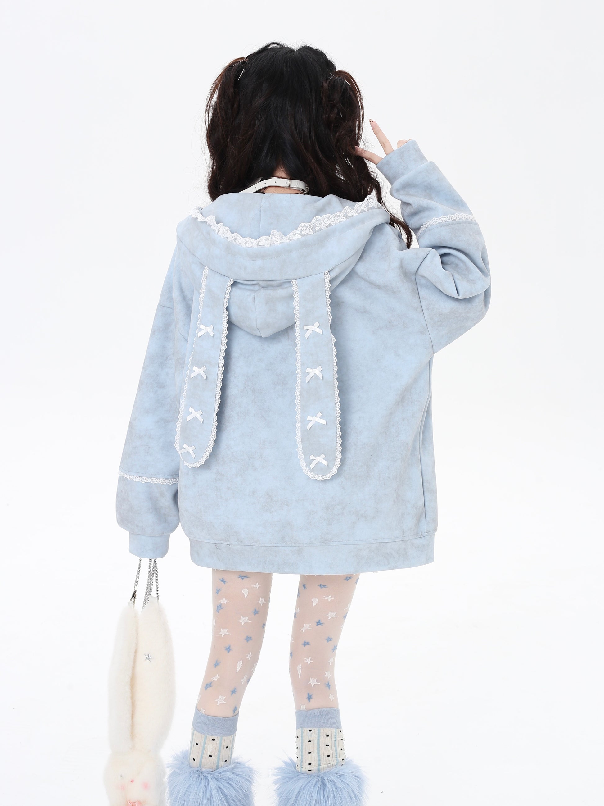 レースうさ耳パーカー 甘かわ地雷ゆるトップス