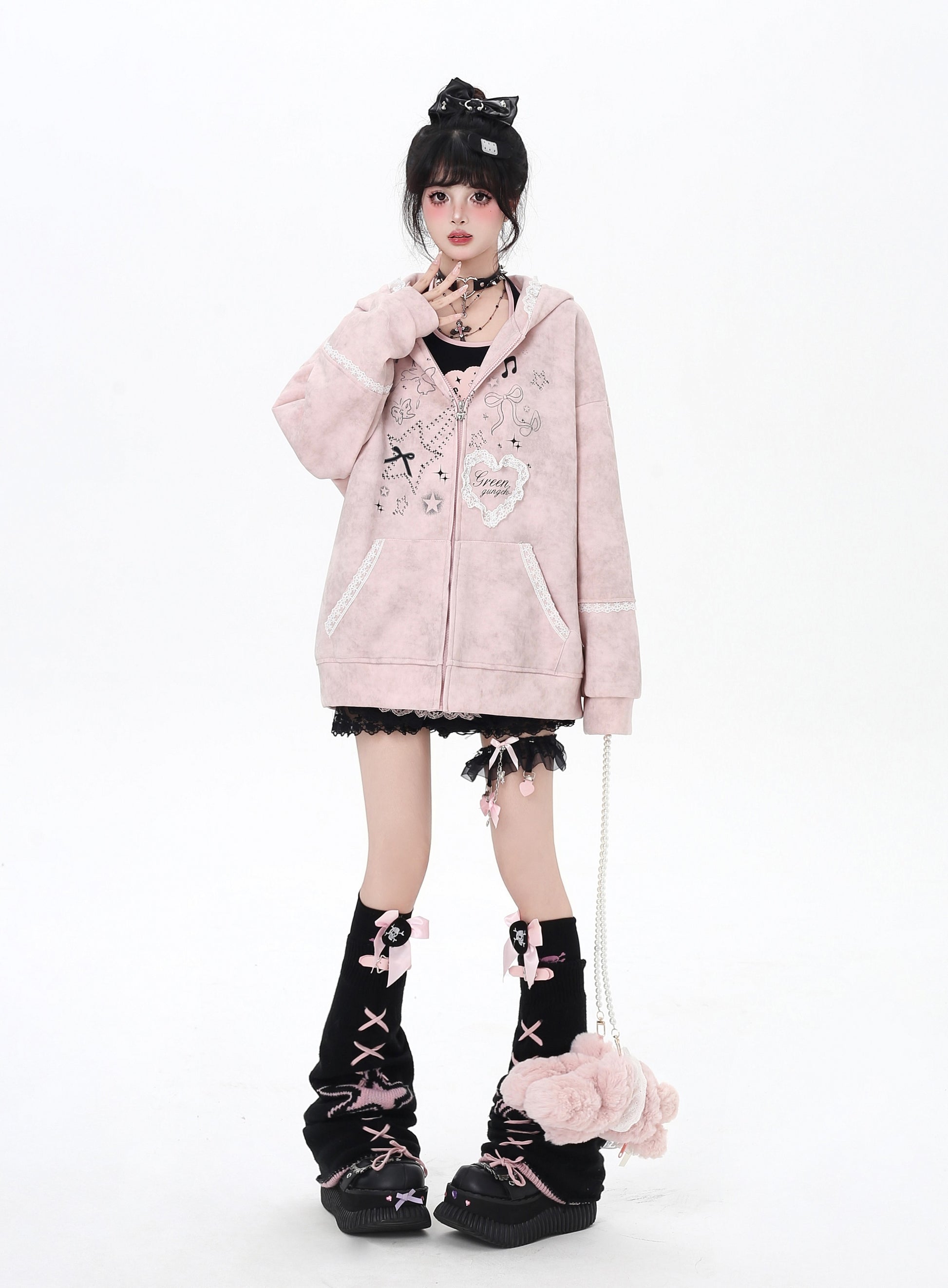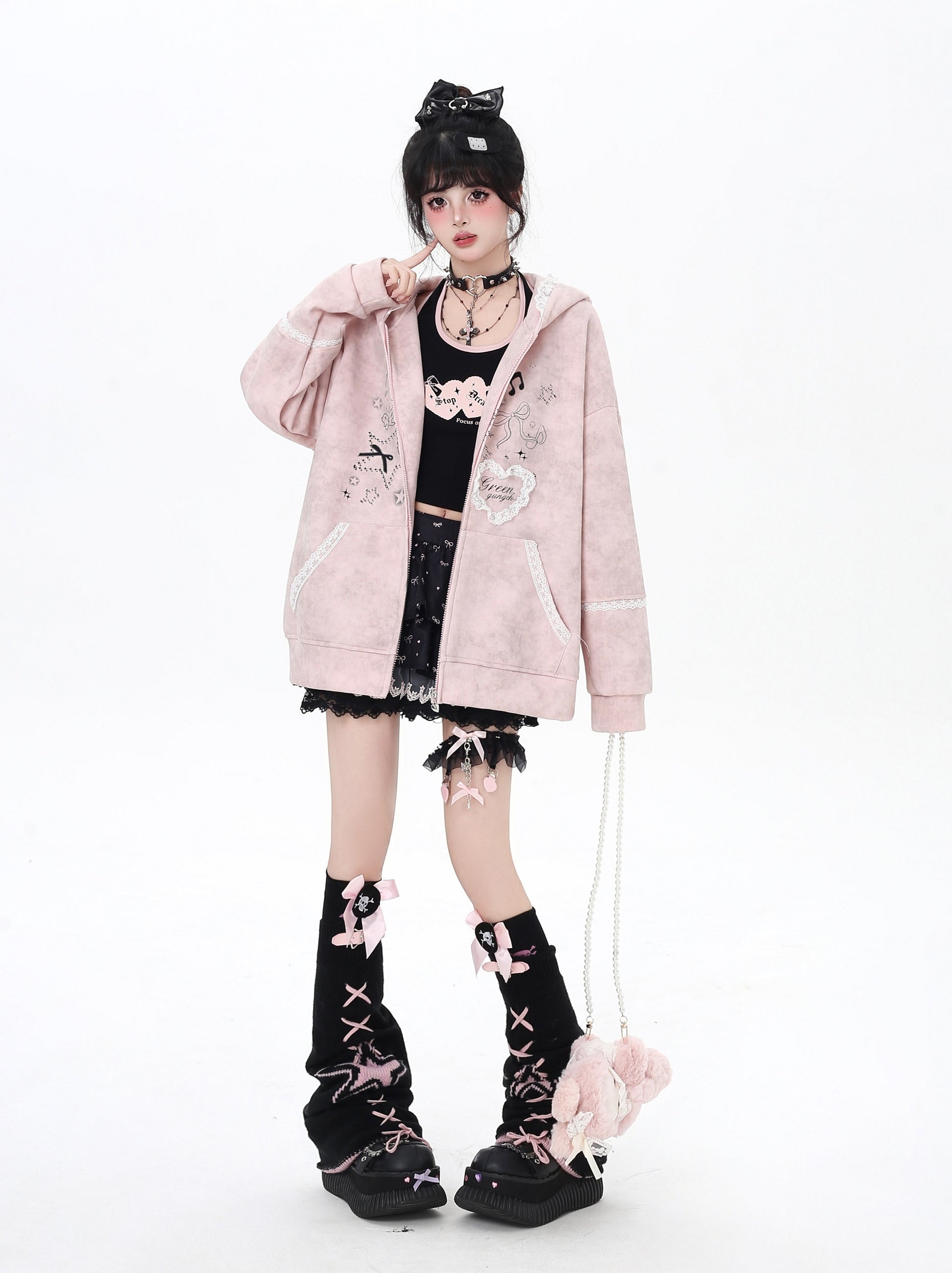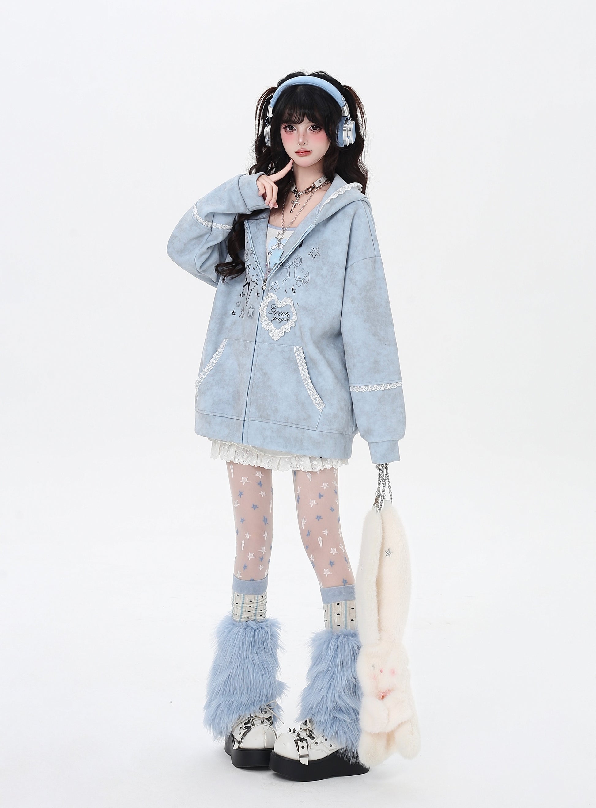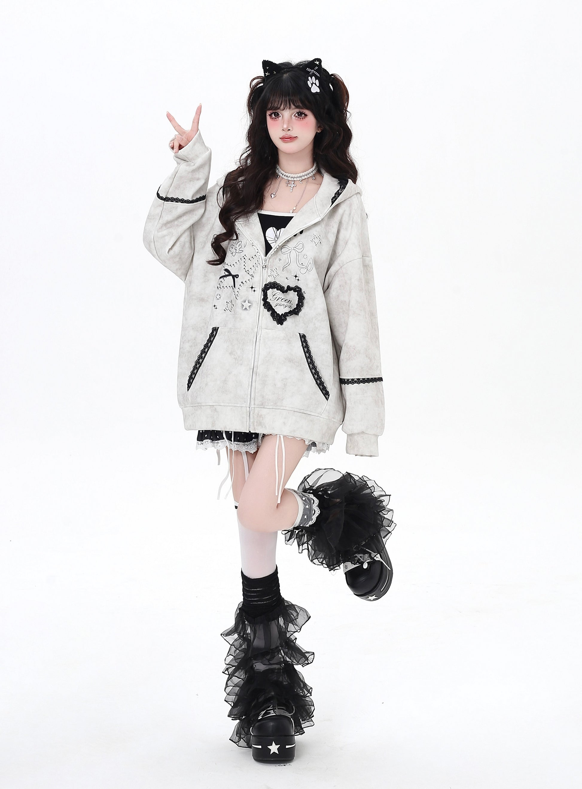 レースうさ耳パーカー 甘かわ地雷ゆるトップス