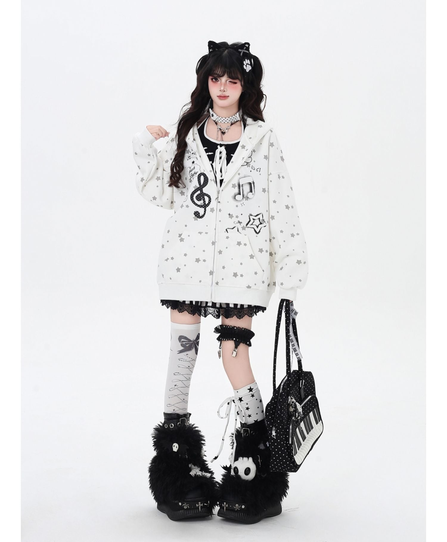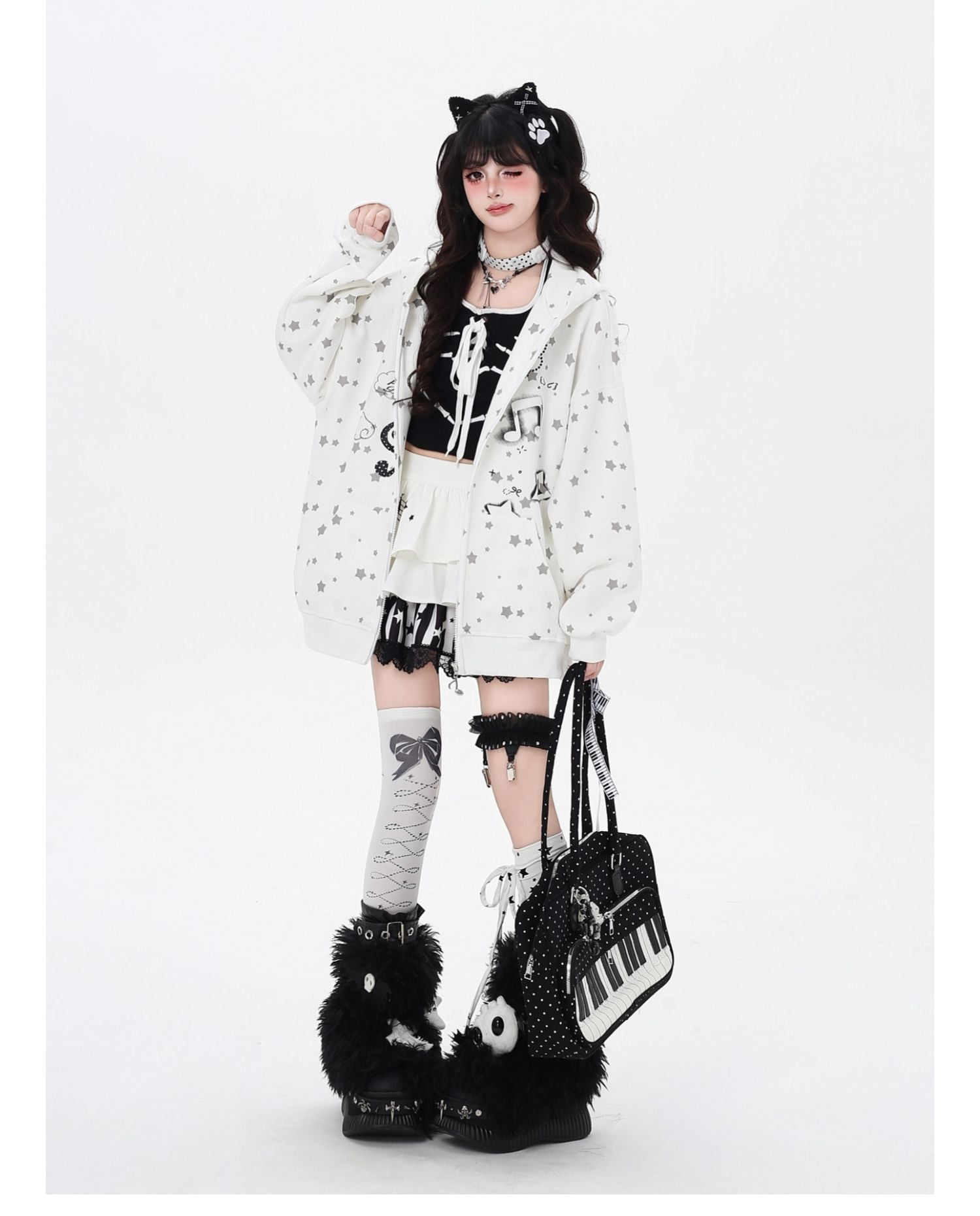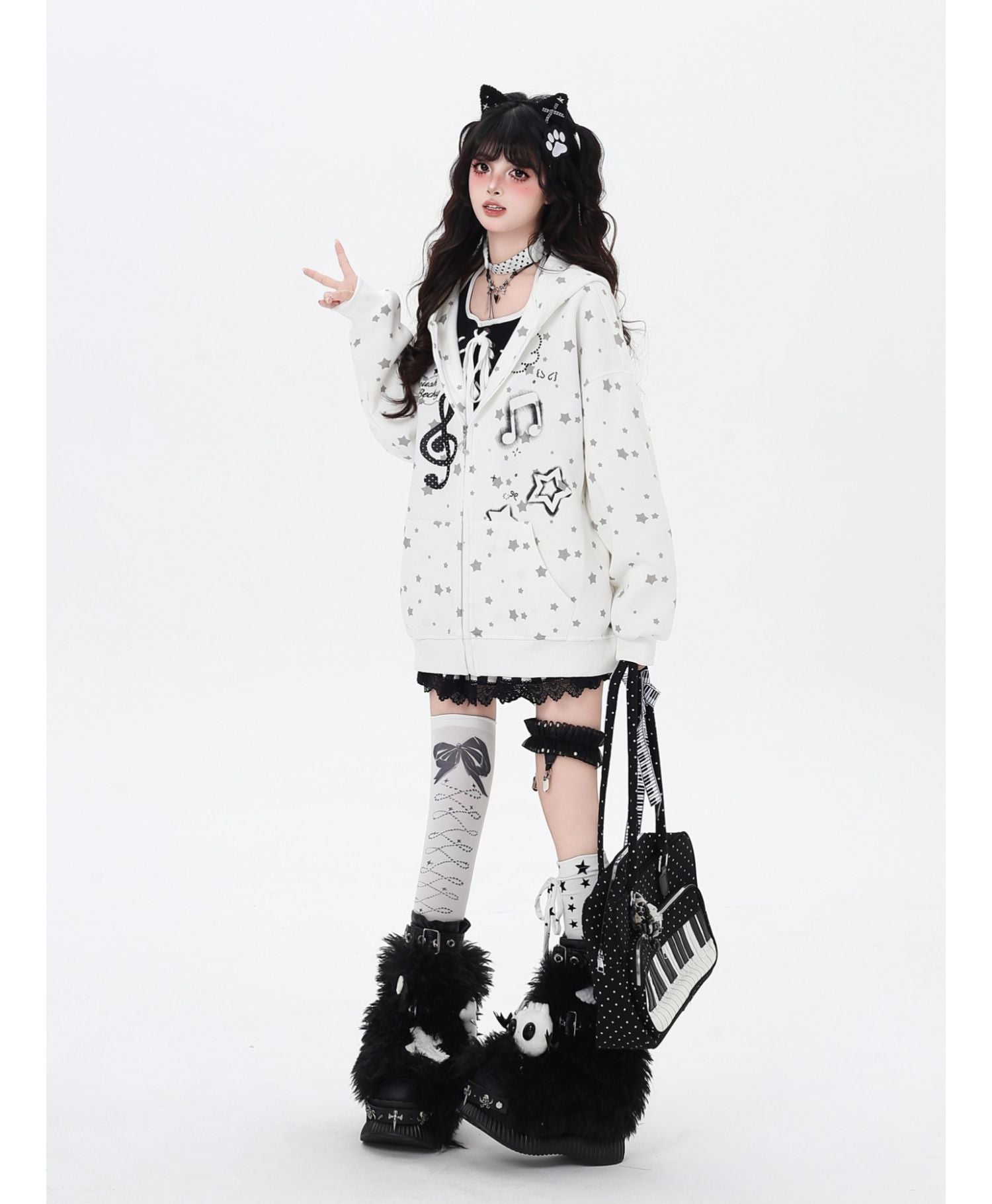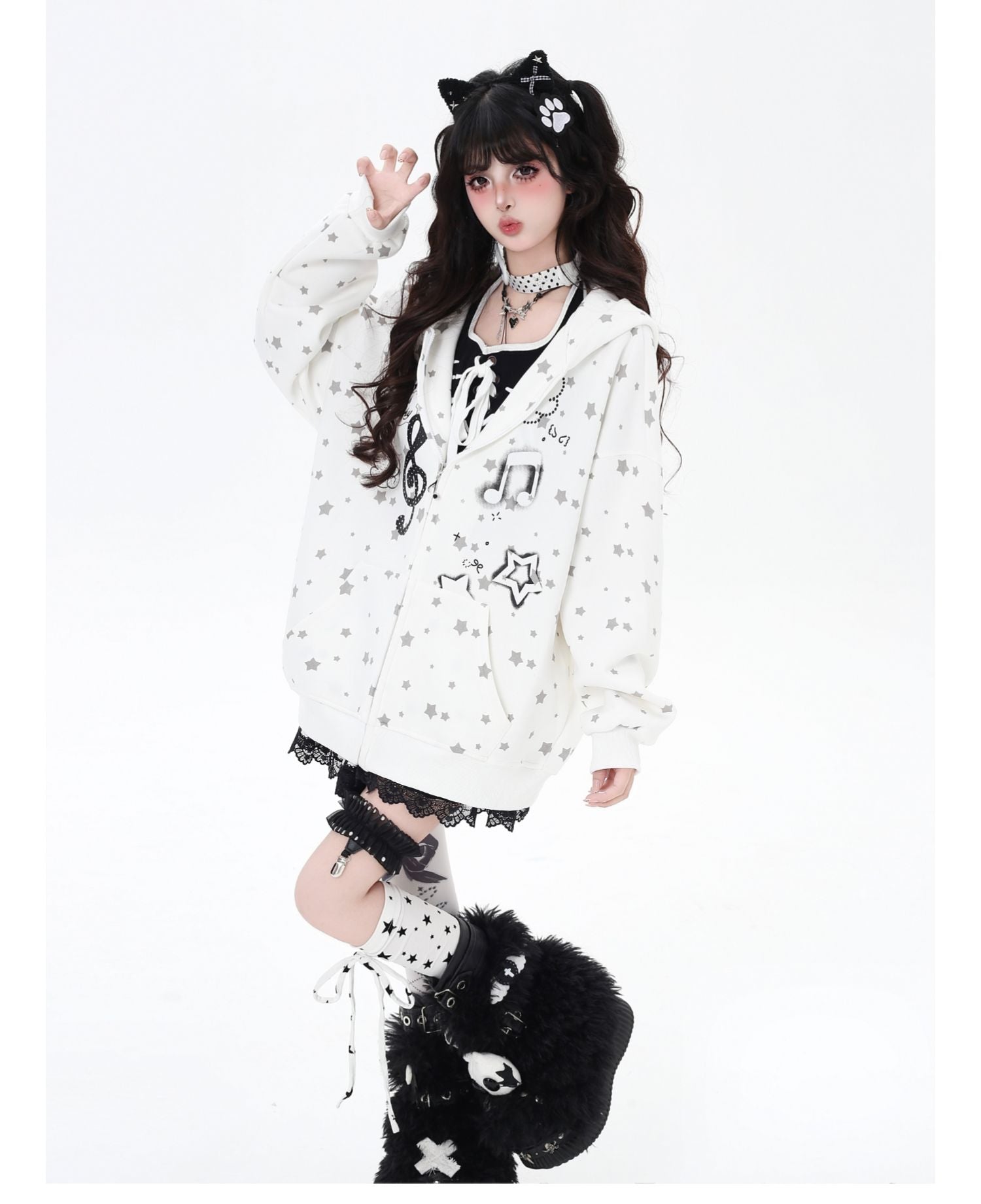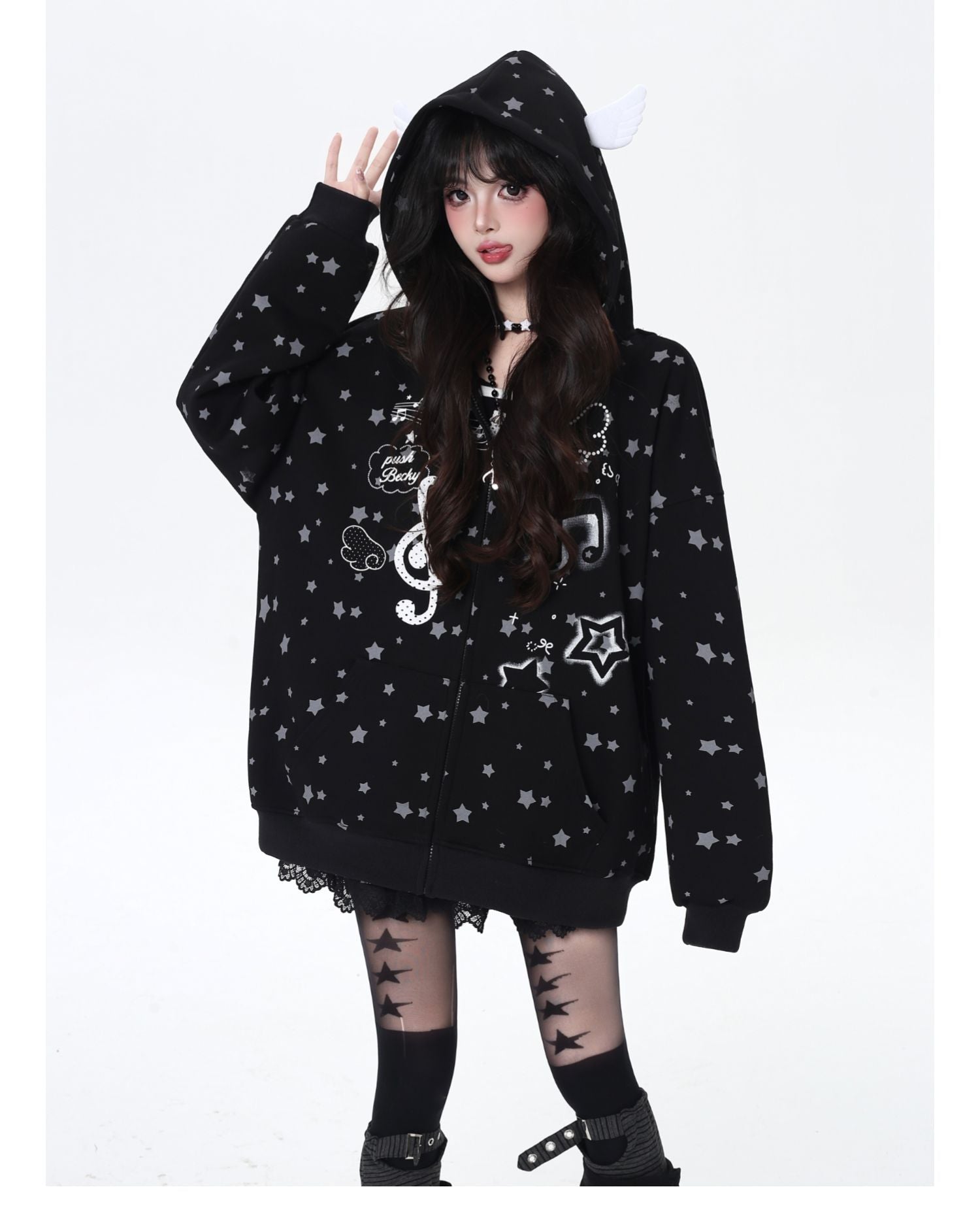 ゆったりフードつきパーカー、スパイダーウェブと蝶のデザイン