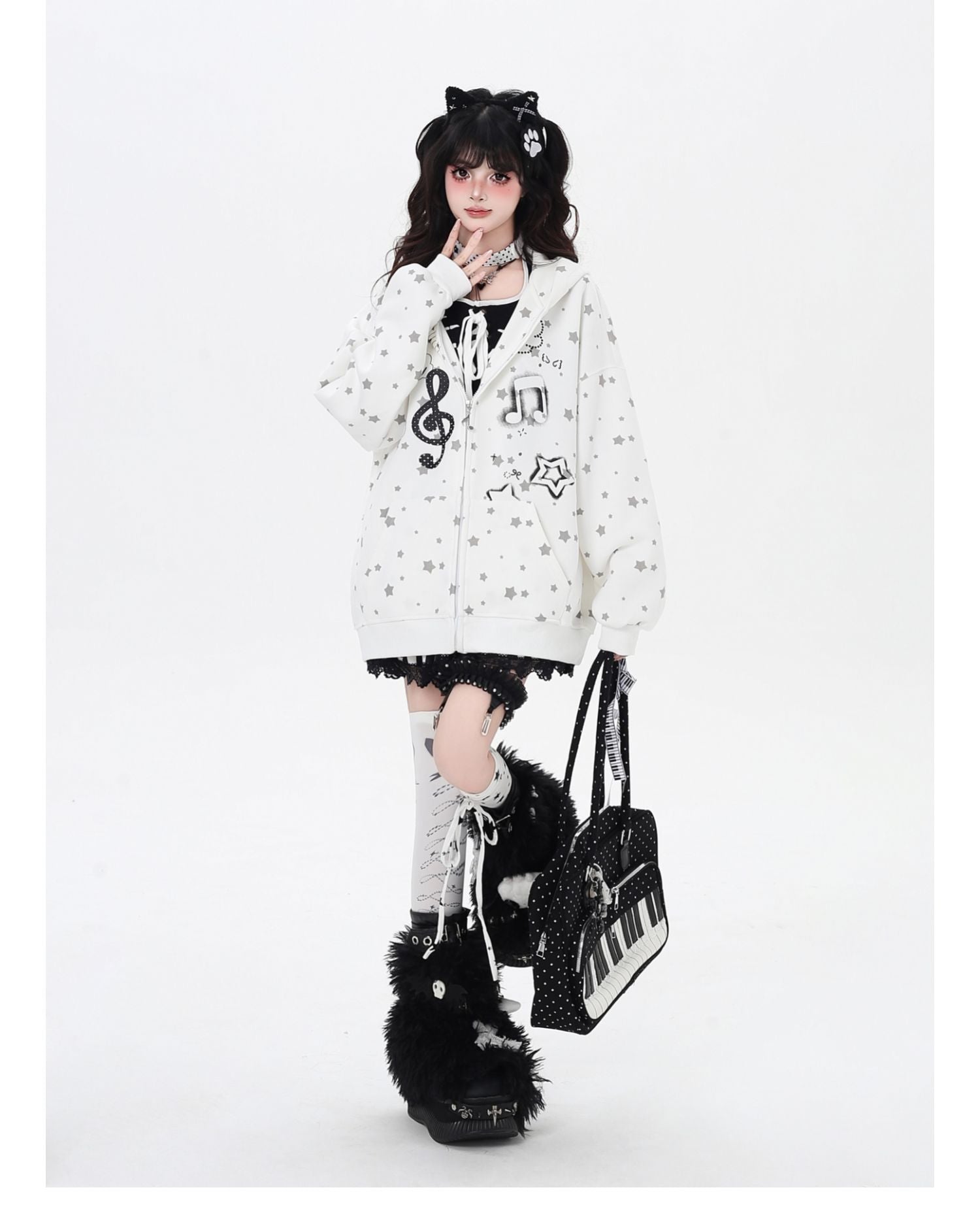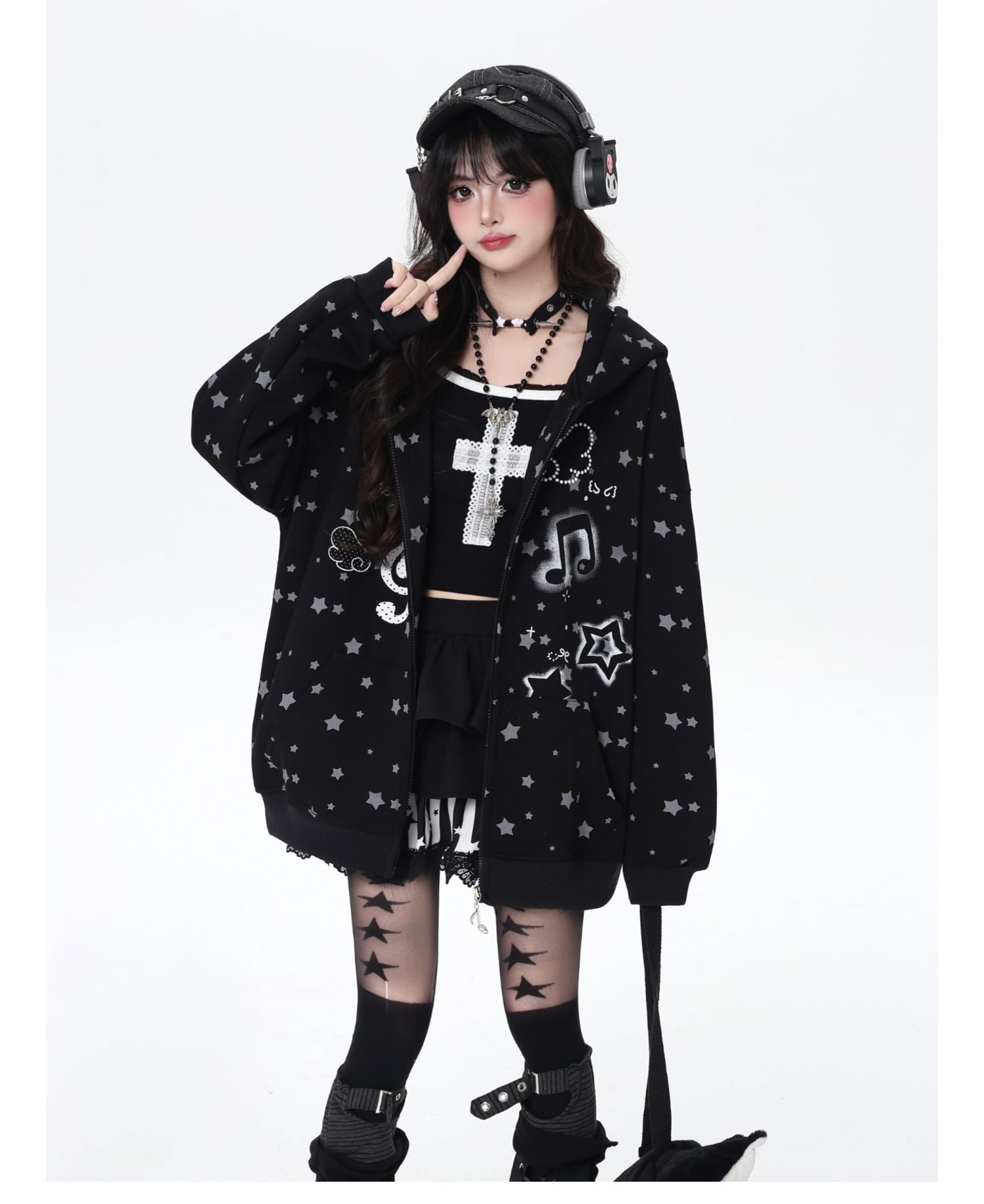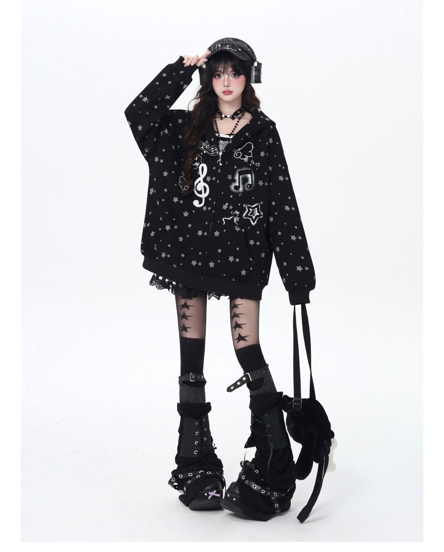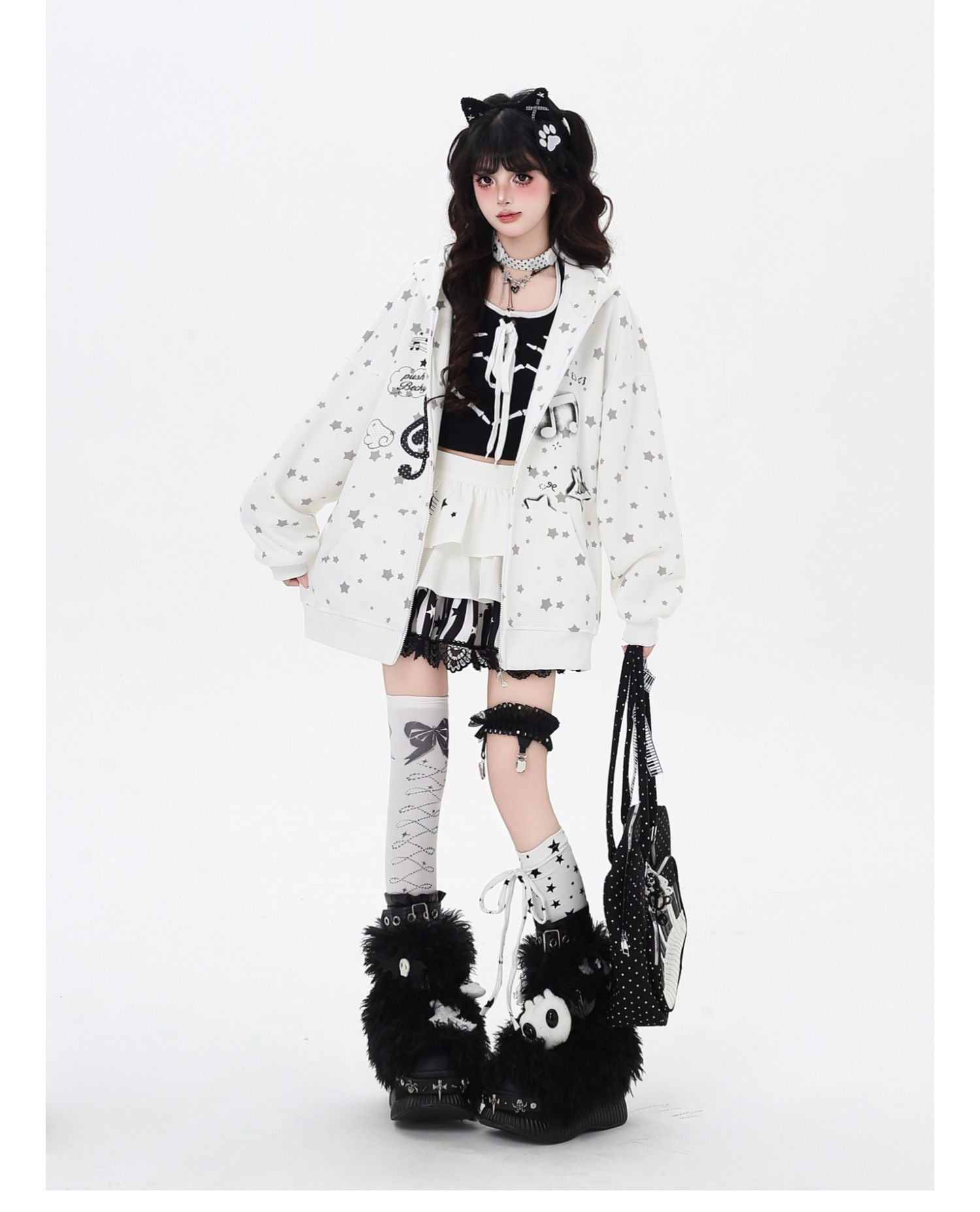 ゆったりフードつきパーカー、スパイダーウェブと蝶のデザイン