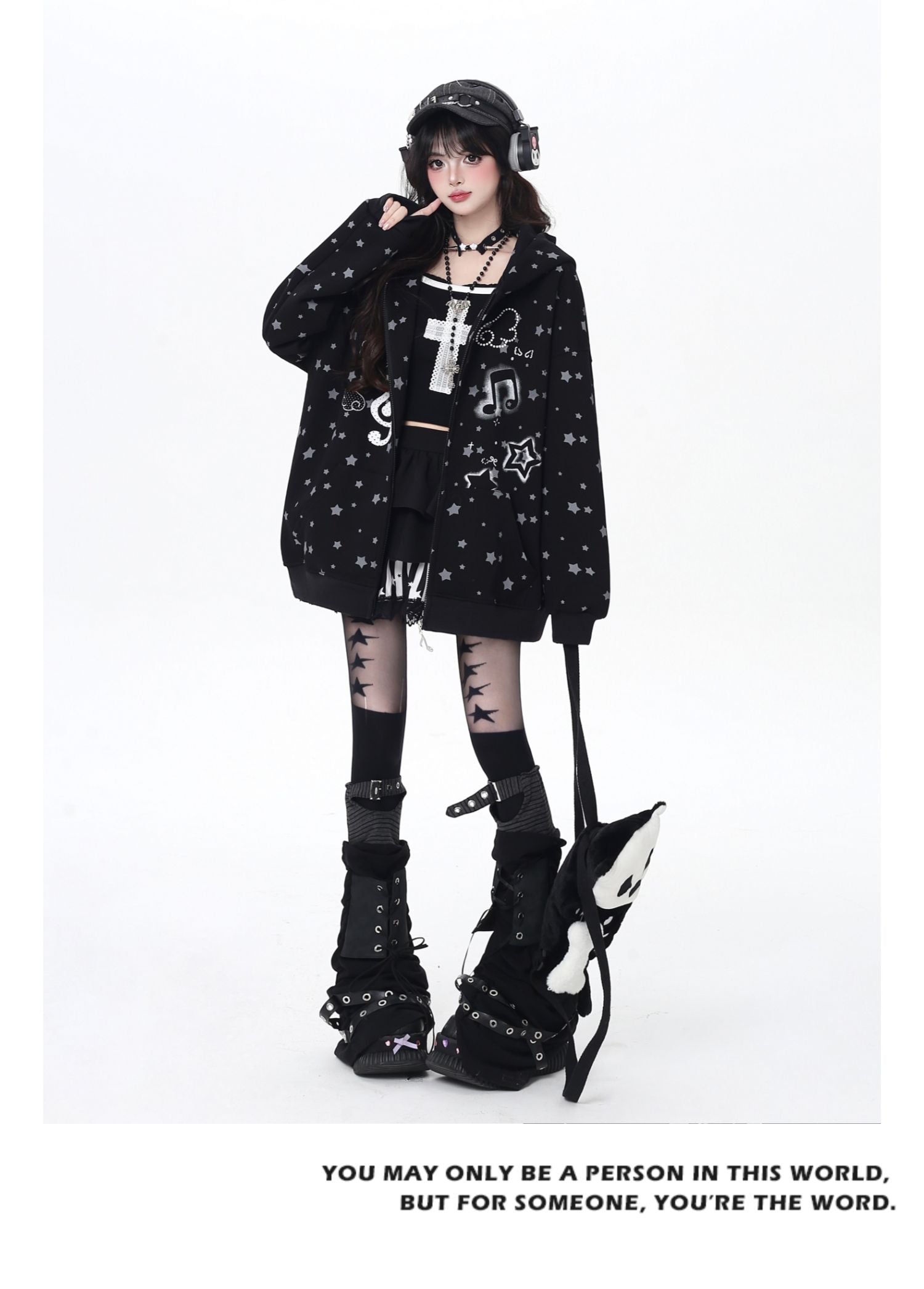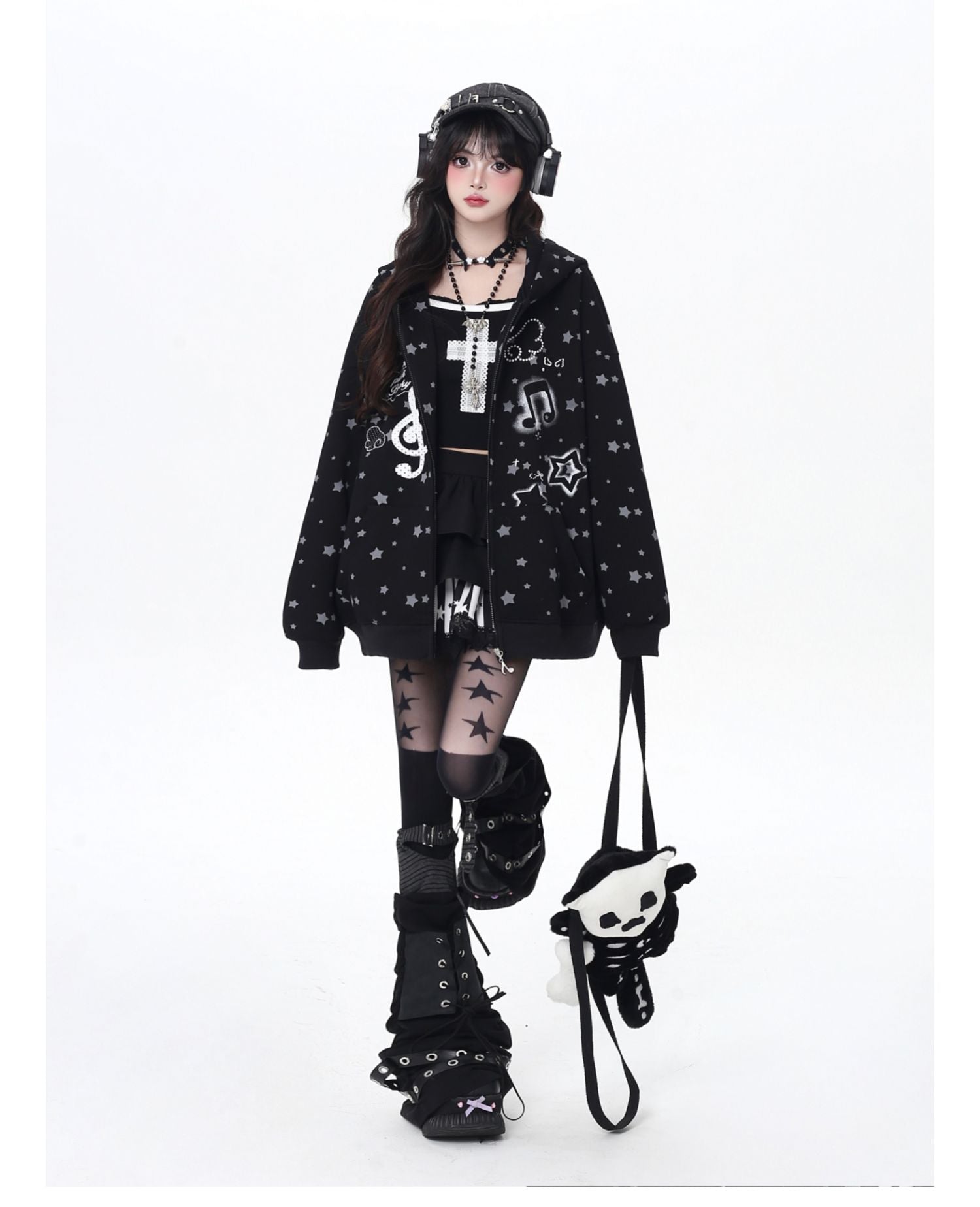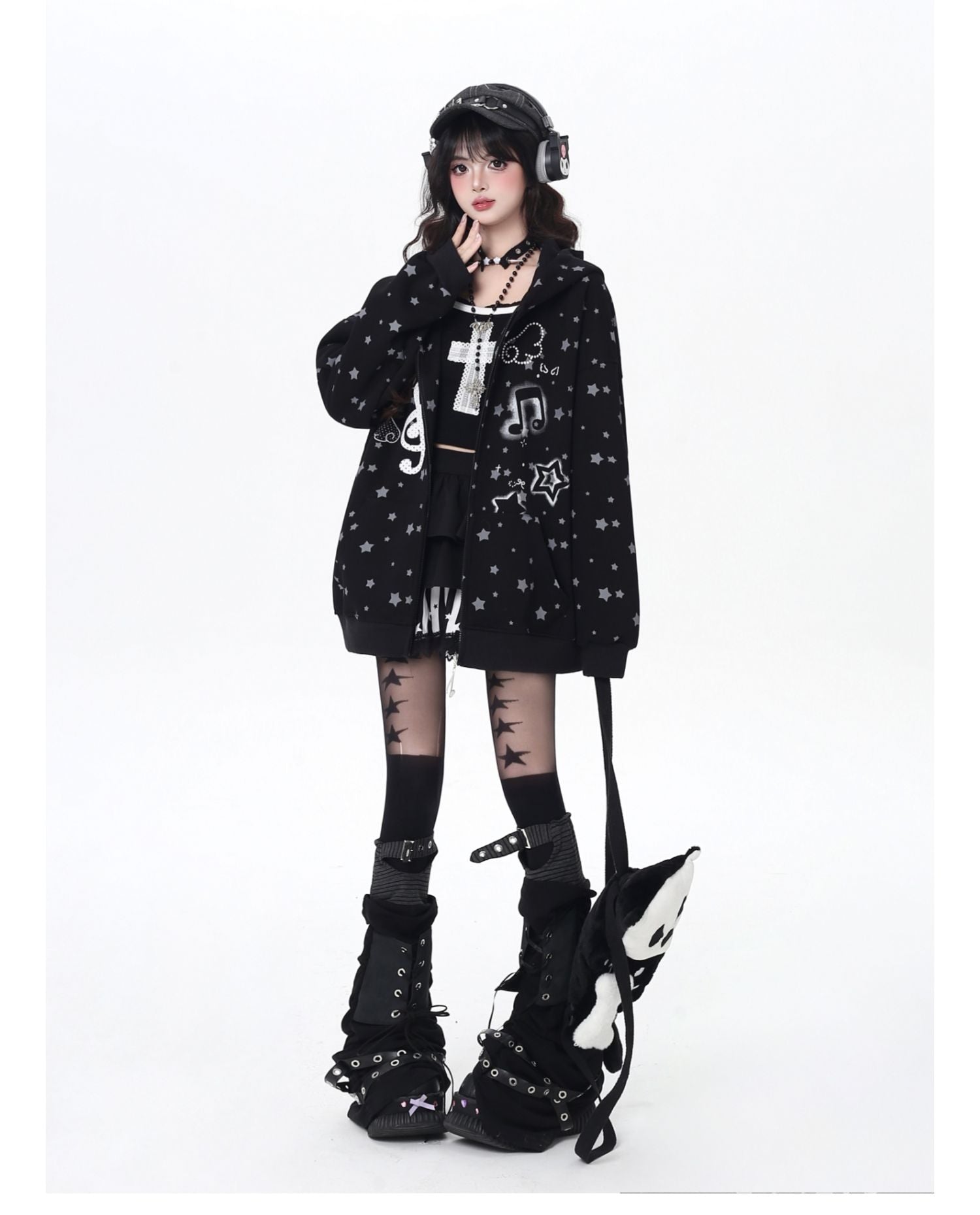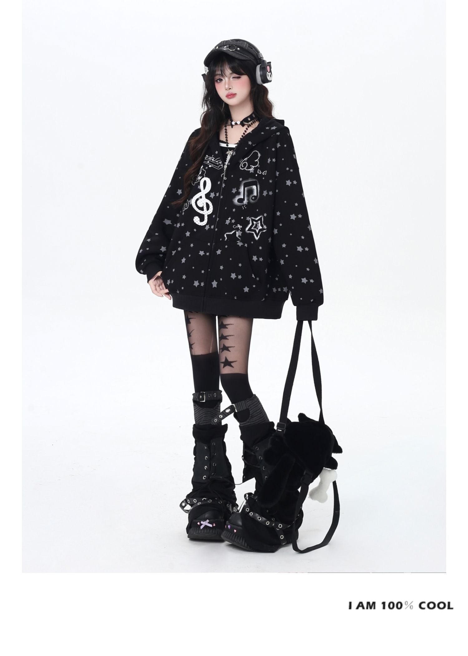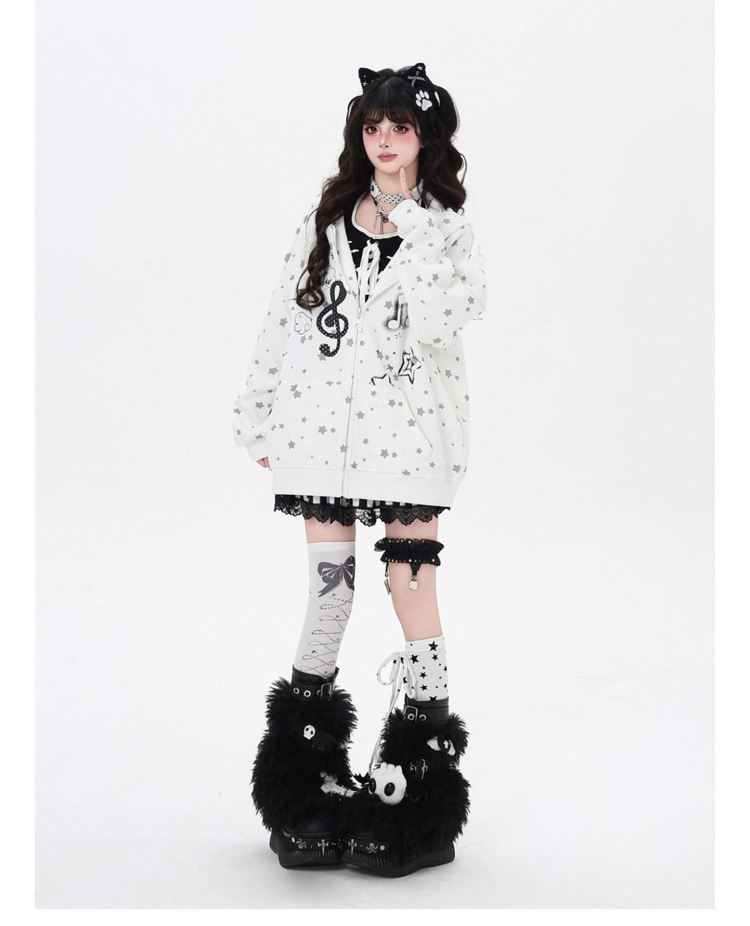 ゆったりフードつきパーカー、スパイダーウェブと蝶のデザイン