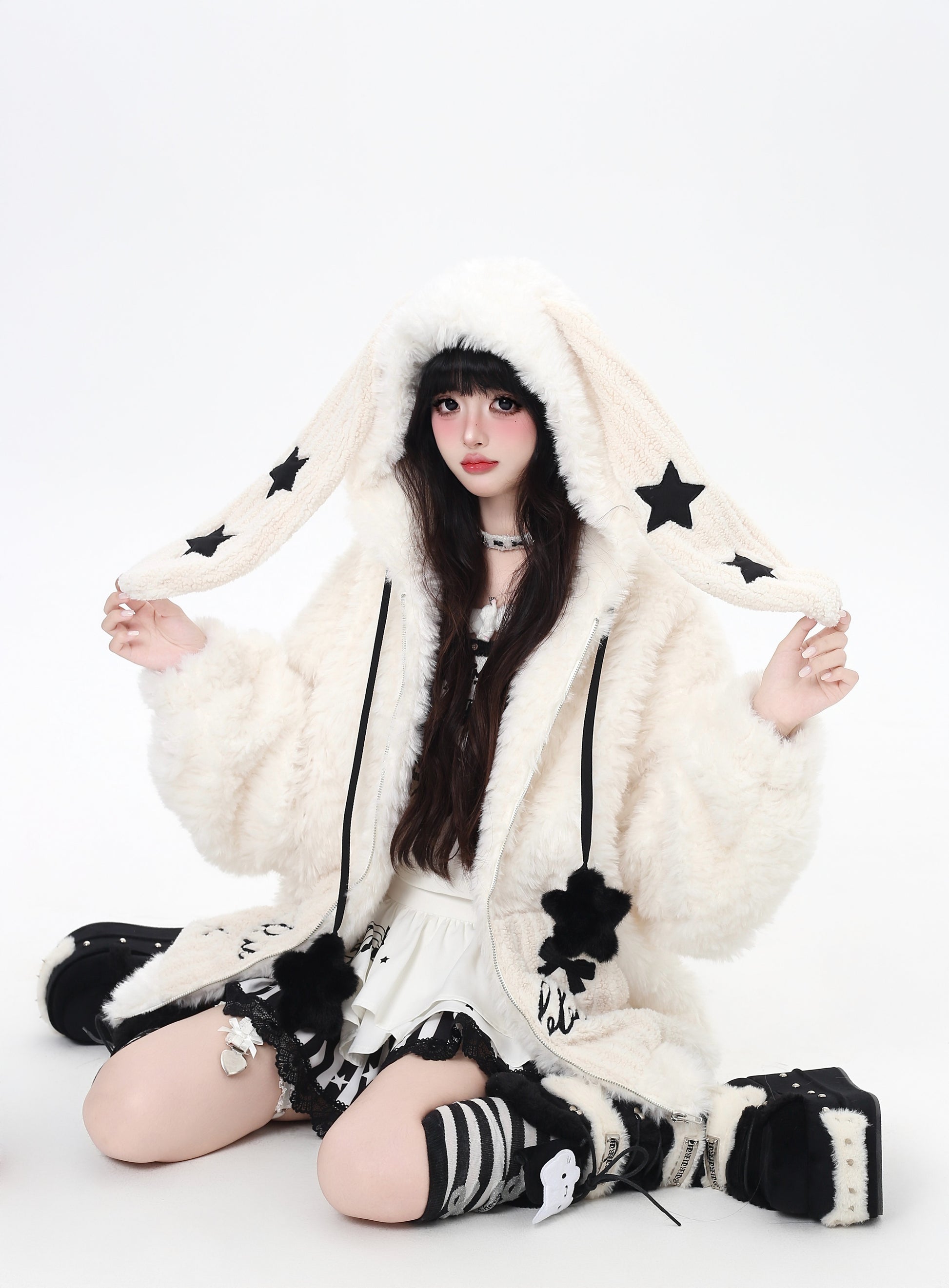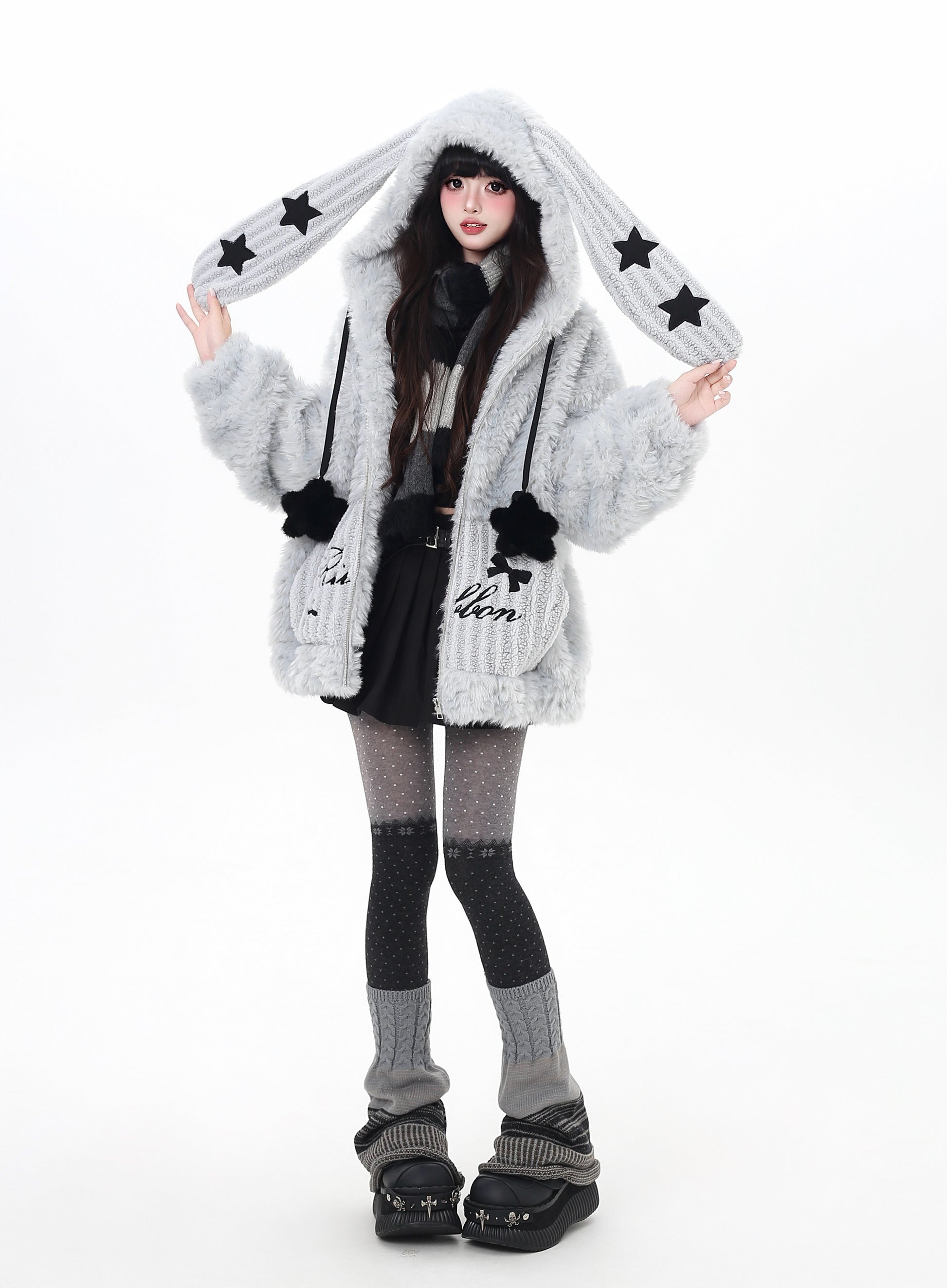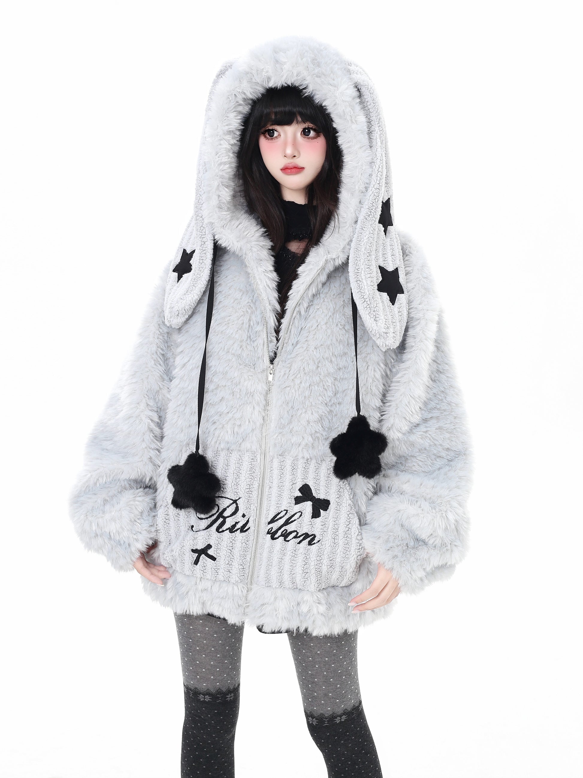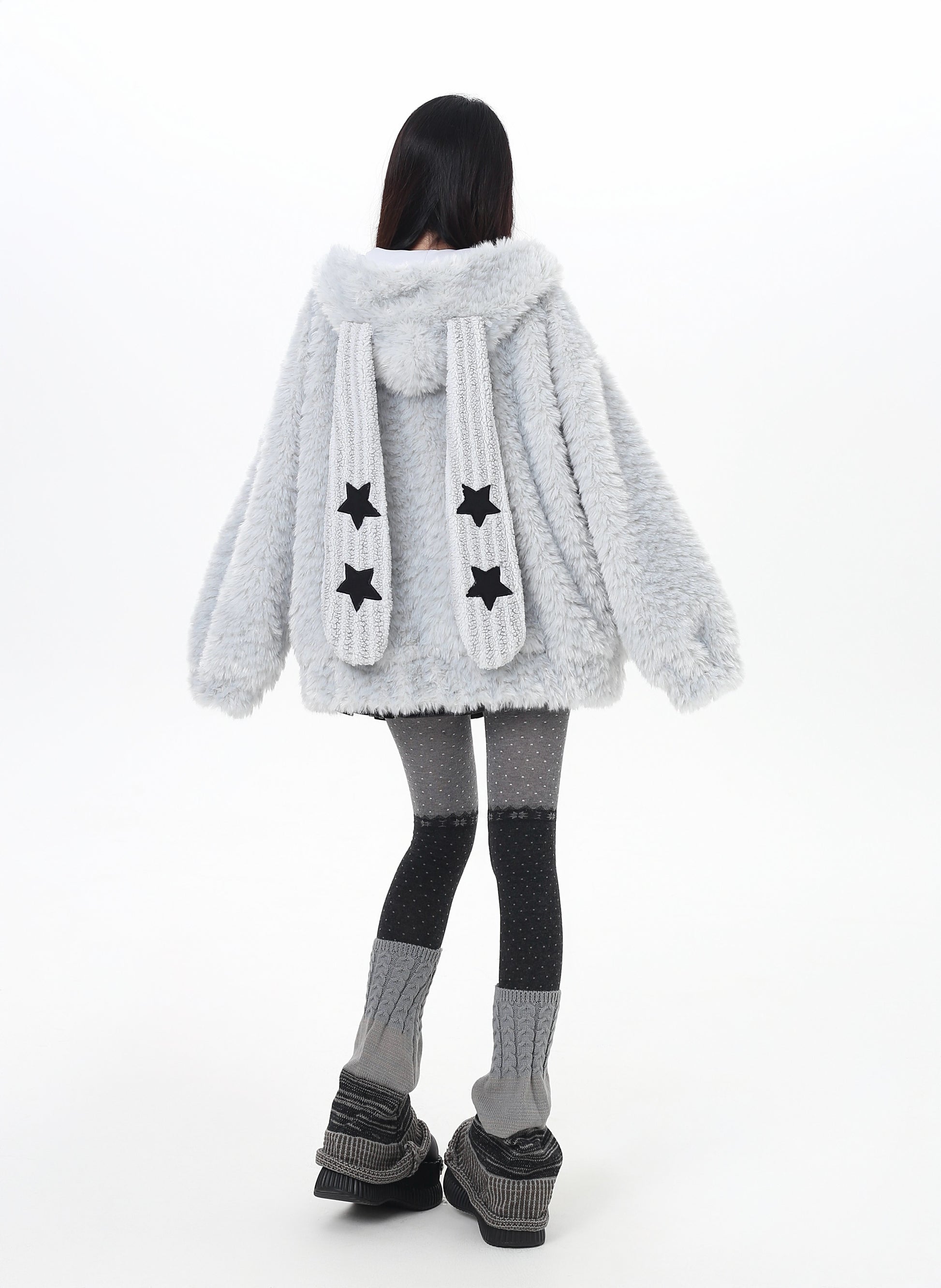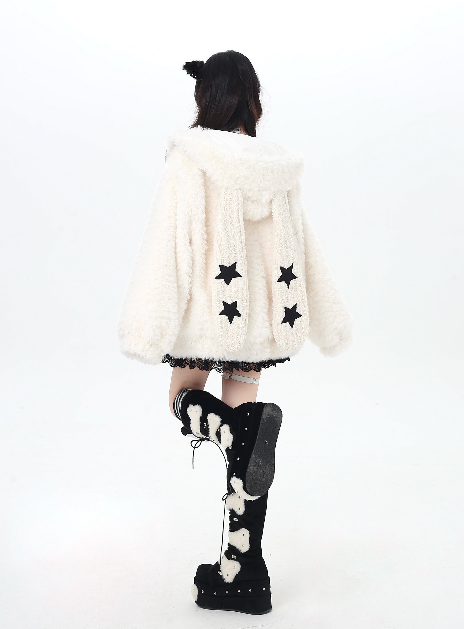 うさ耳フード×星柄ボアジャケット