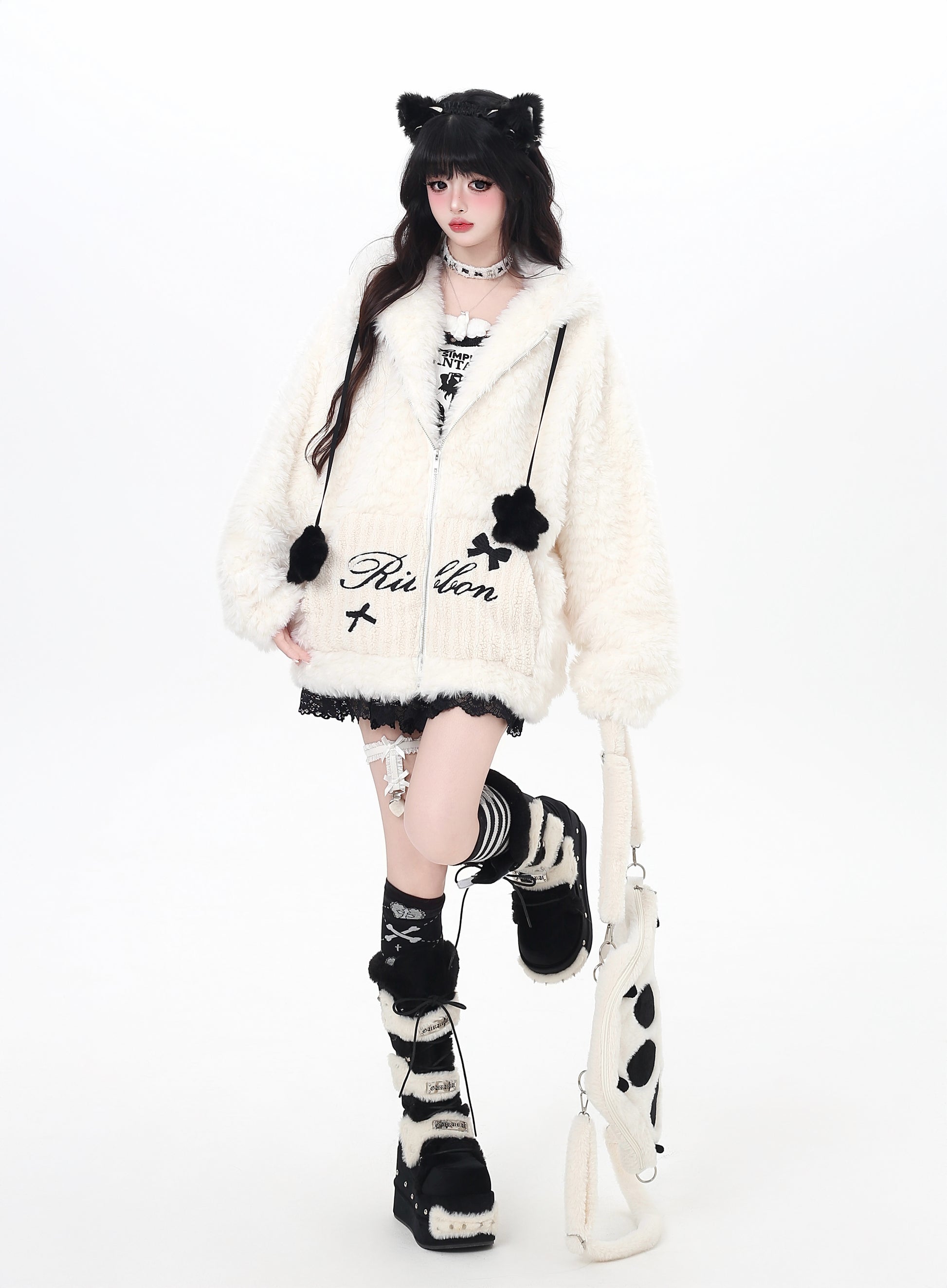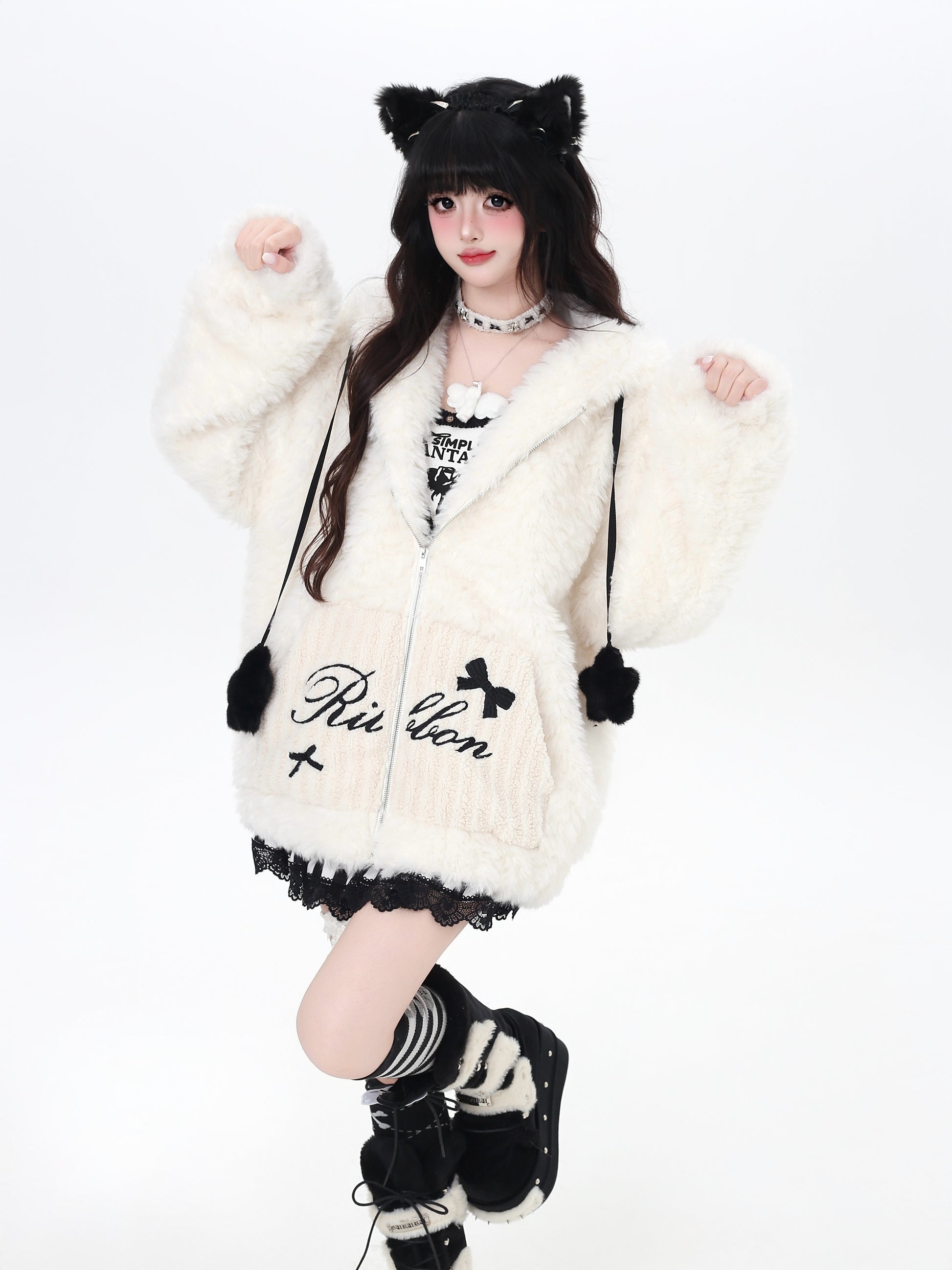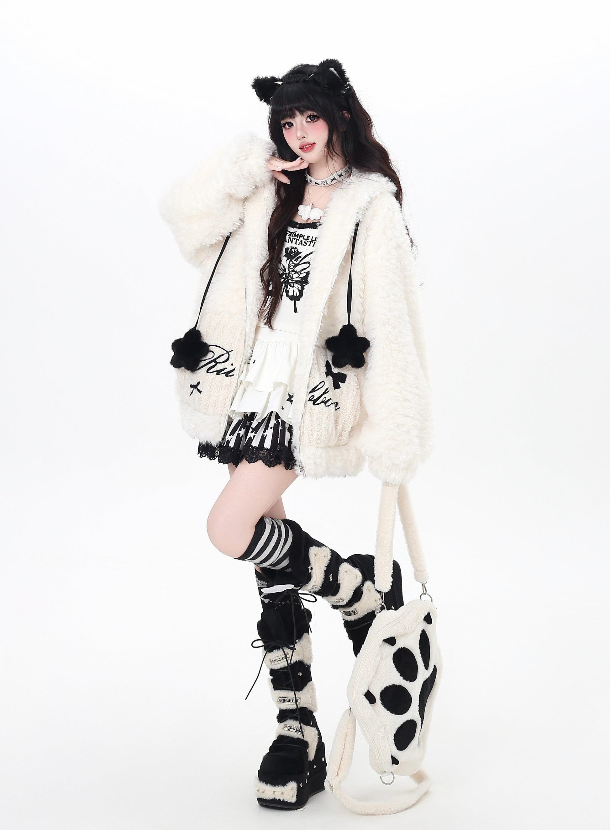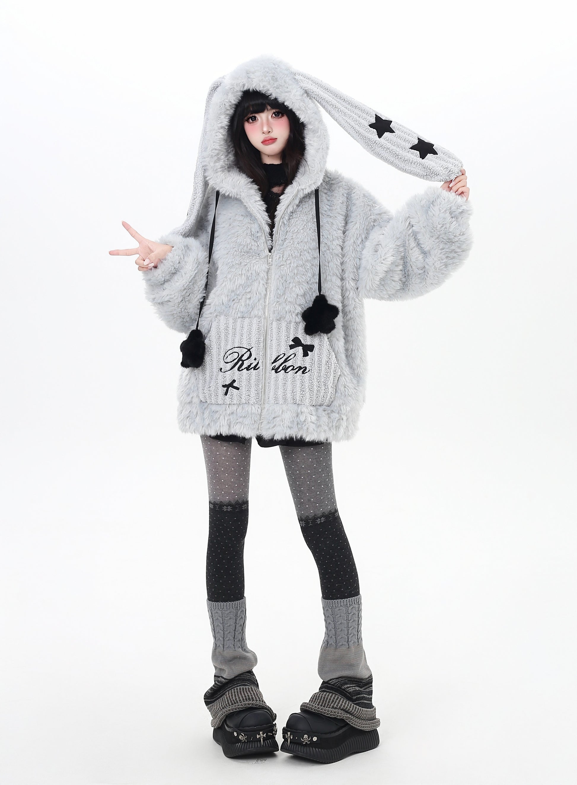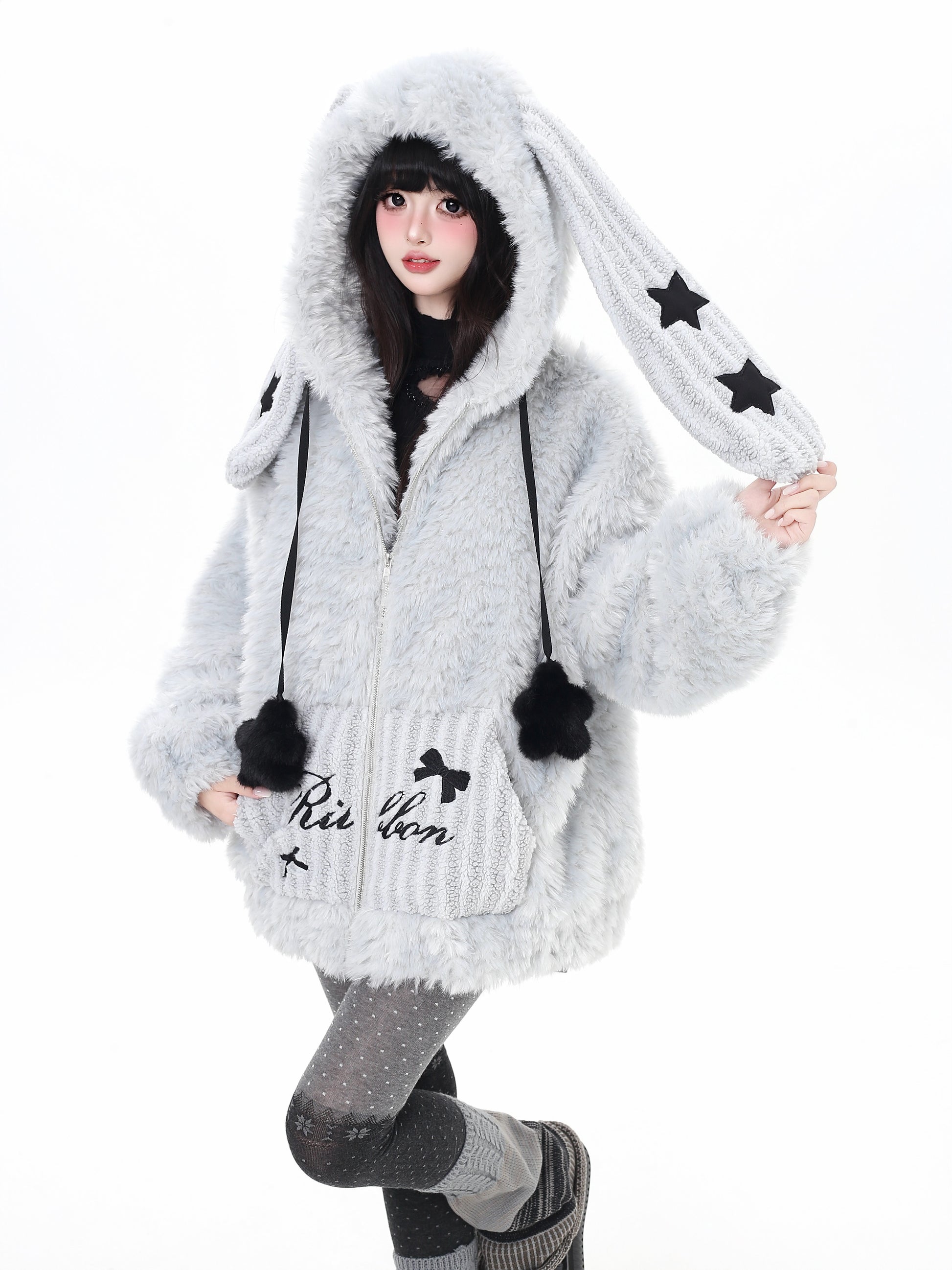 うさ耳フード×星柄ボアジャケット