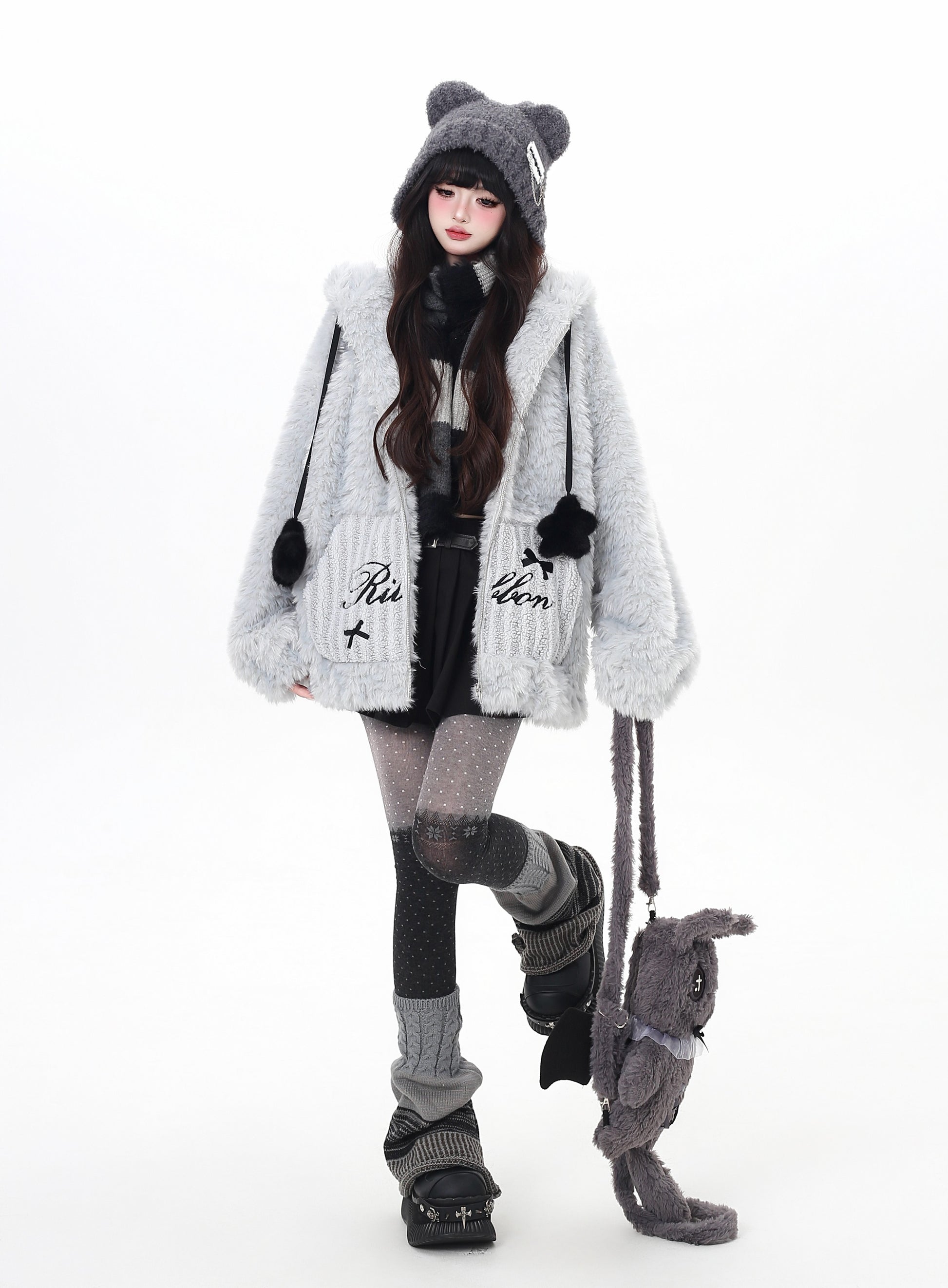 ふわふわボアにうさ耳フードと星モチーフがきゅんポイントの冬アウター。