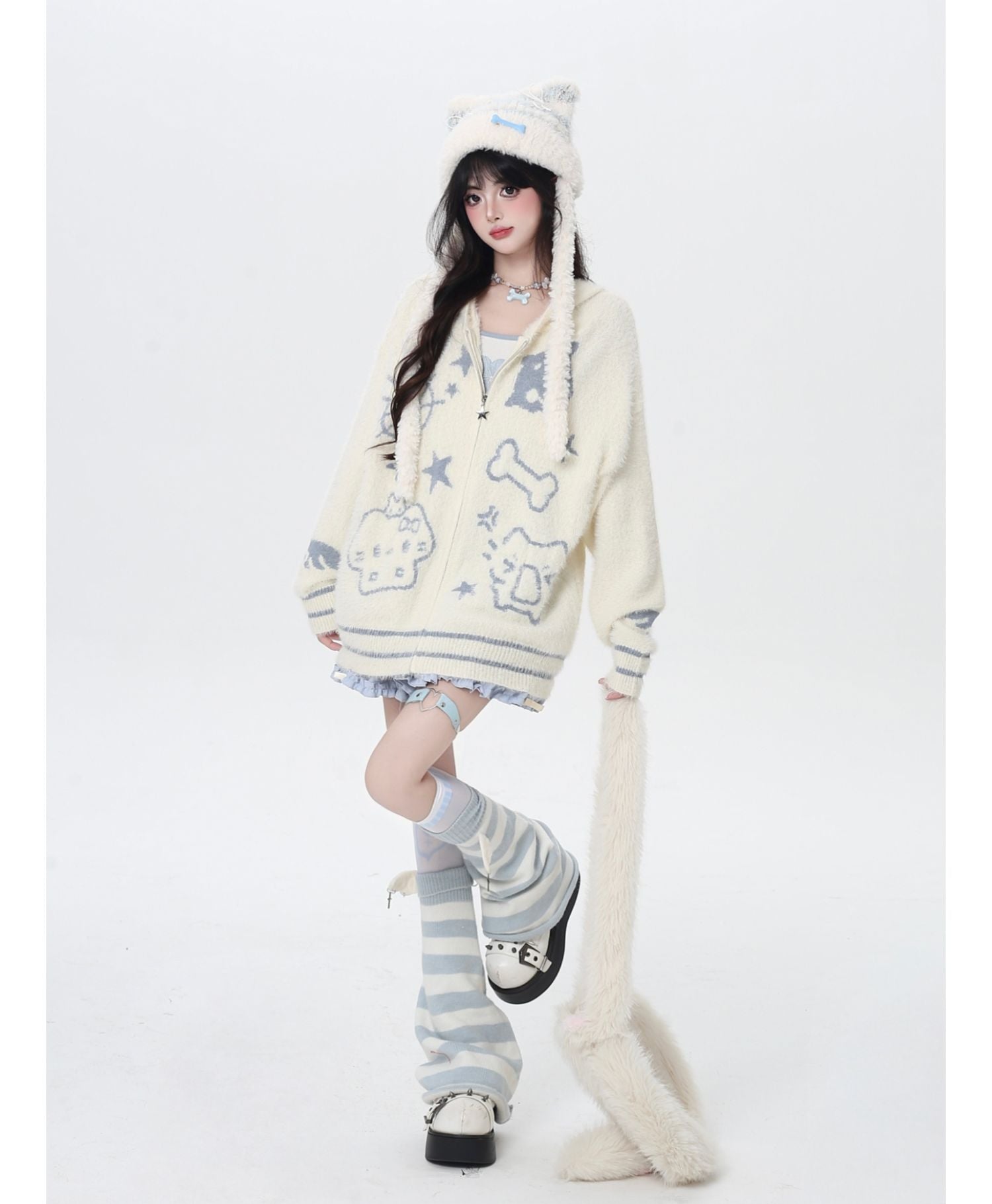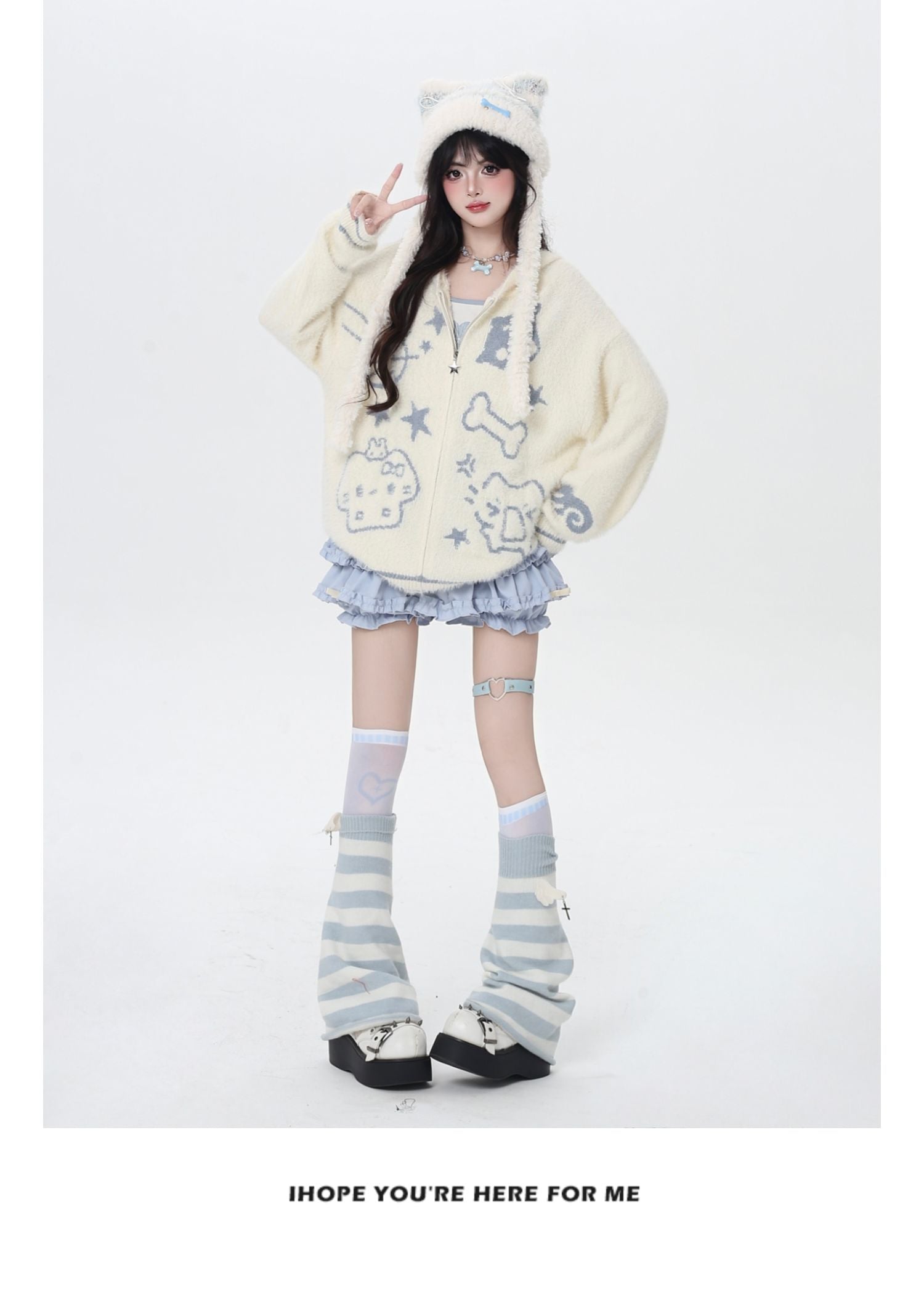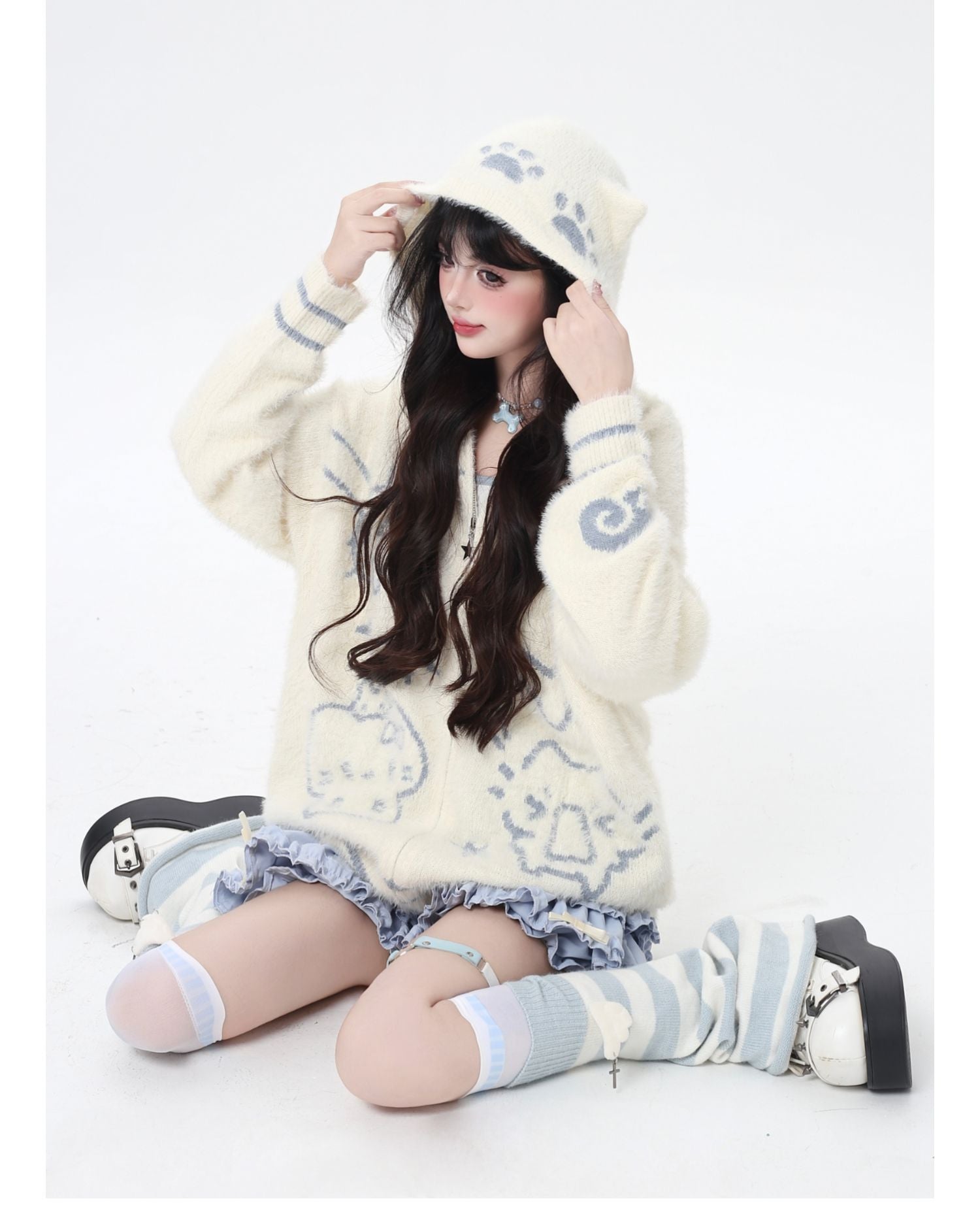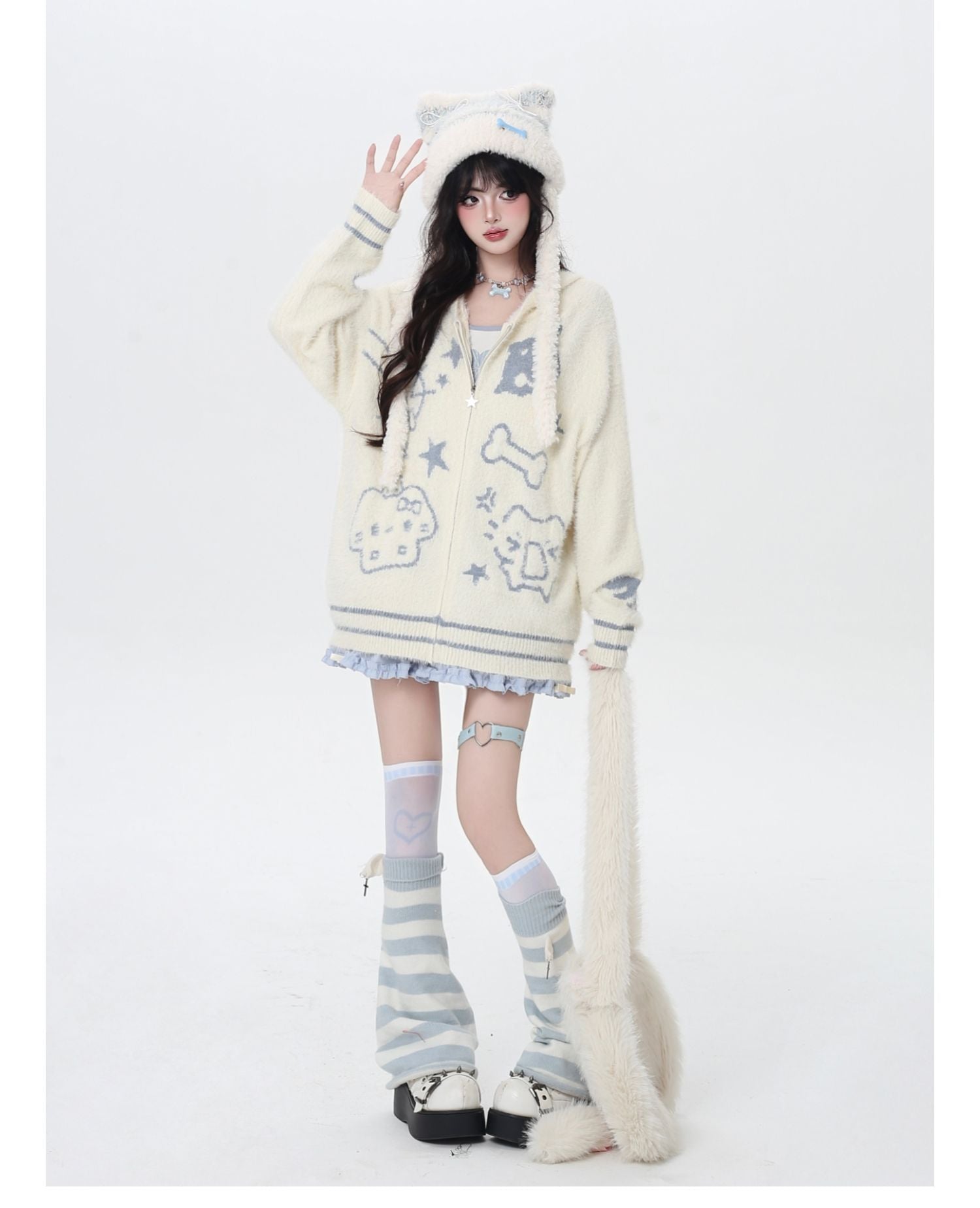 アニマル耳がちょこんと可愛い秋冬カーデ。ゆったりシルエだから、日常のゆるコーデにも、推し活の写真映えにもぴったり。