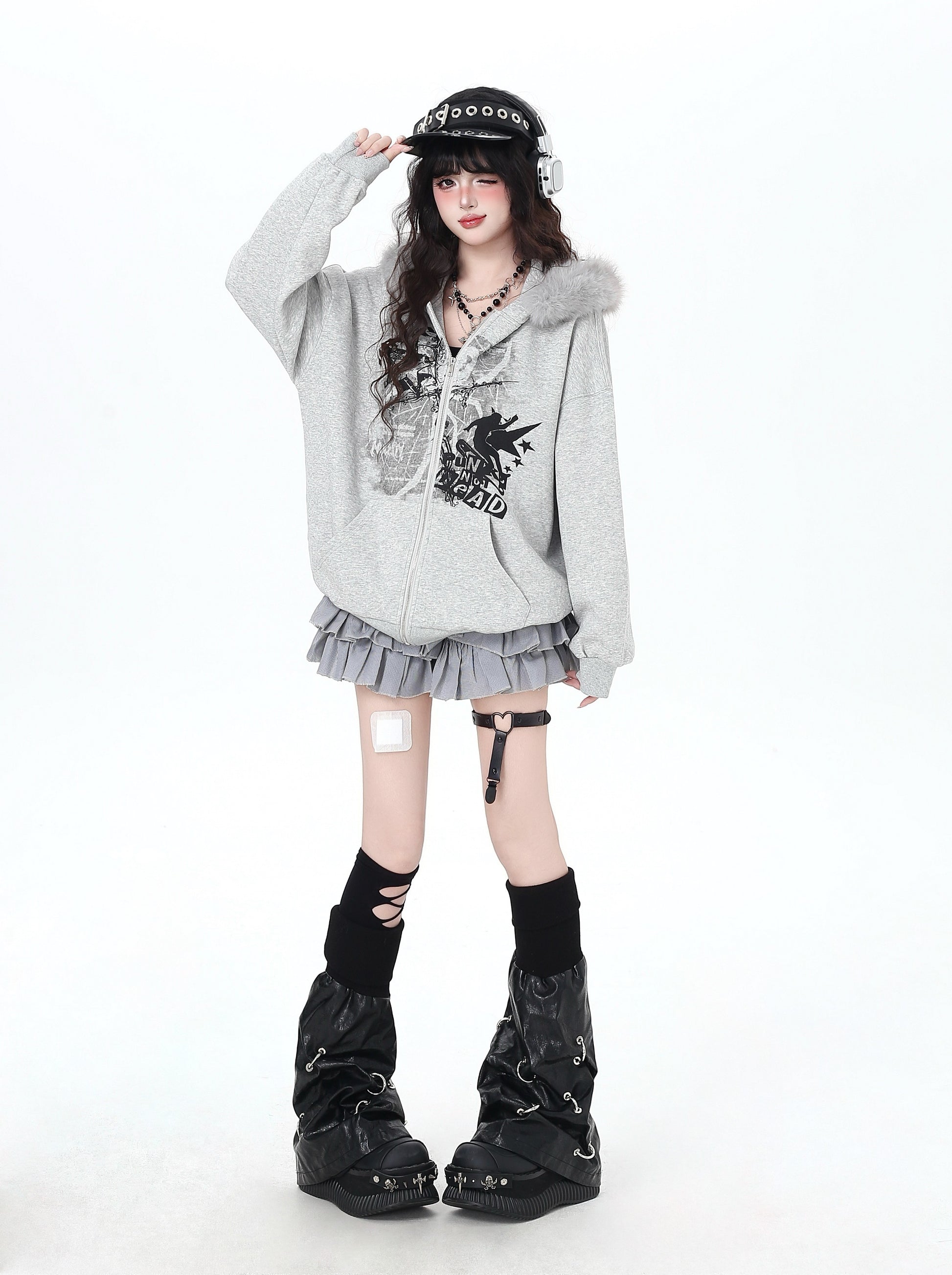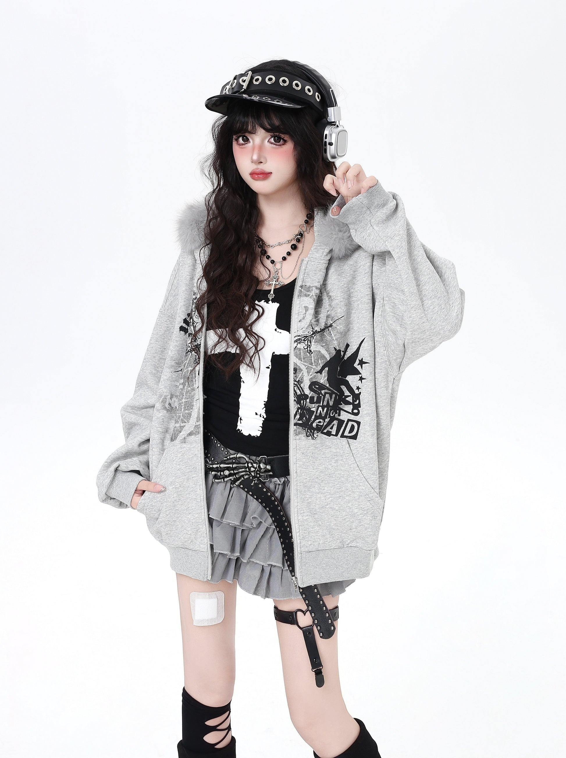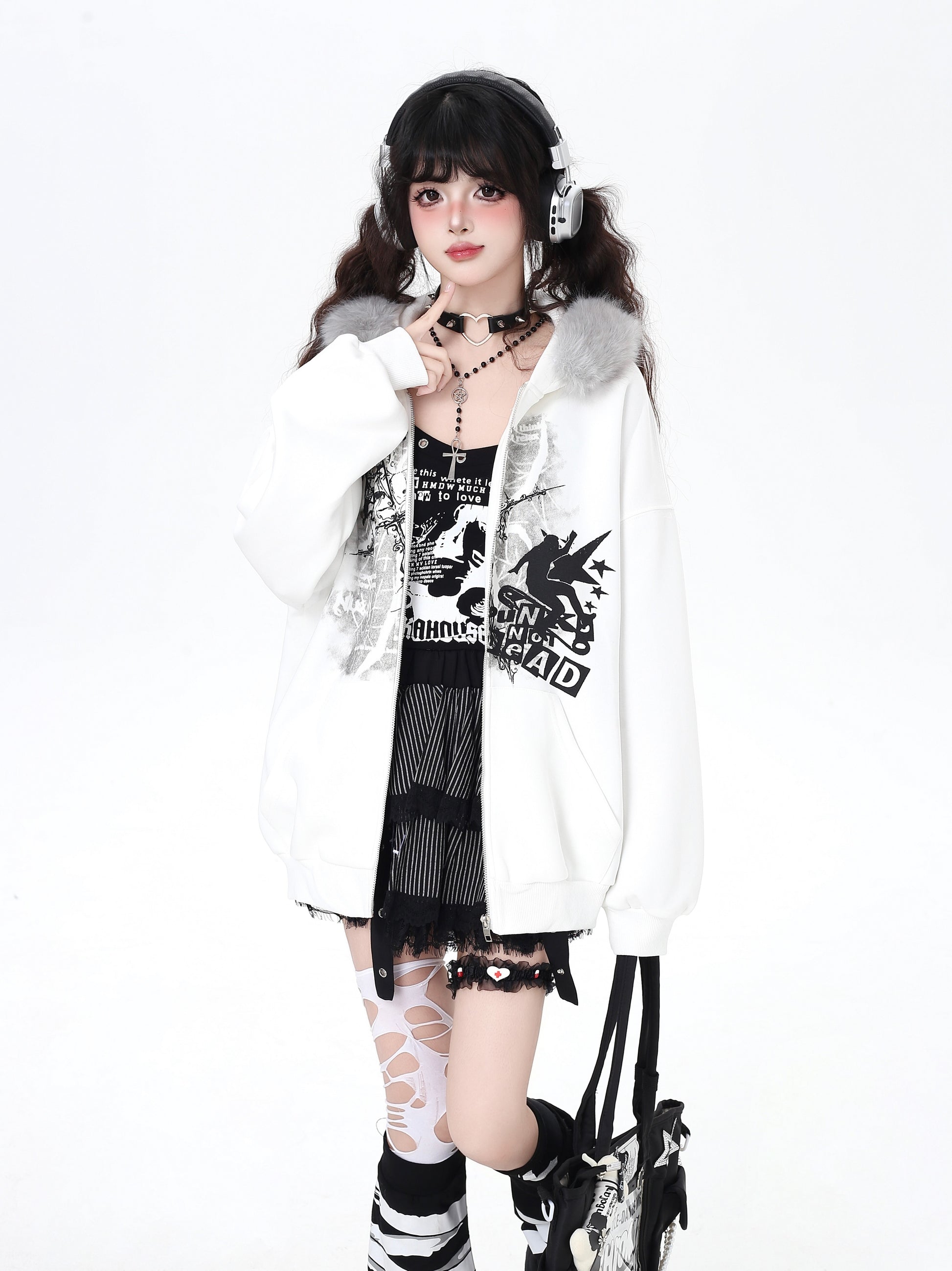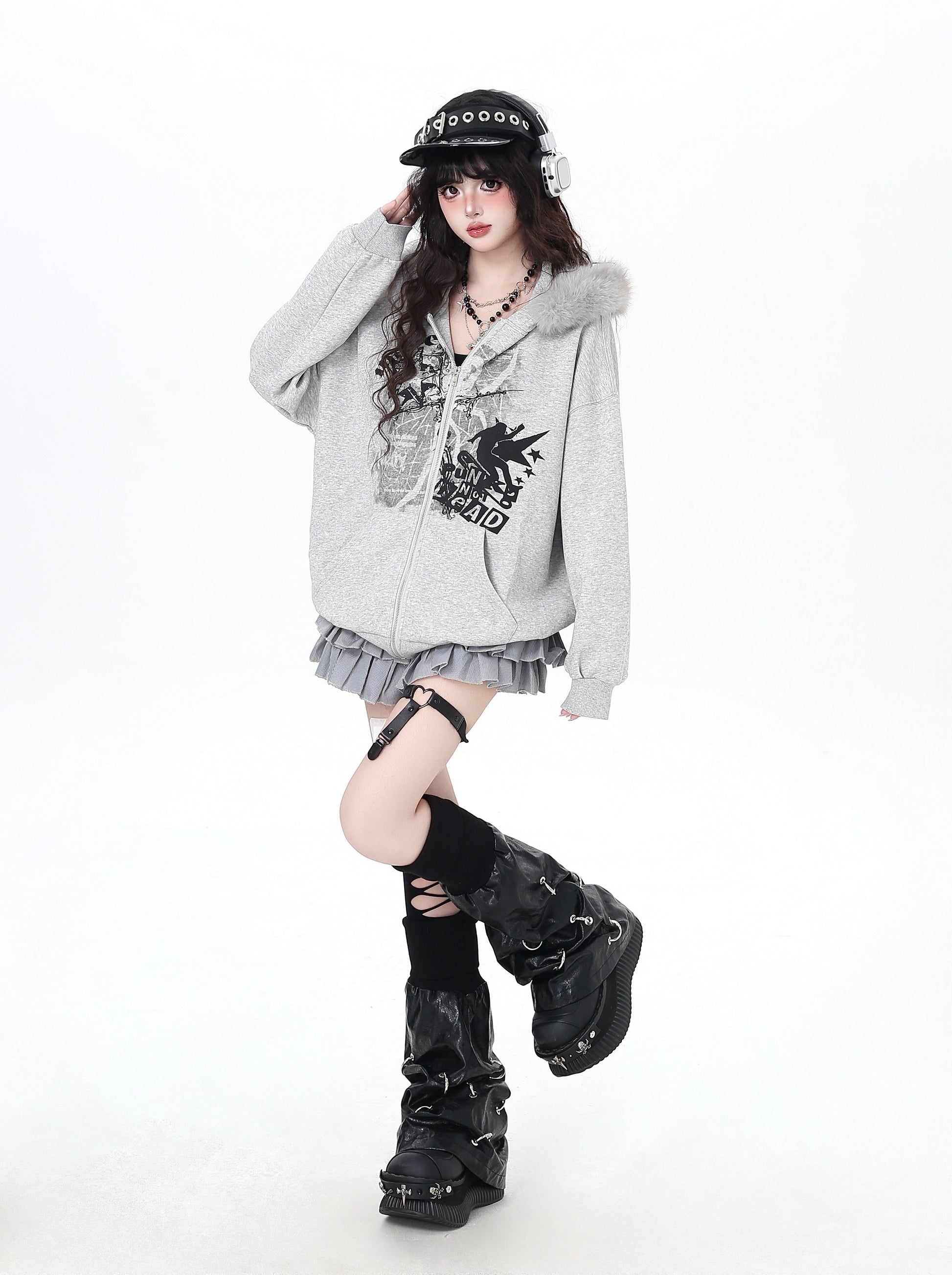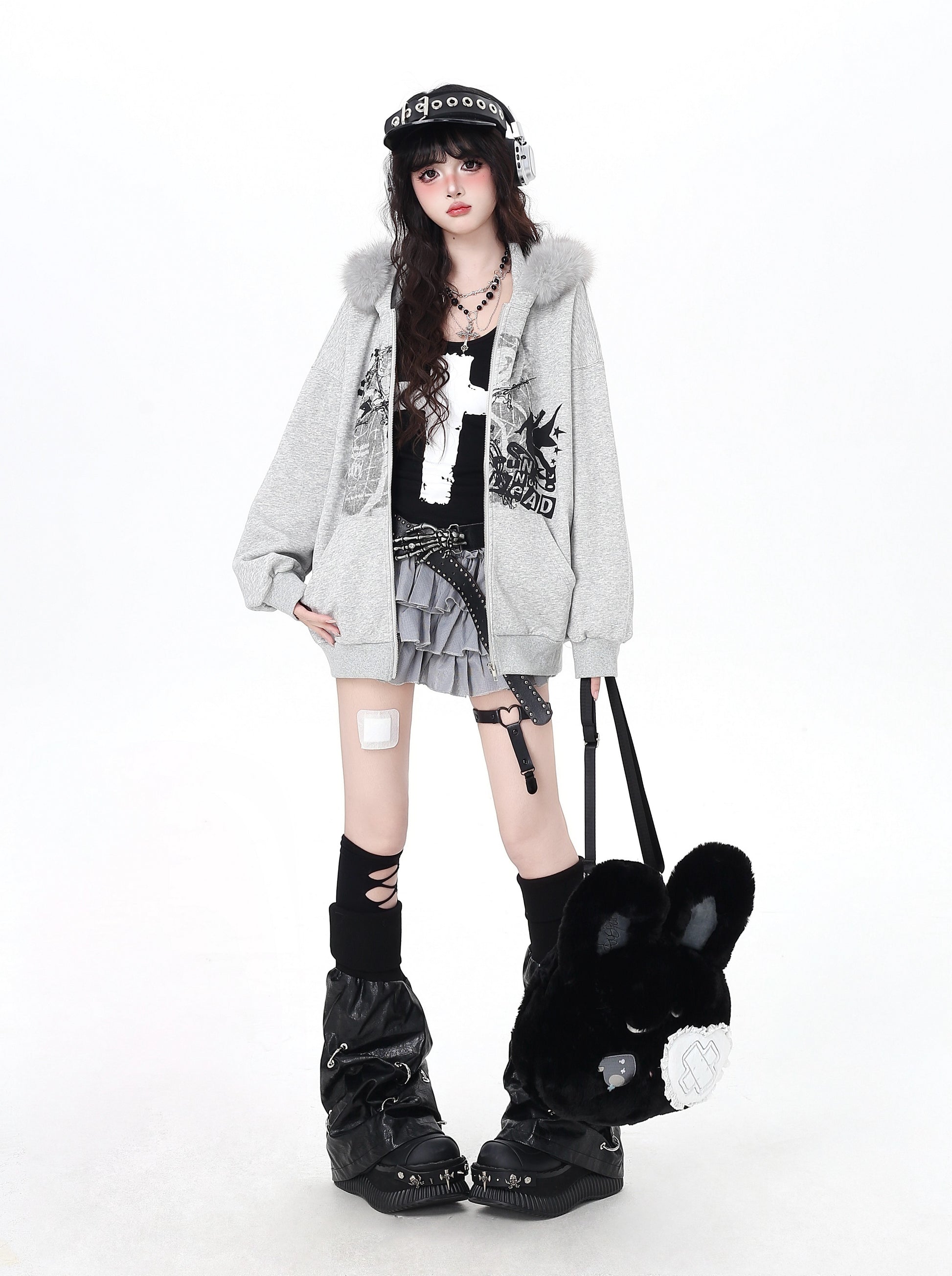 ストリート×ヴィンテージ感のゆるフーディ♡取り外し可能なファー付きで、季節やコーデに合わせてアレンジ自由。小粋なデザインで秋のカジュアルスタイルにぴったり🖤