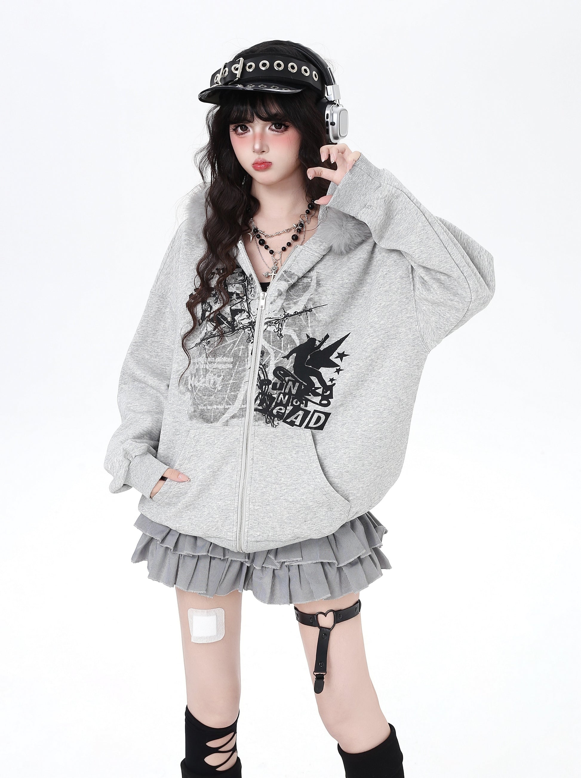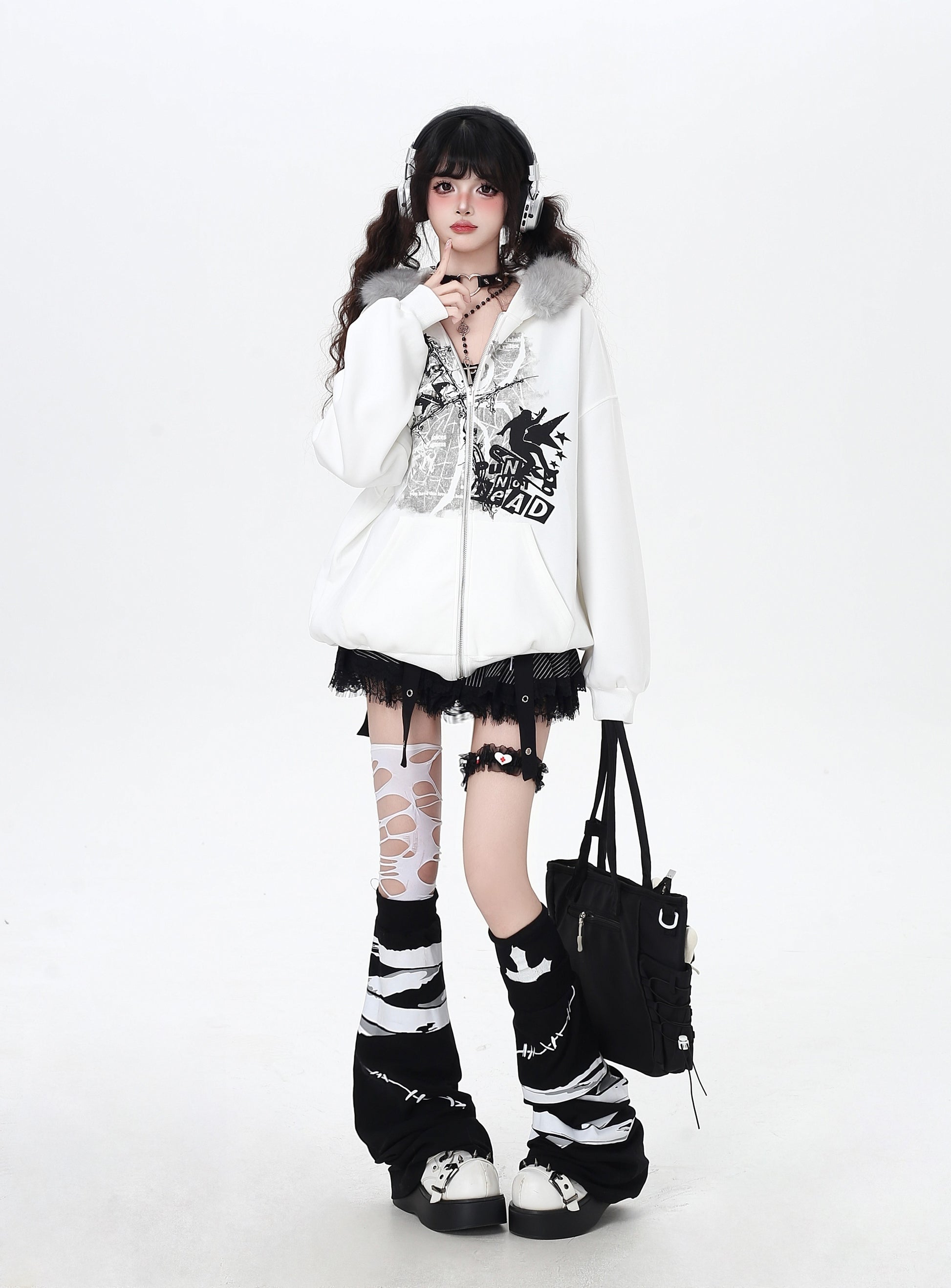 ゆったりフードつきパーカー、スパイダーウェブと蝶のデザイン