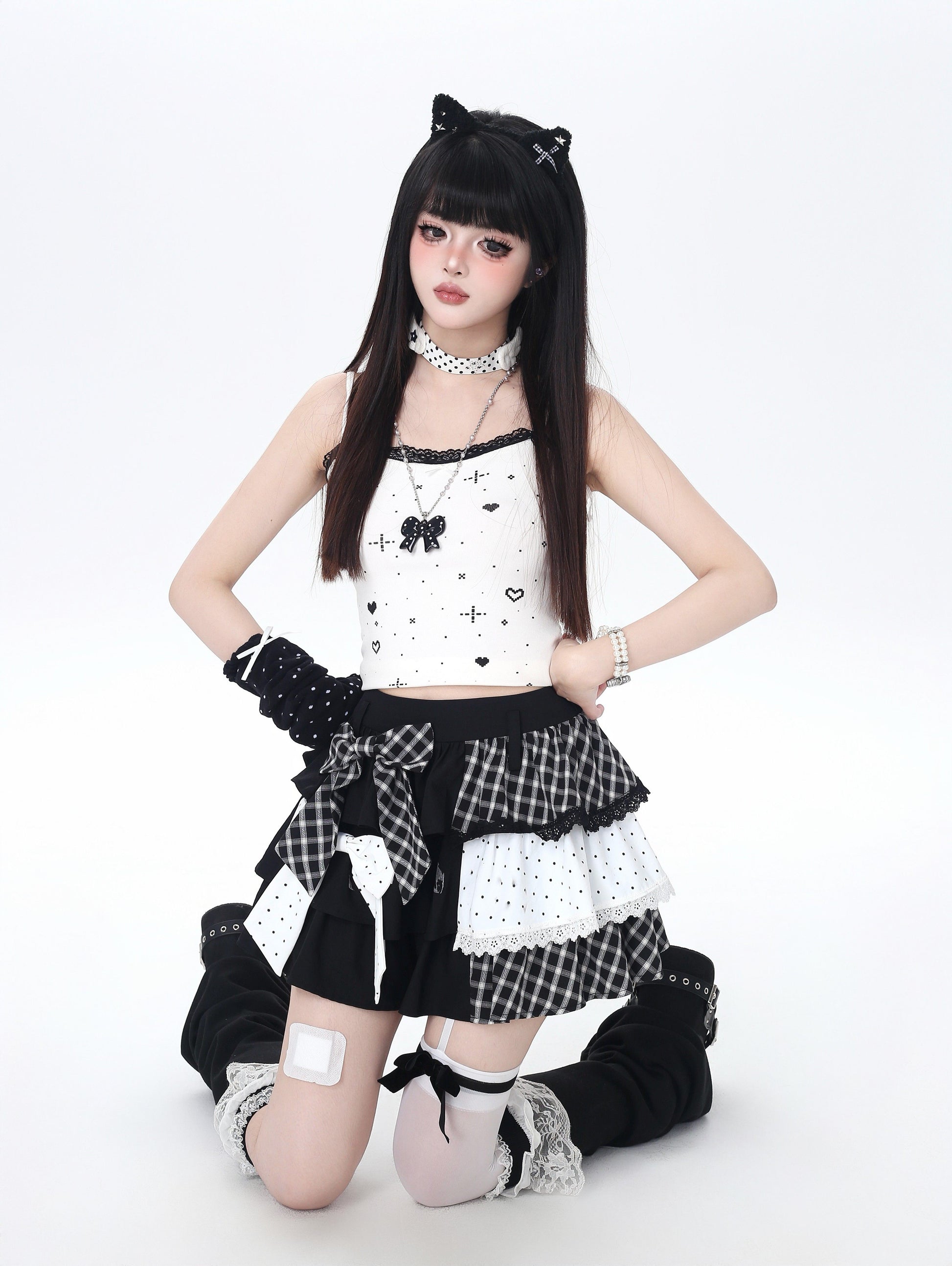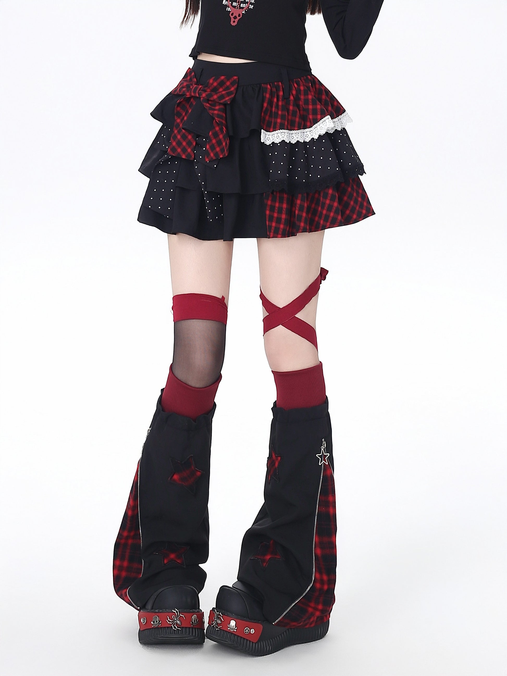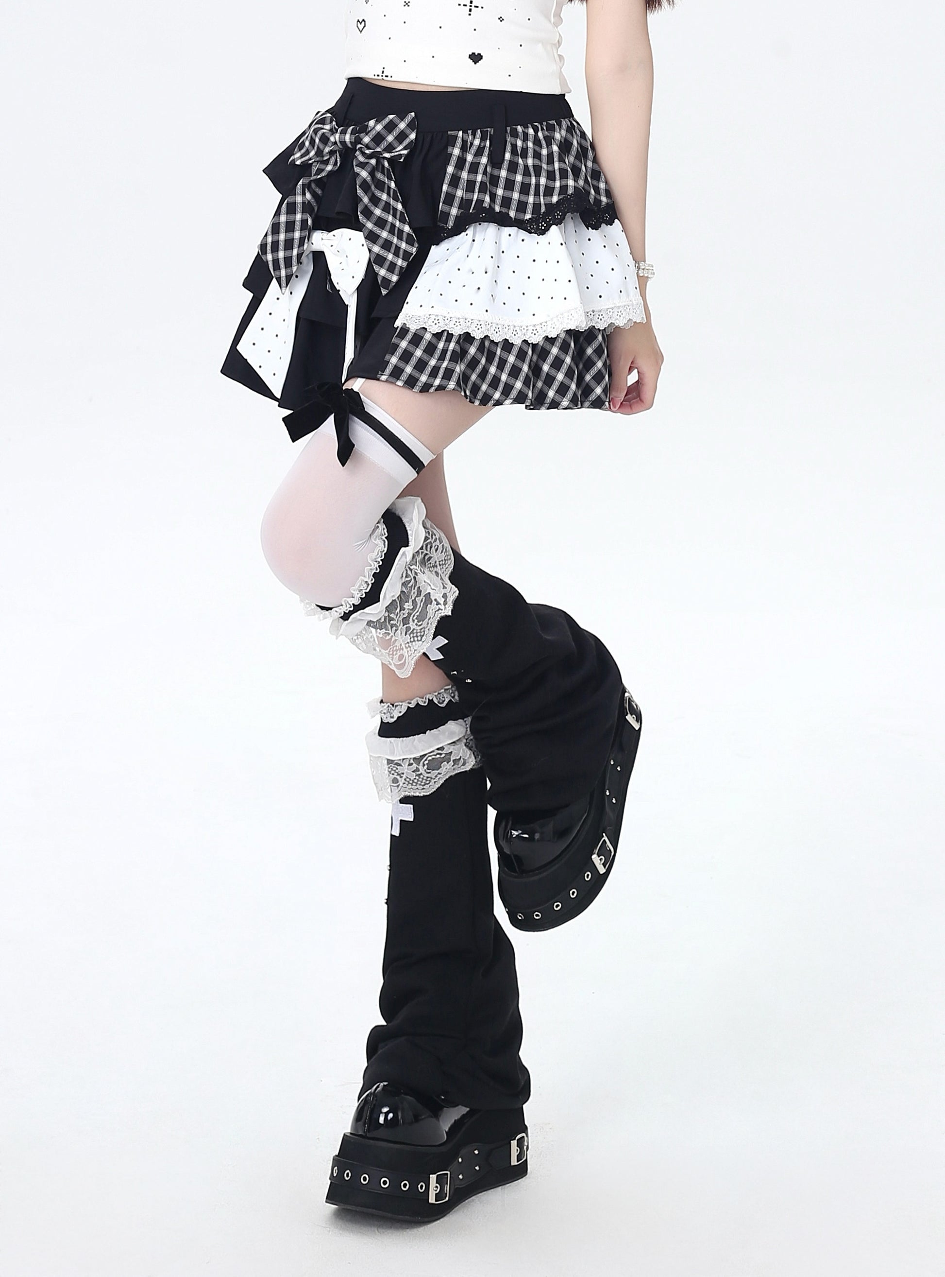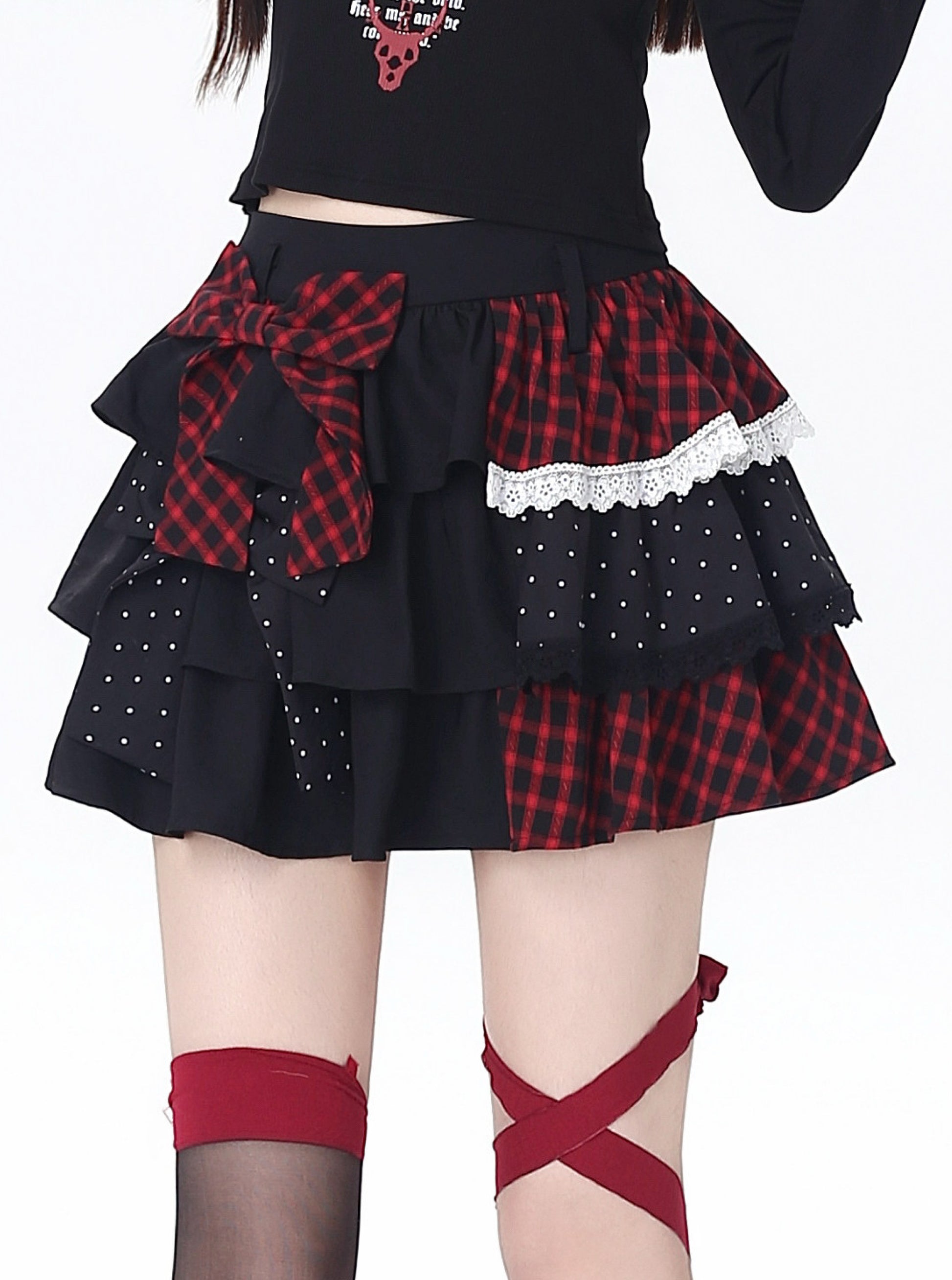 ドット×チェックの切り替えが可愛い、Y2Kムードたっぷりのティアードスカート🖤