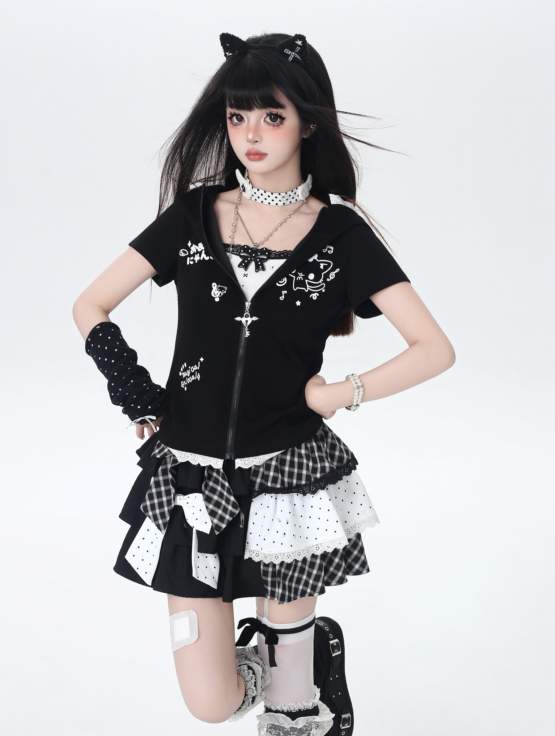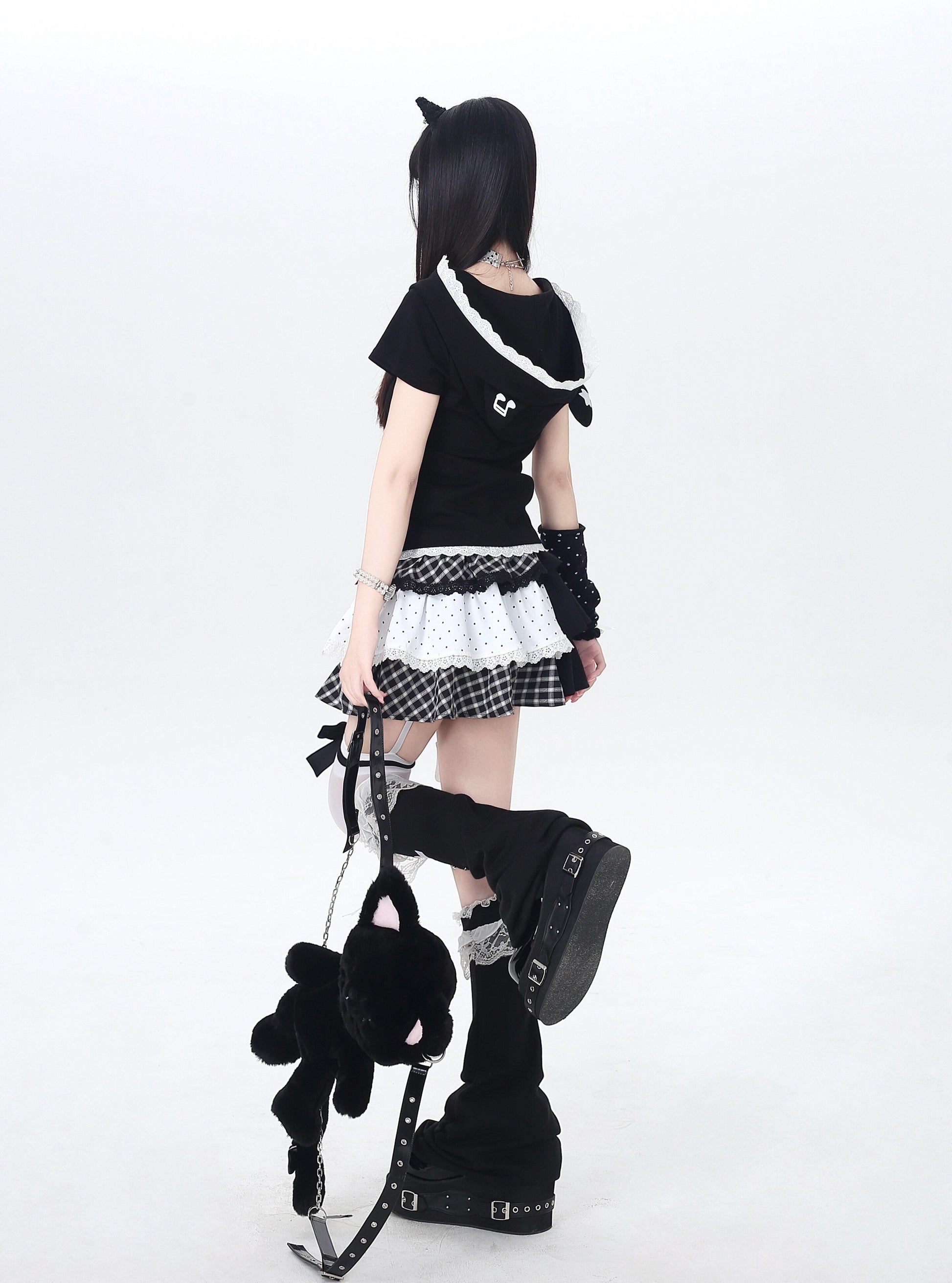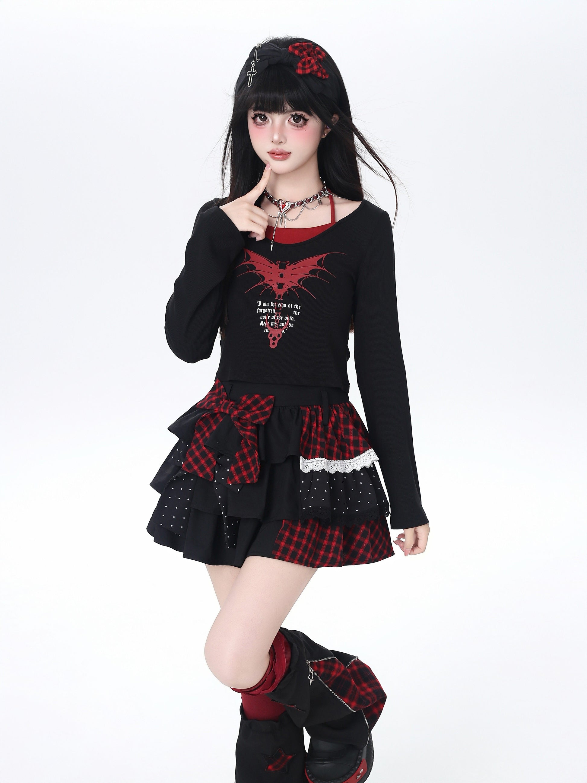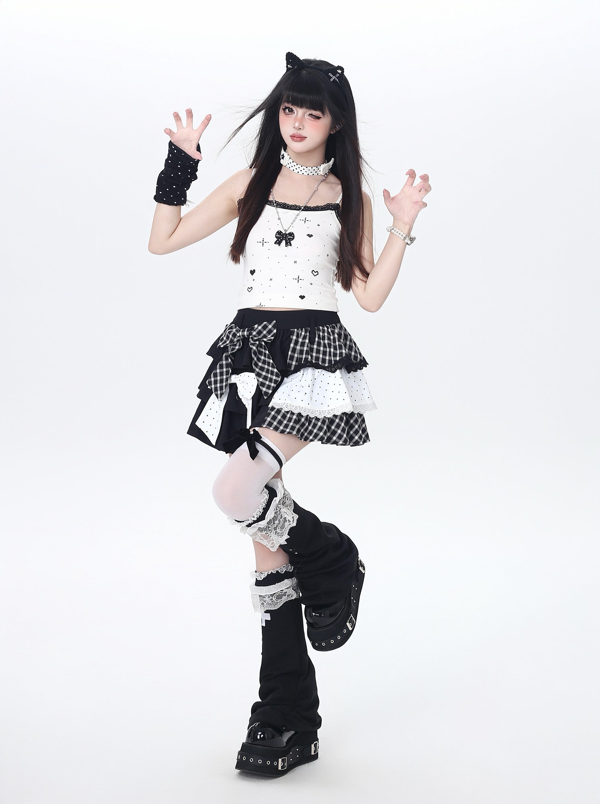ドット×チェックの切り替えが可愛い、Y2Kムードたっぷりのティアードスカート🖤