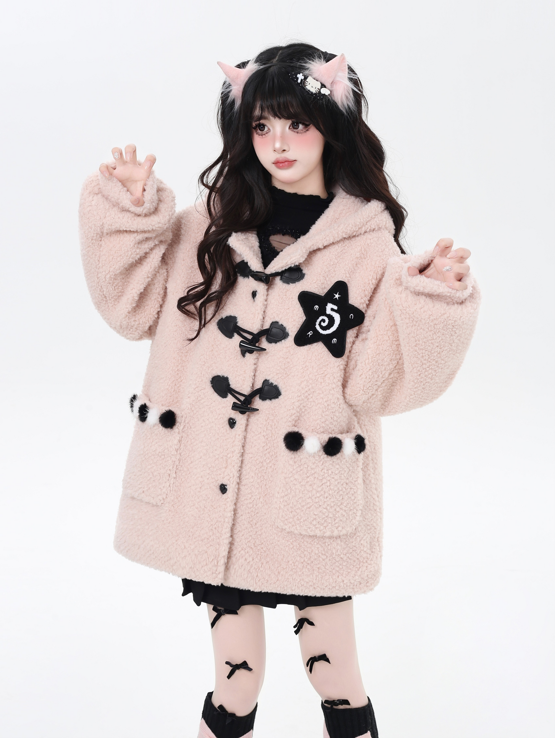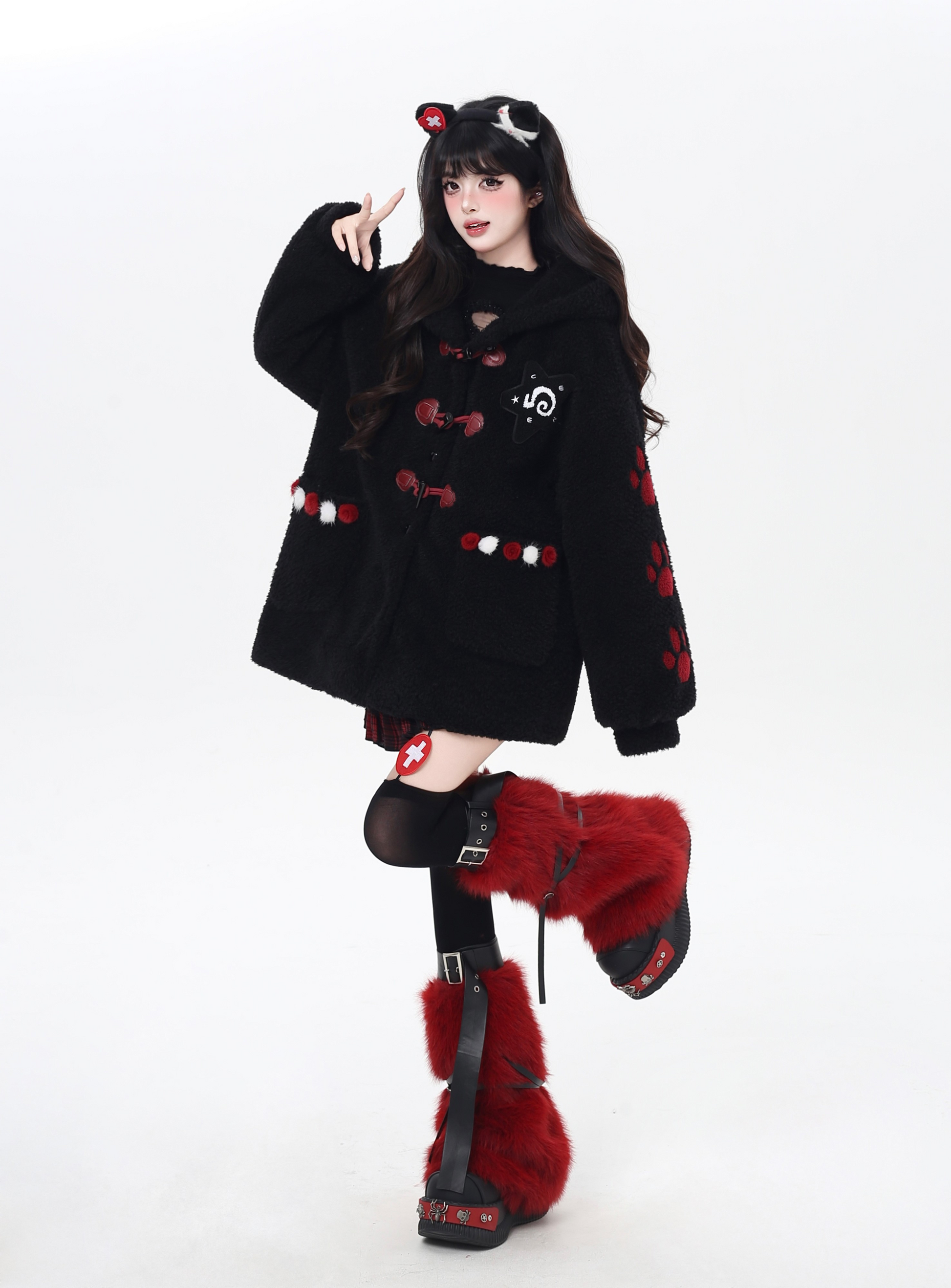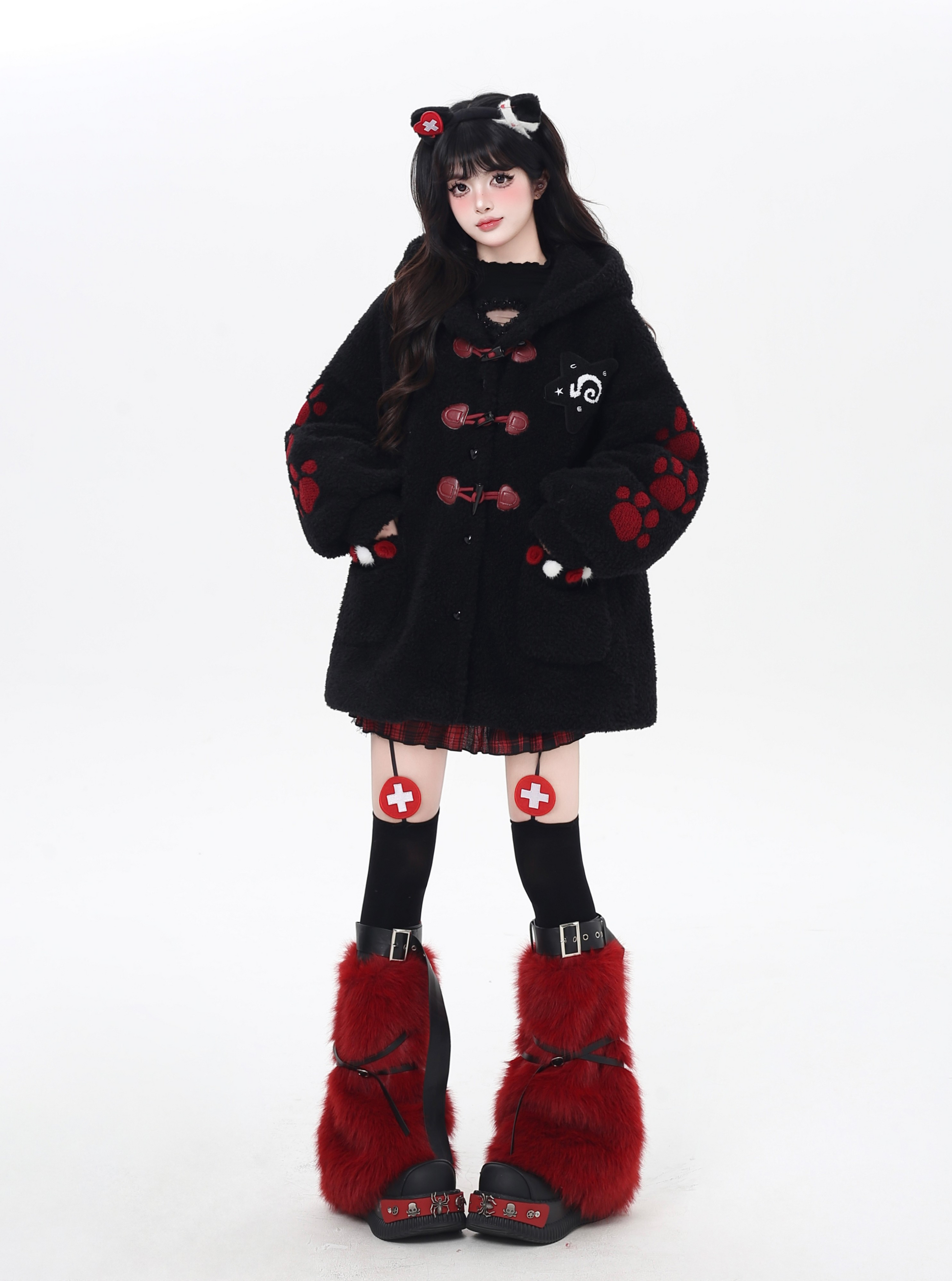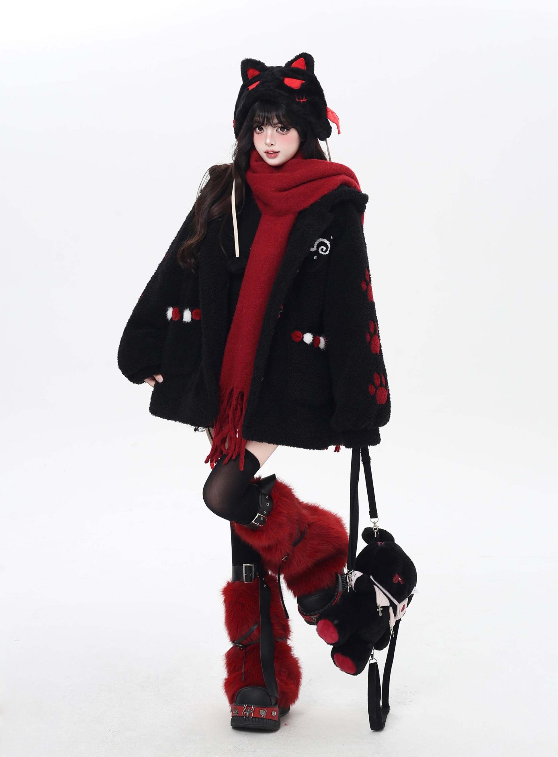 猫爪の刺繍とフード付きデザインが可愛い羊羔绒棉服で、冬のコーデにぴったりの保温アイテム。ふわもこ感とゆったりシルエットが量産型やゆるカジュアル、推し活やOOTDにも映える万能アウターです。