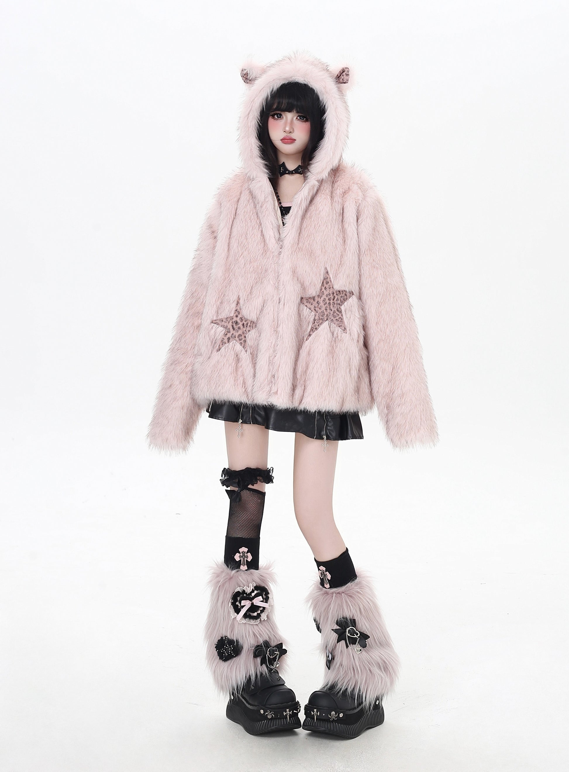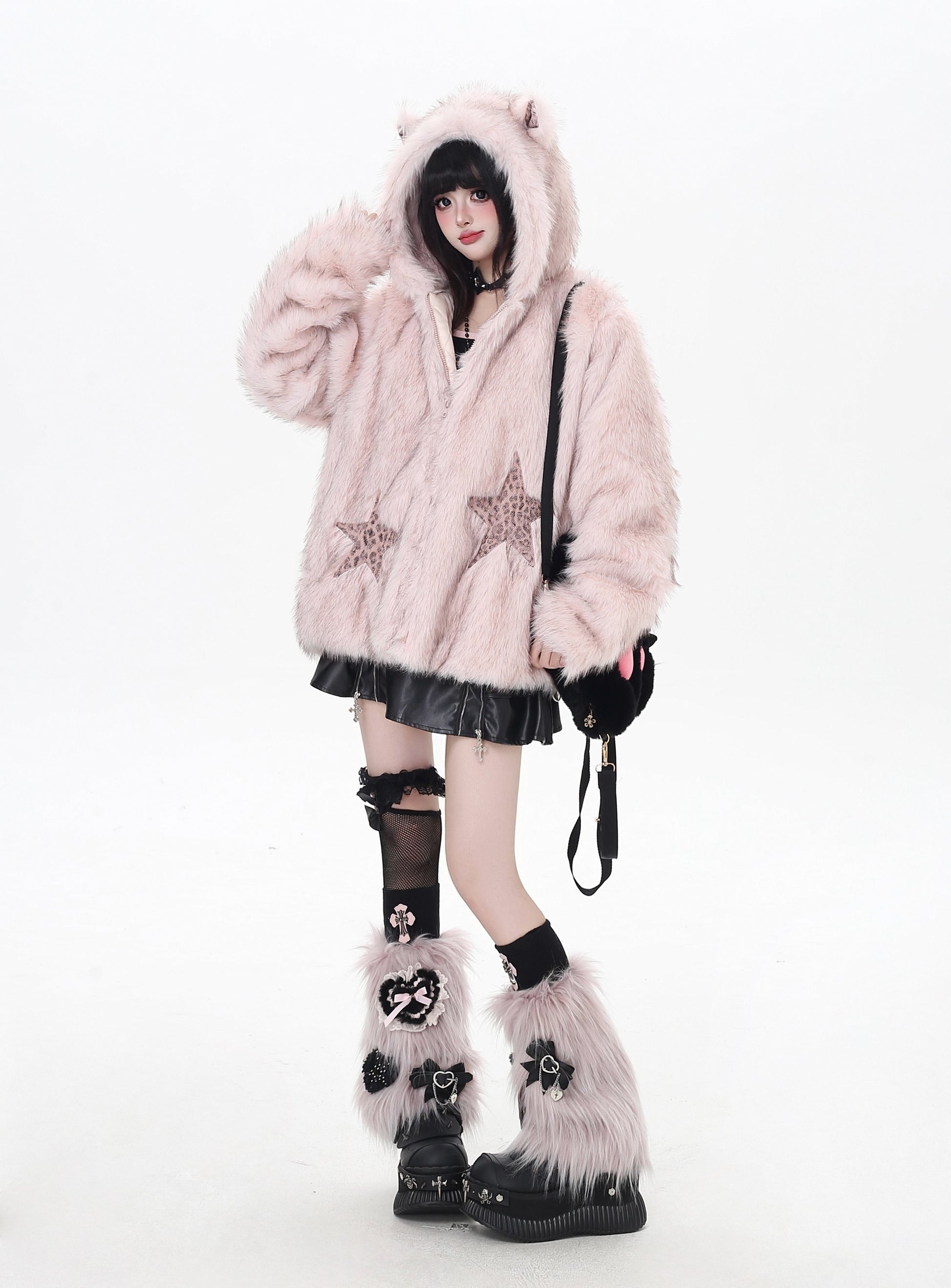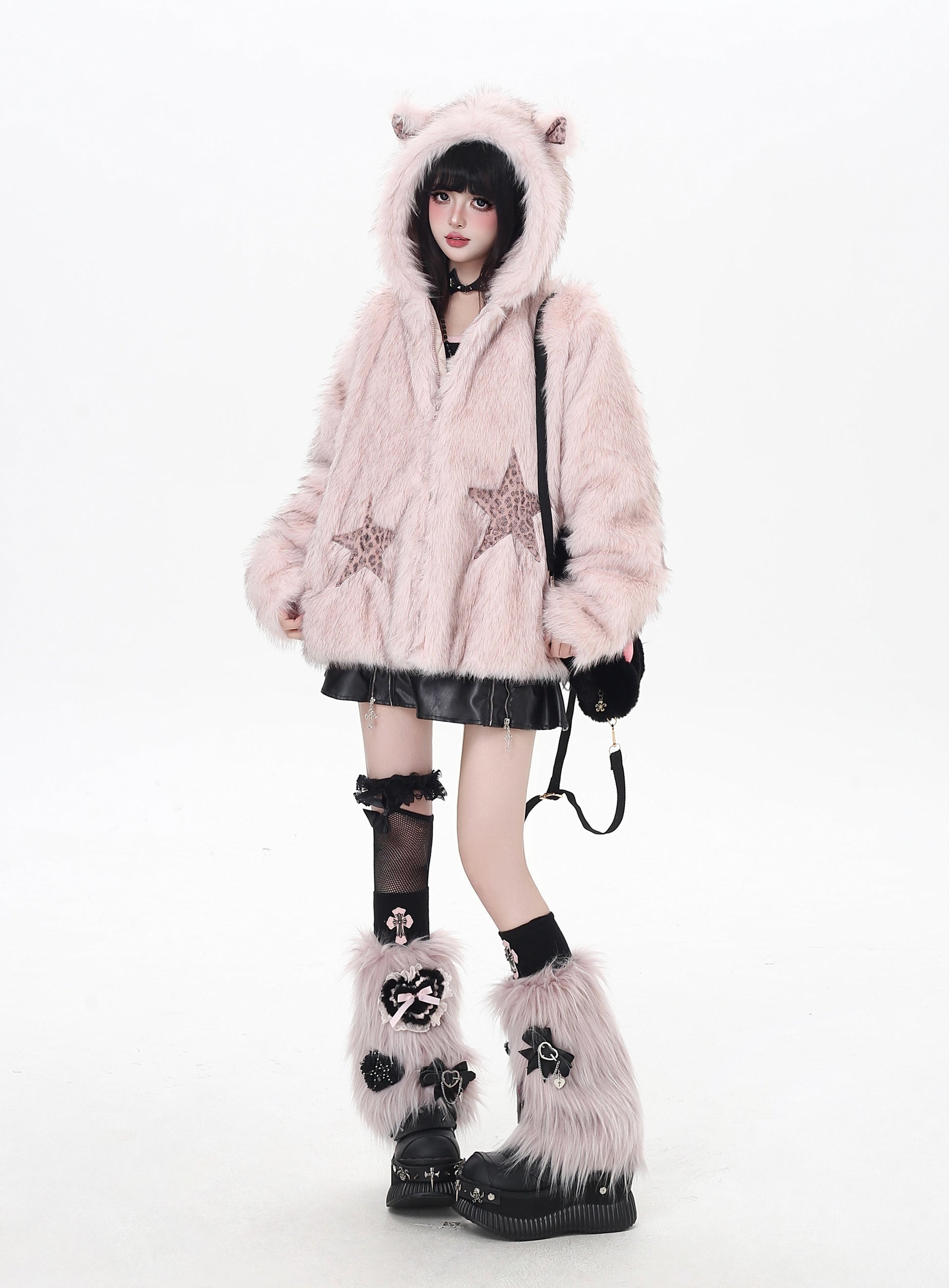 ゆる地雷ふわもこ猫耳スエード中綿アウター