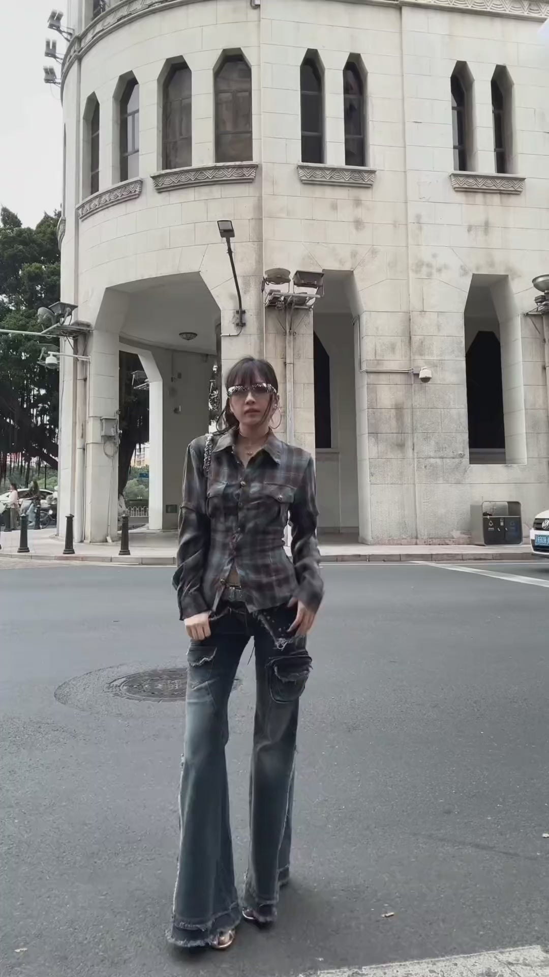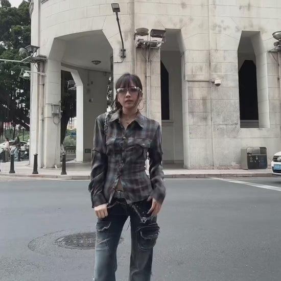 ギャル×チェック バックシャンレースアップシャツ