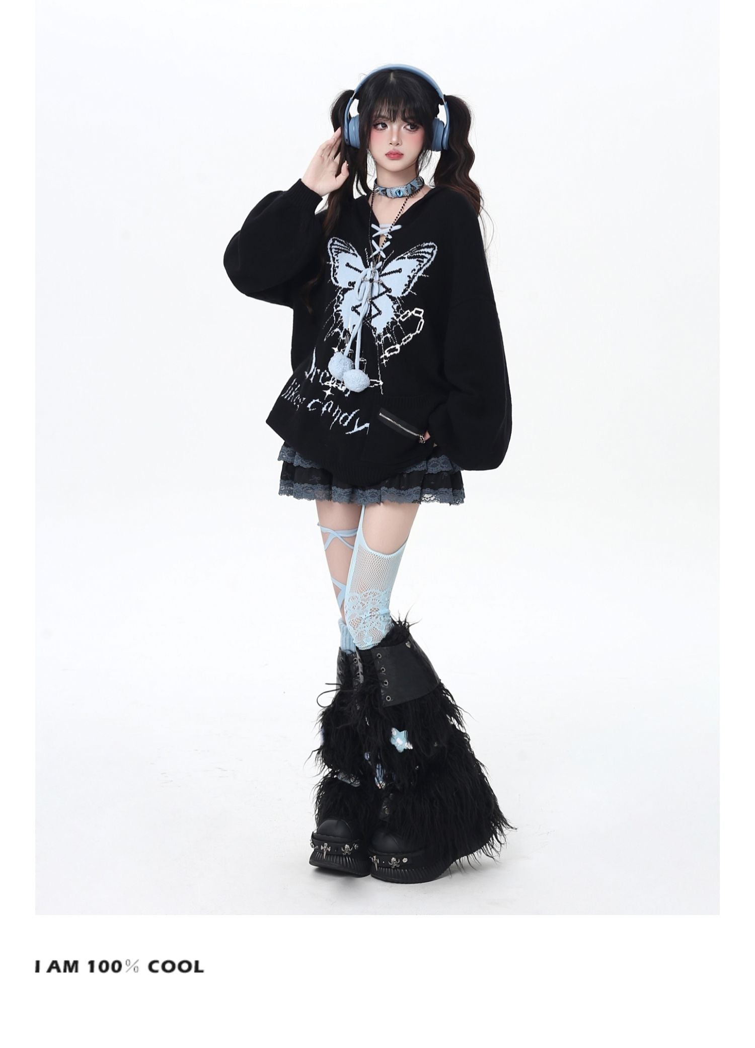 袖のボリュームシルエットと蝶モチーフで、#ゆる地雷 や #Y2K コーデにもぴったり🖤