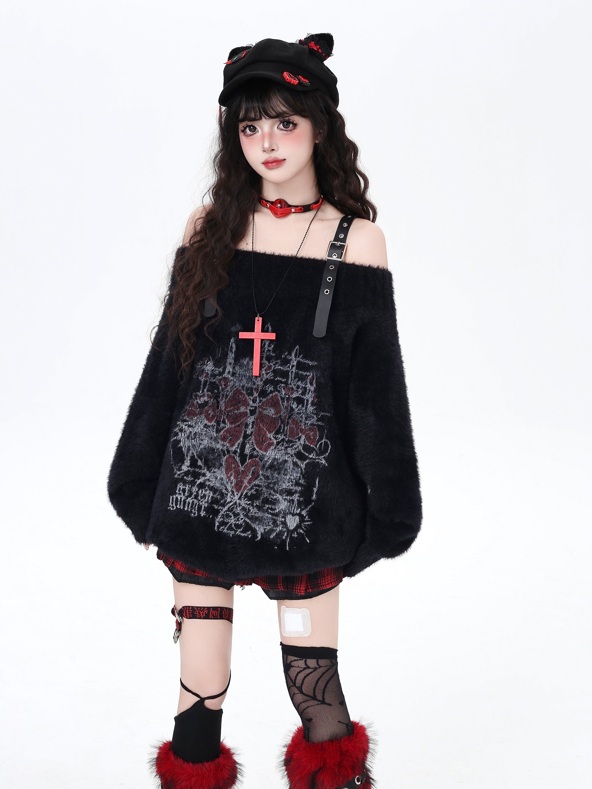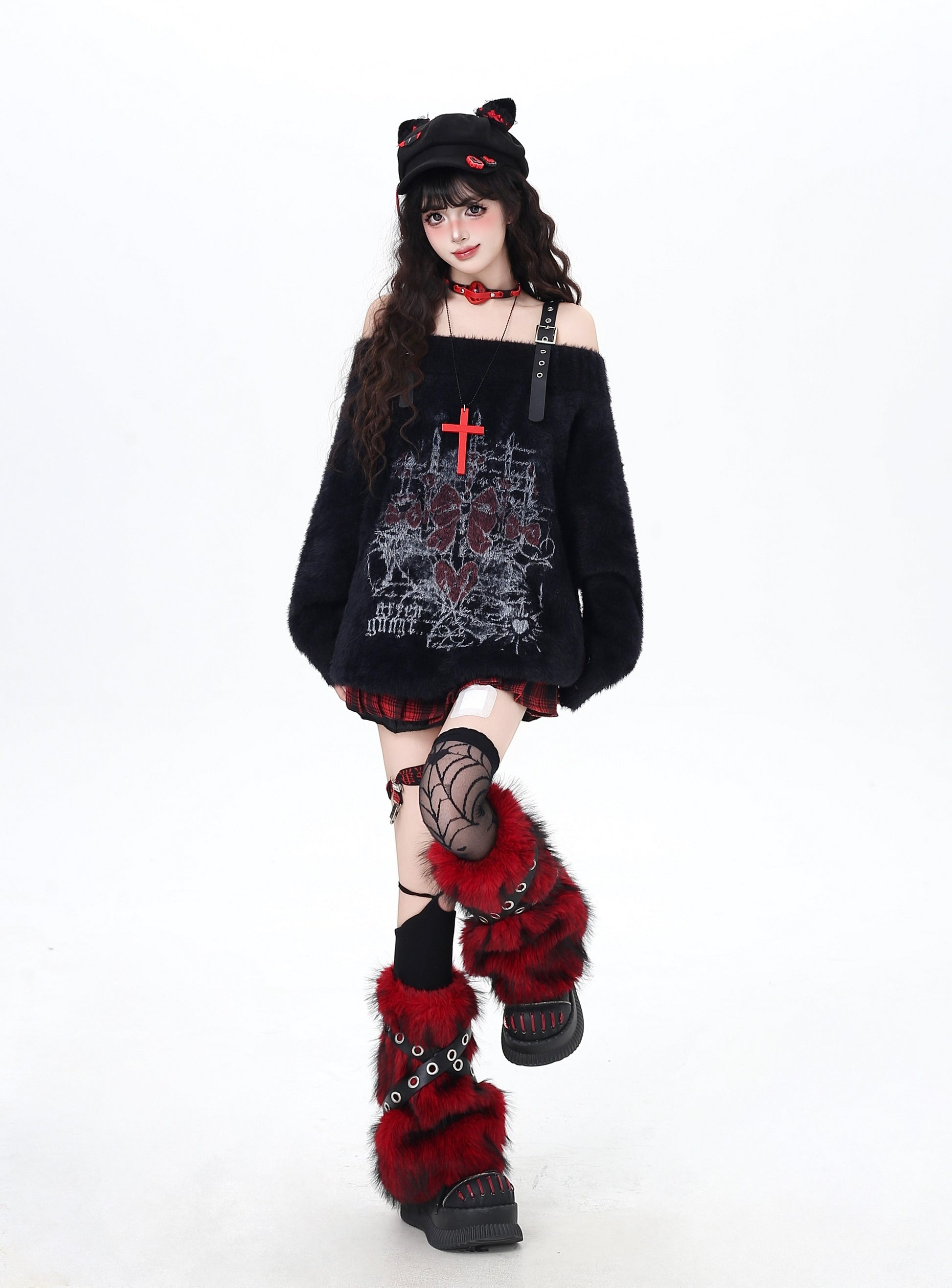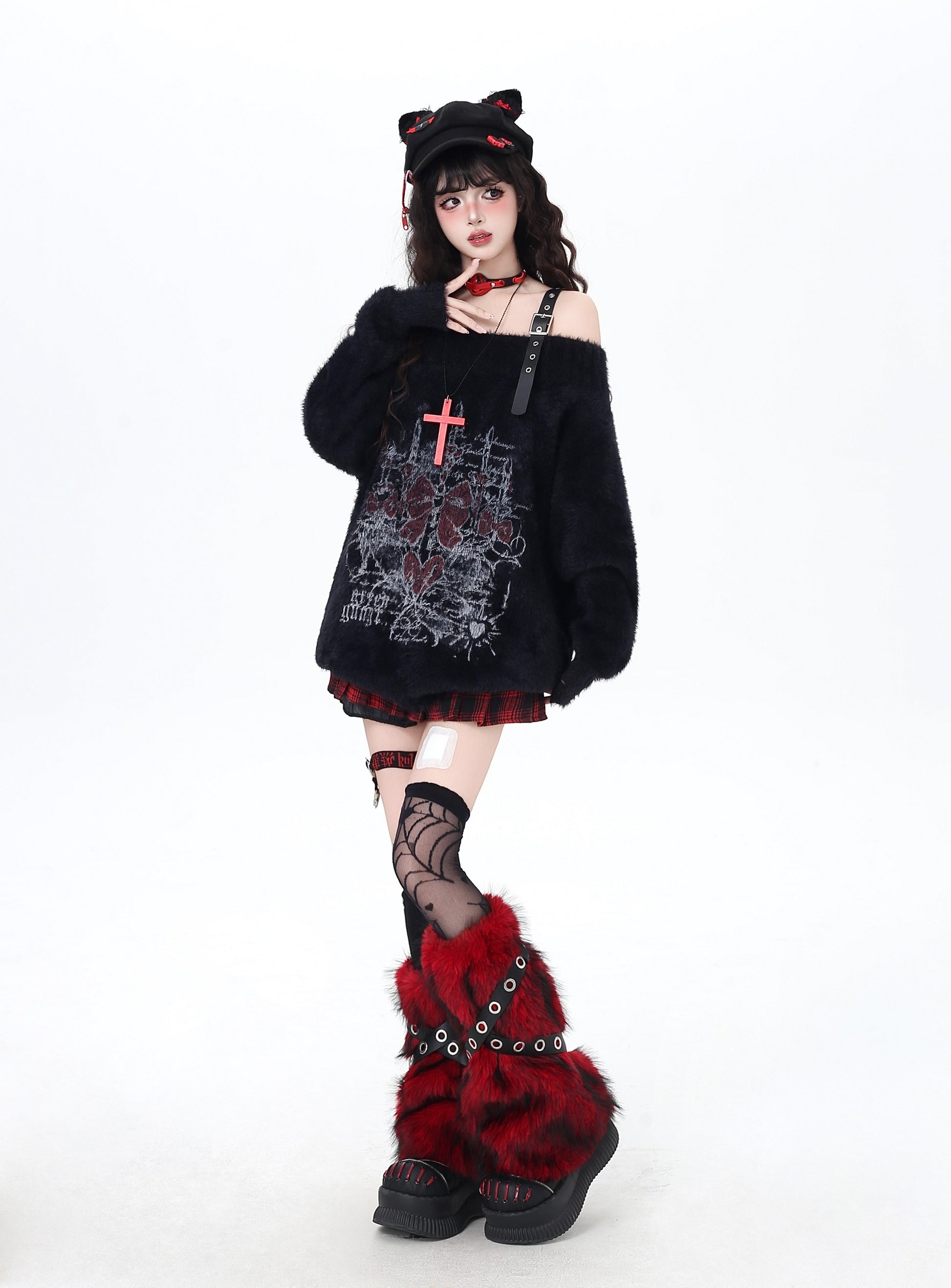 肩出し甘め♡ふわもこフェイクミンクゆるニット