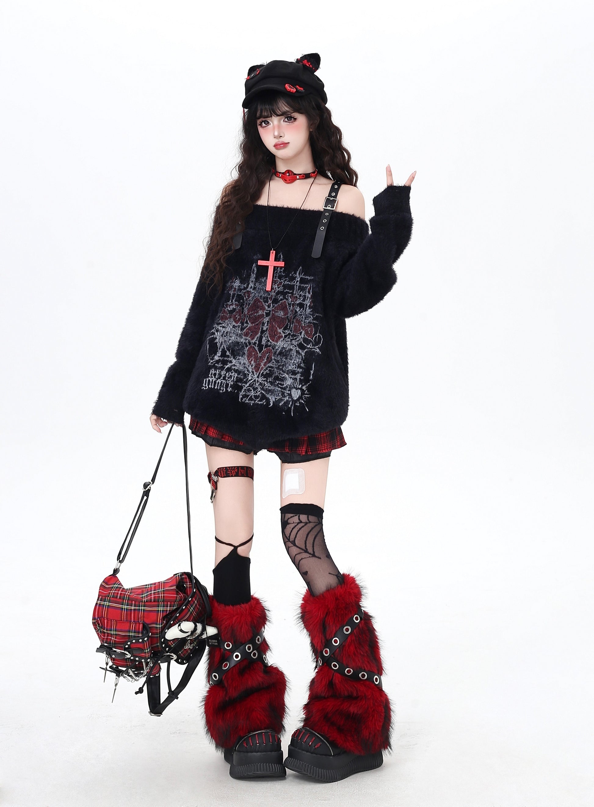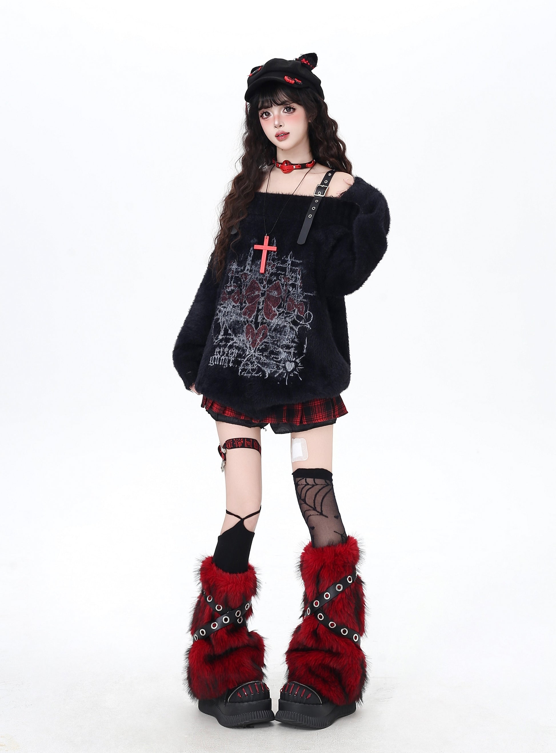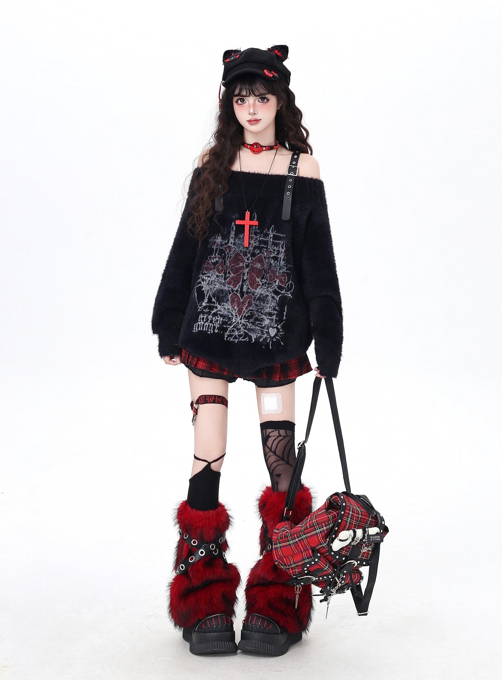肩出し甘め♡ふわもこフェイクミンクゆるニット