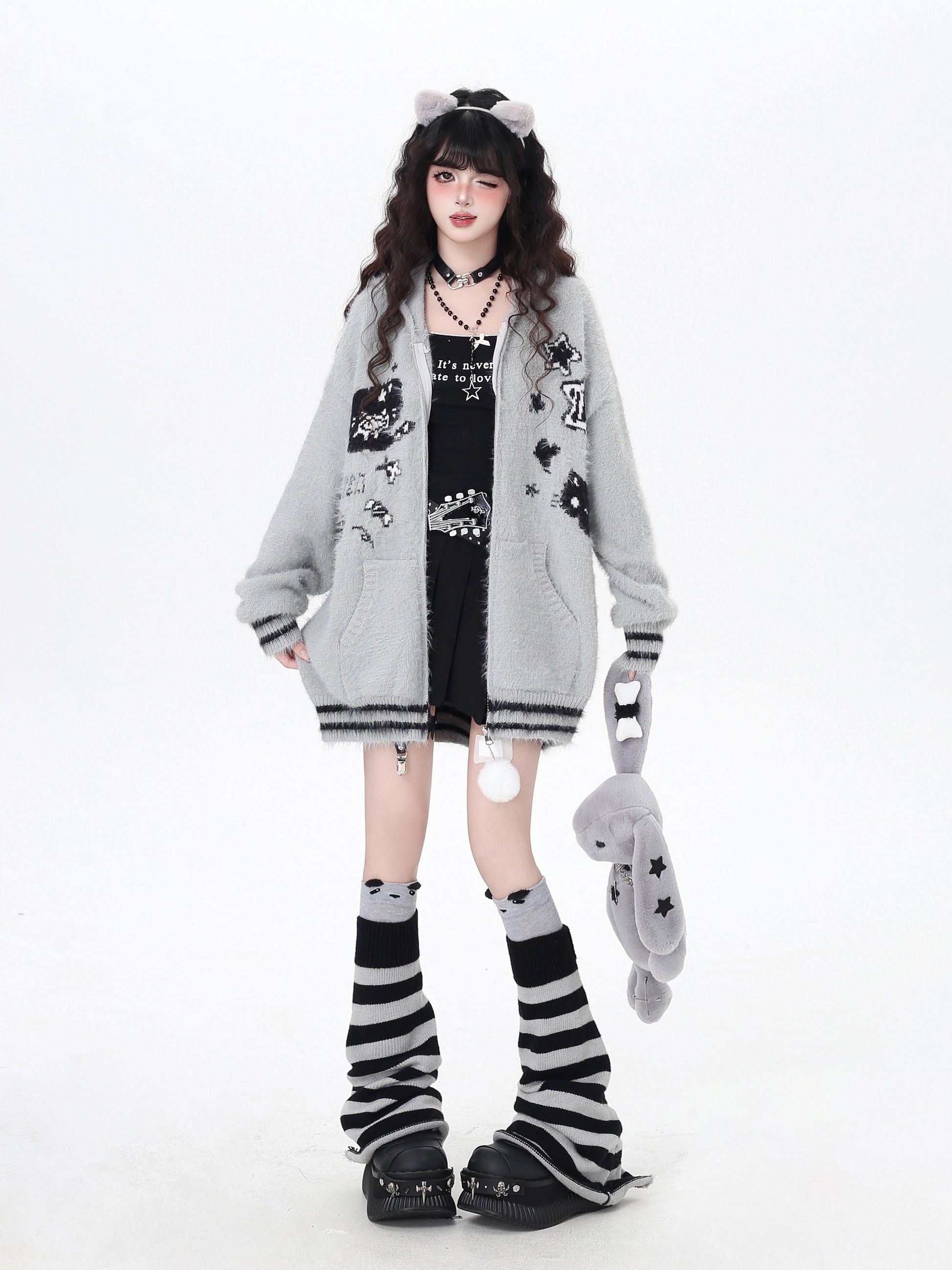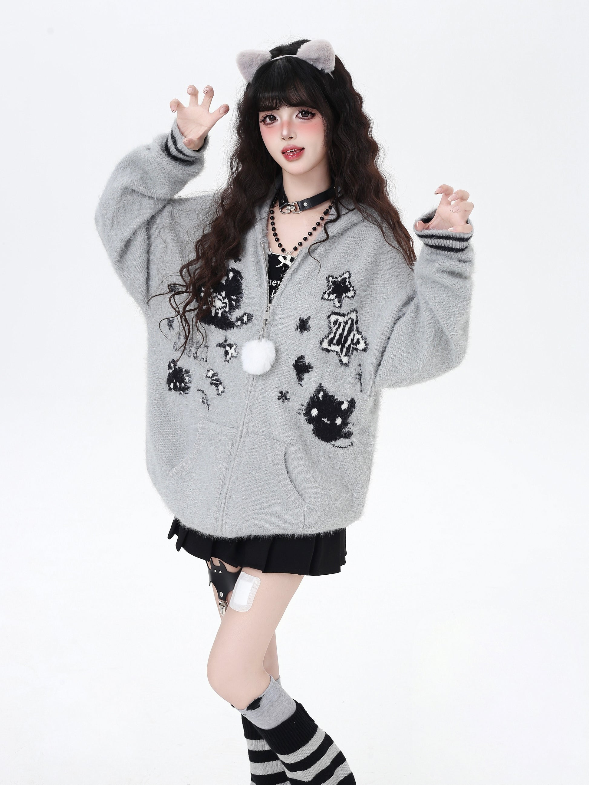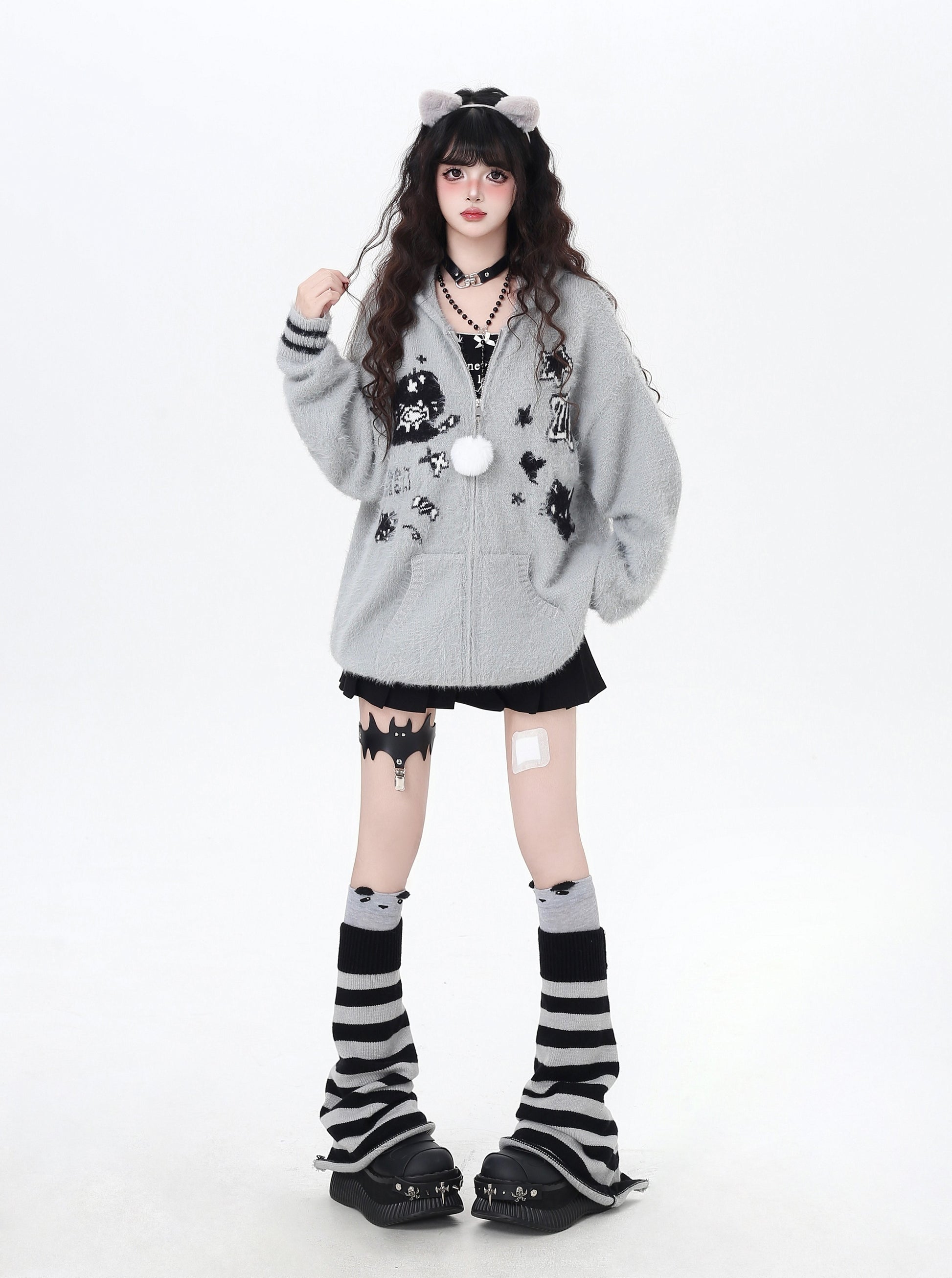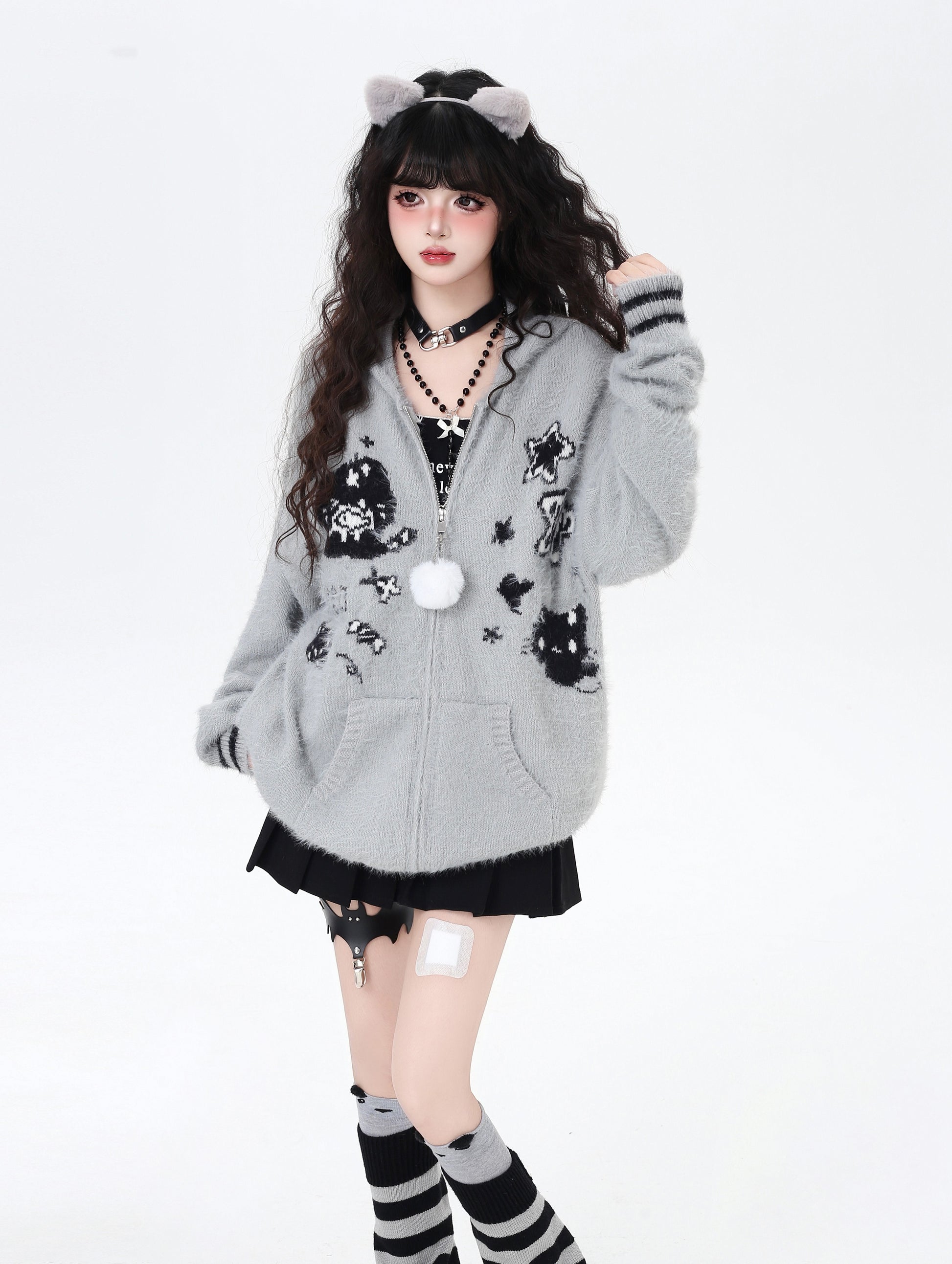 ふわふわのうさ耳フードとゆるっとしたシルエットが可愛いカーディガン🖤 秋冬コーデにぴったりで、甘めだけどちょっぴりクールなデザインがポイント✨ デイリーからお出かけまで幅広く着回せます♡