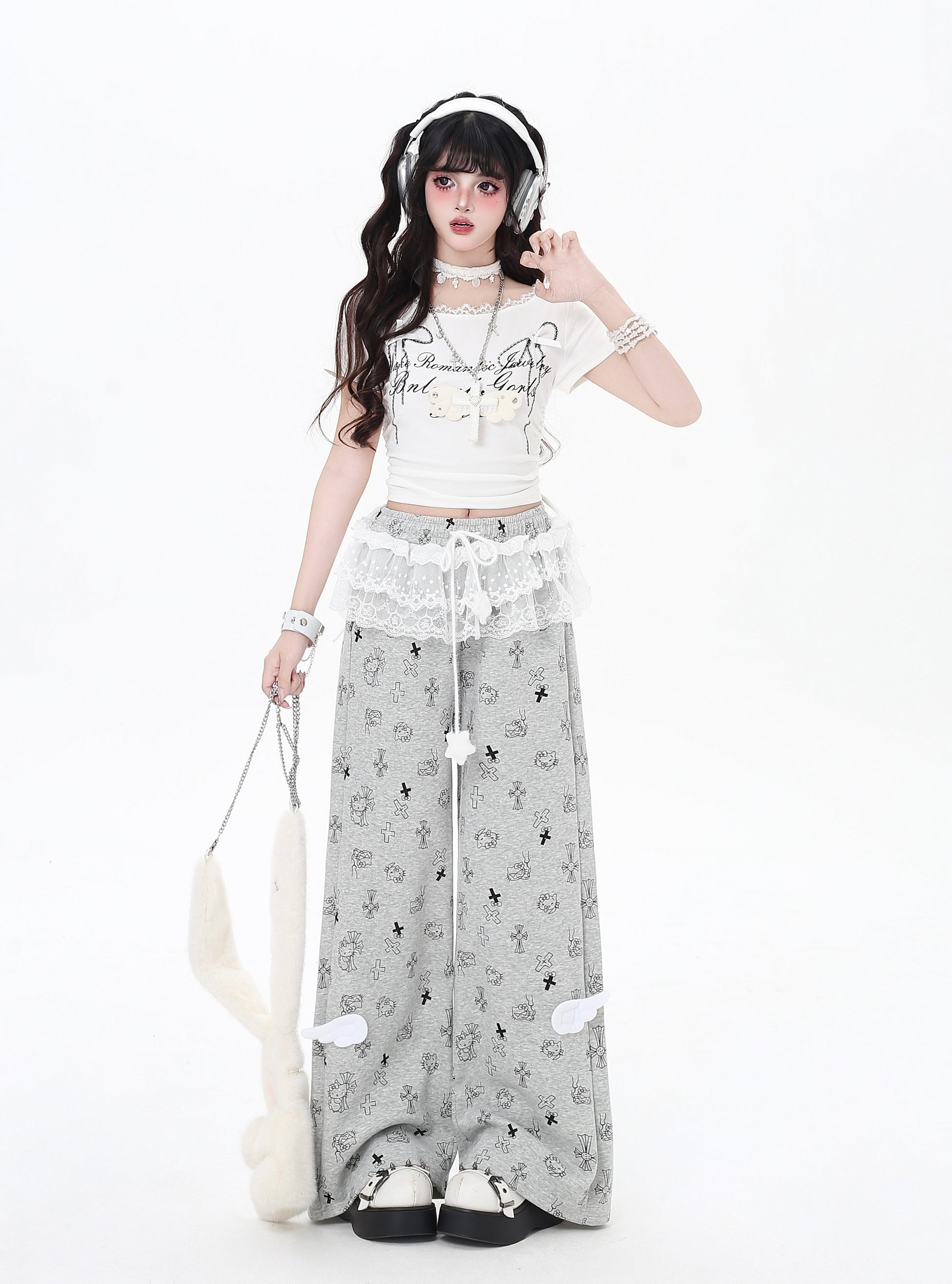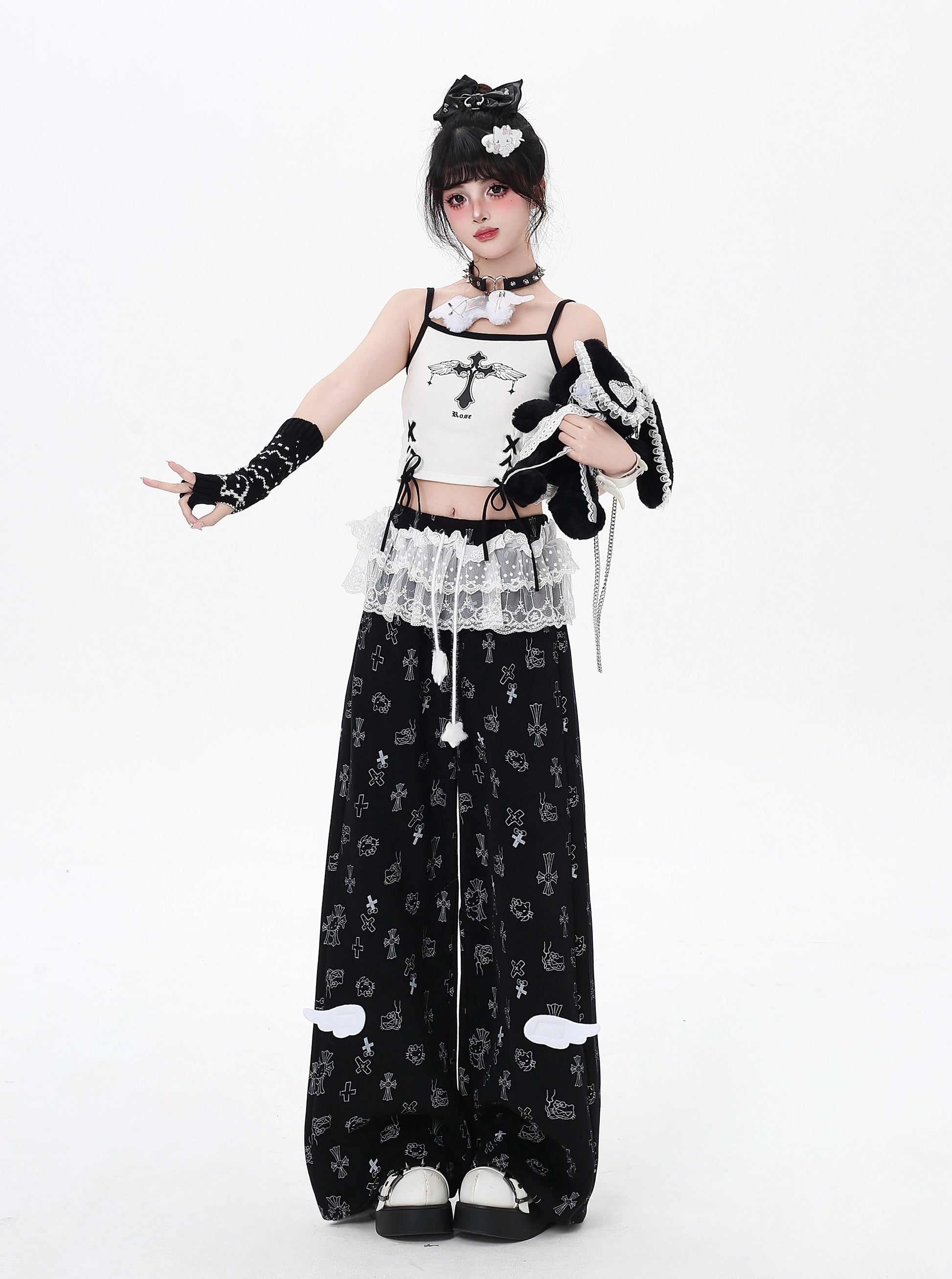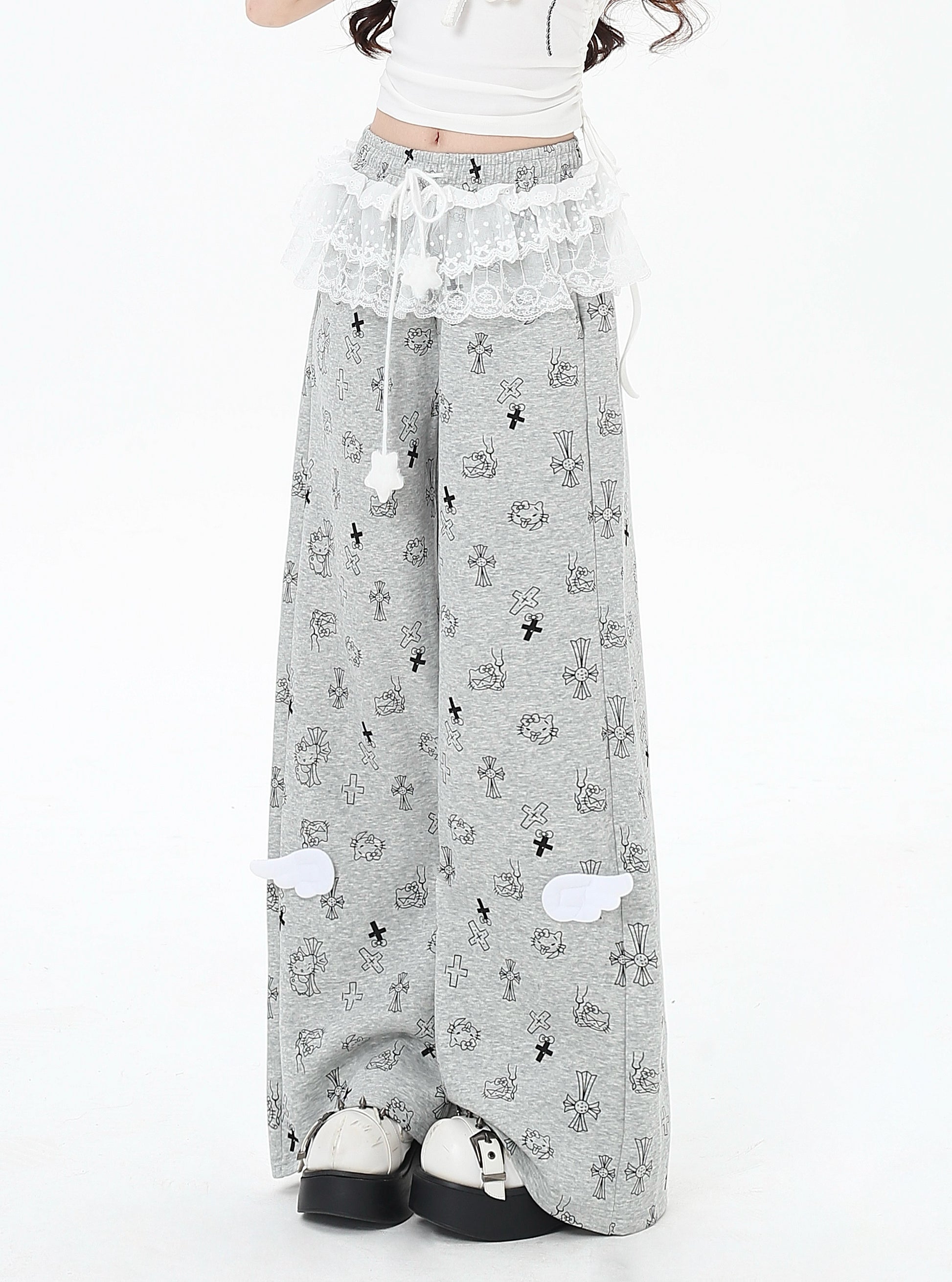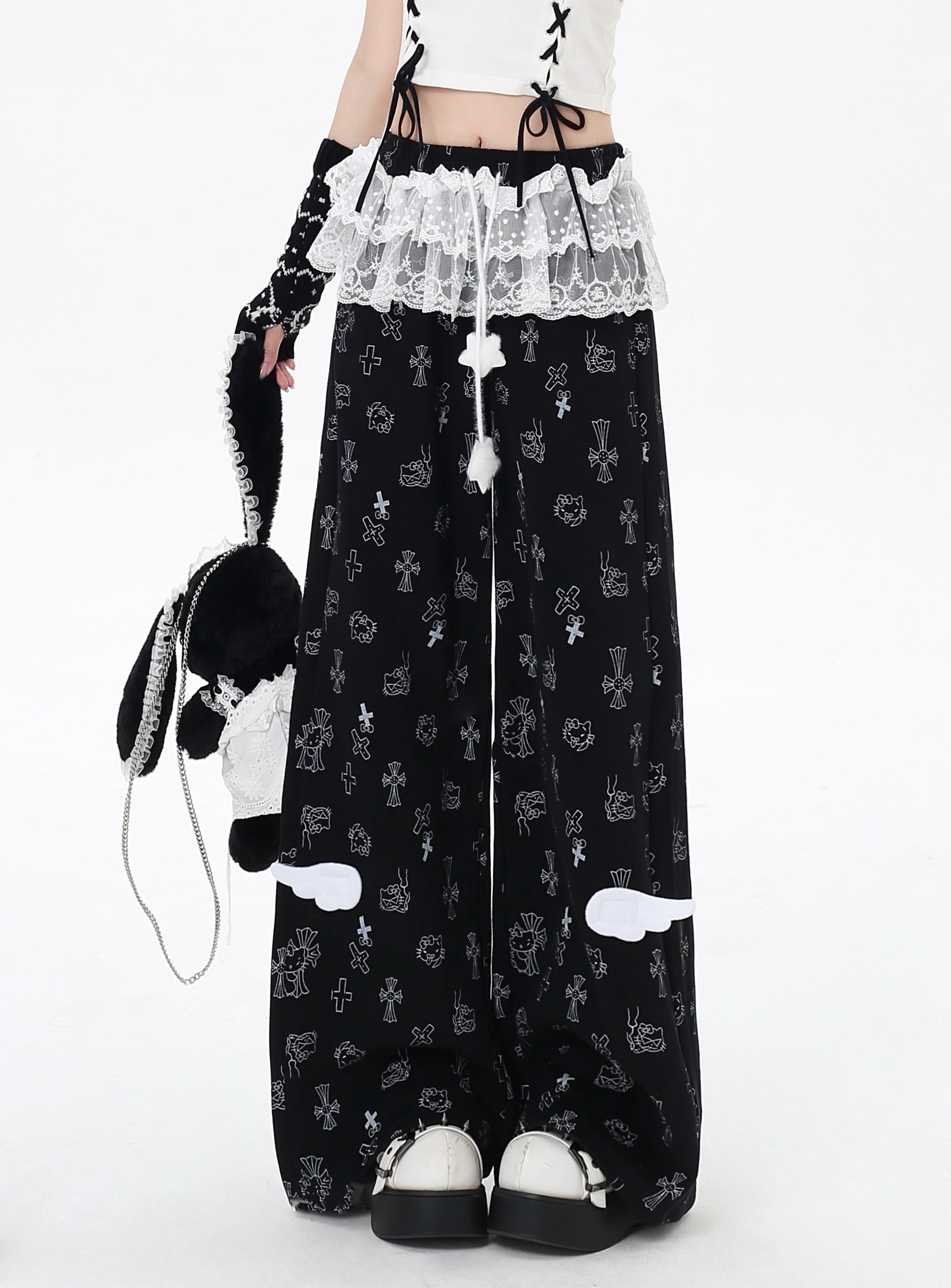 猫柄レーススウェットパンツ🖤ゆる甘ストリート