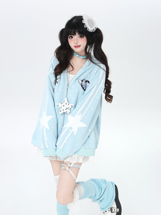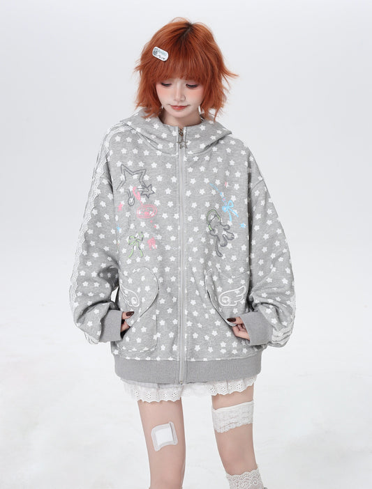 春先ゆる地雷風ネコ×星柄フードスウェット