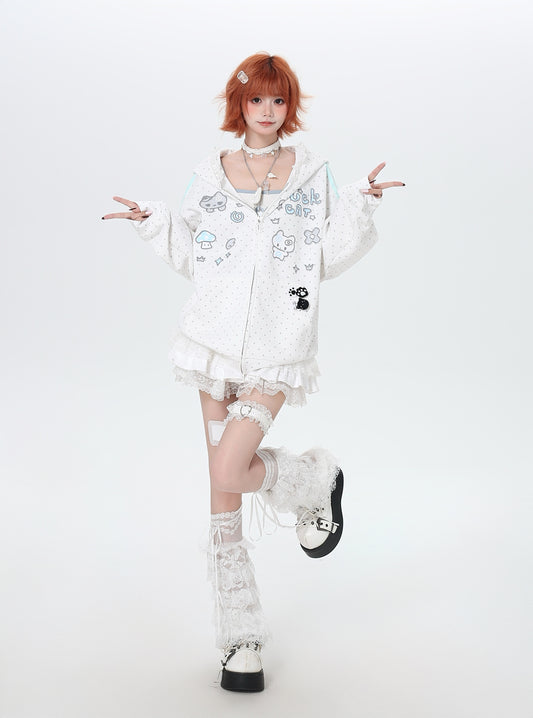 るカワ水玉フードスウェットジャケット