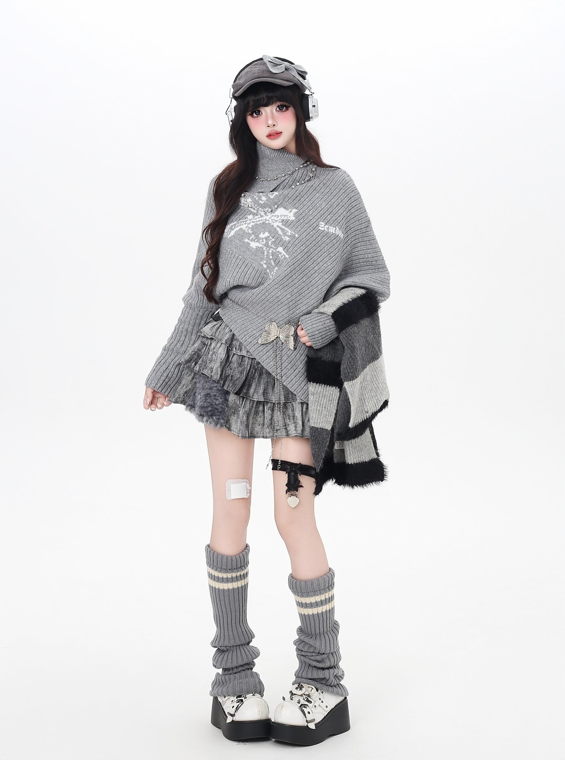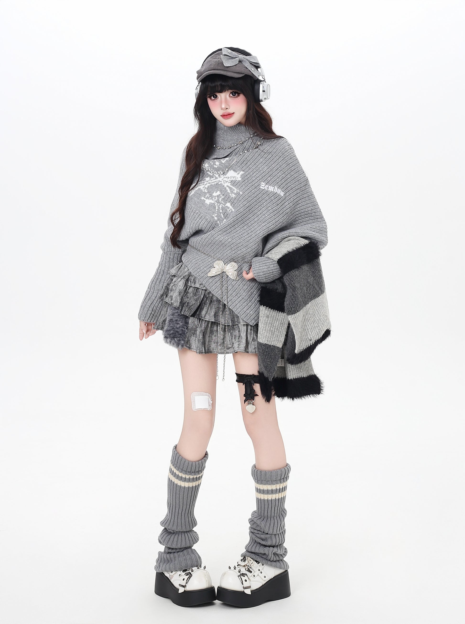 柔らかくて温かみのある素材感と、不規則デザインのハイネックがポイントのニット。
