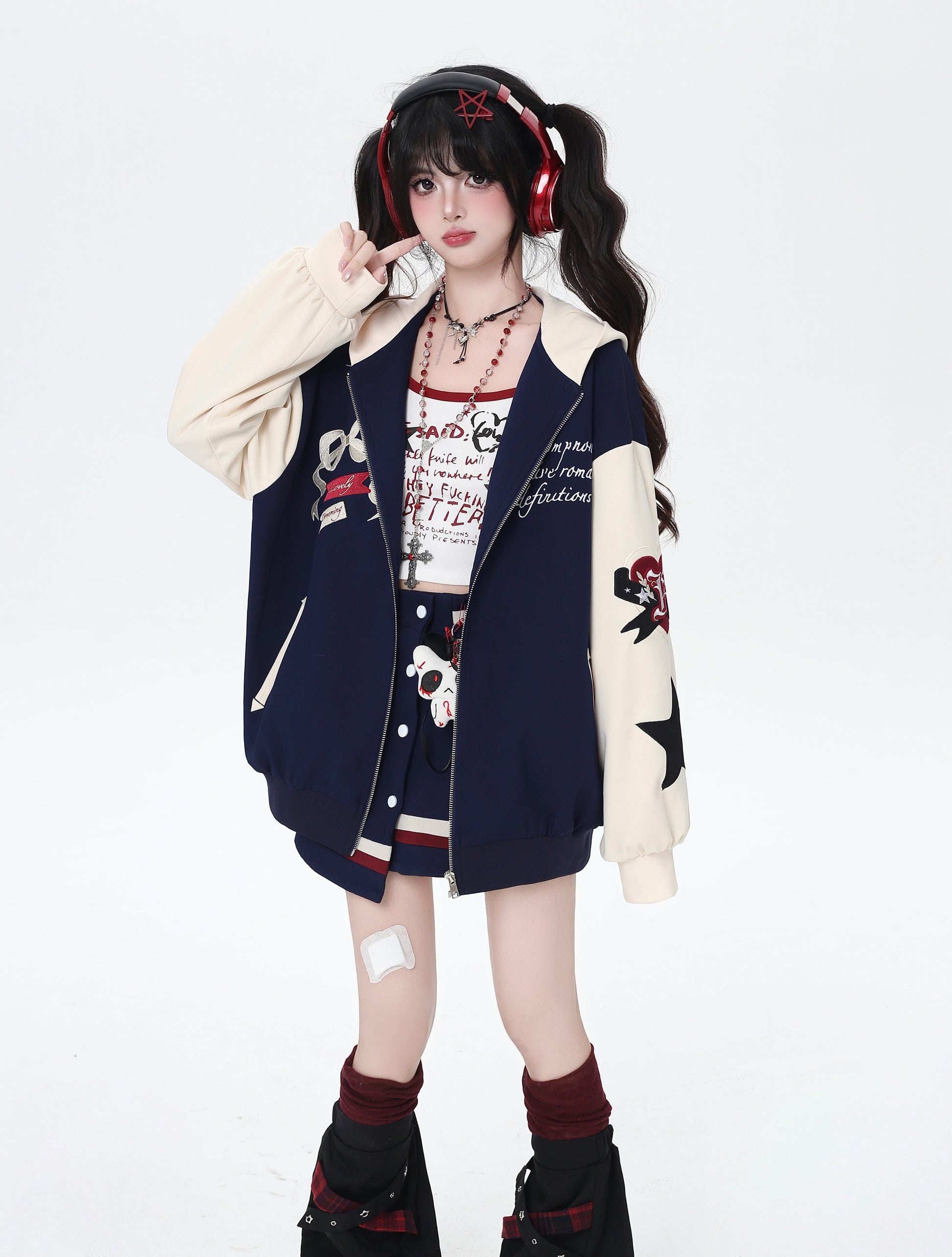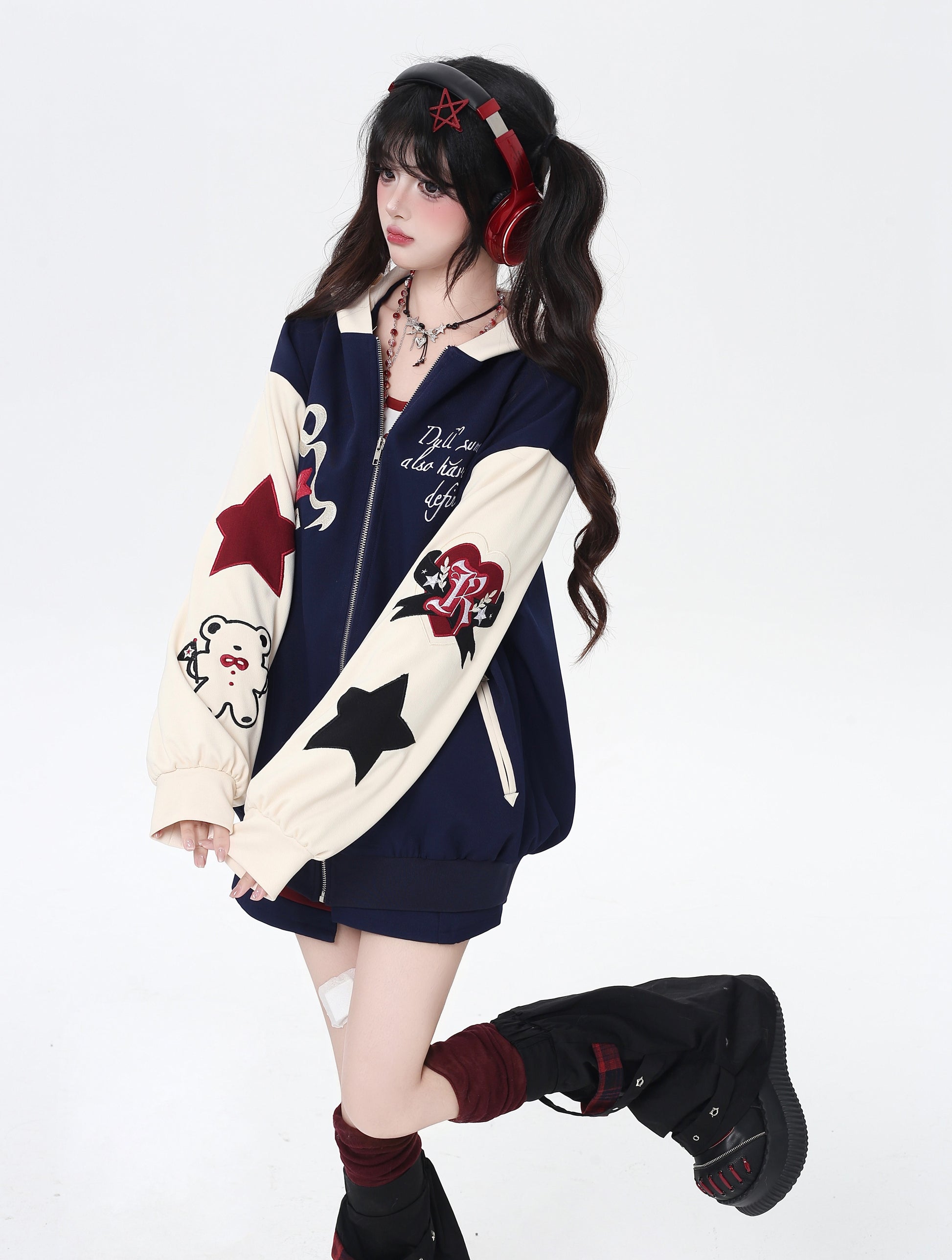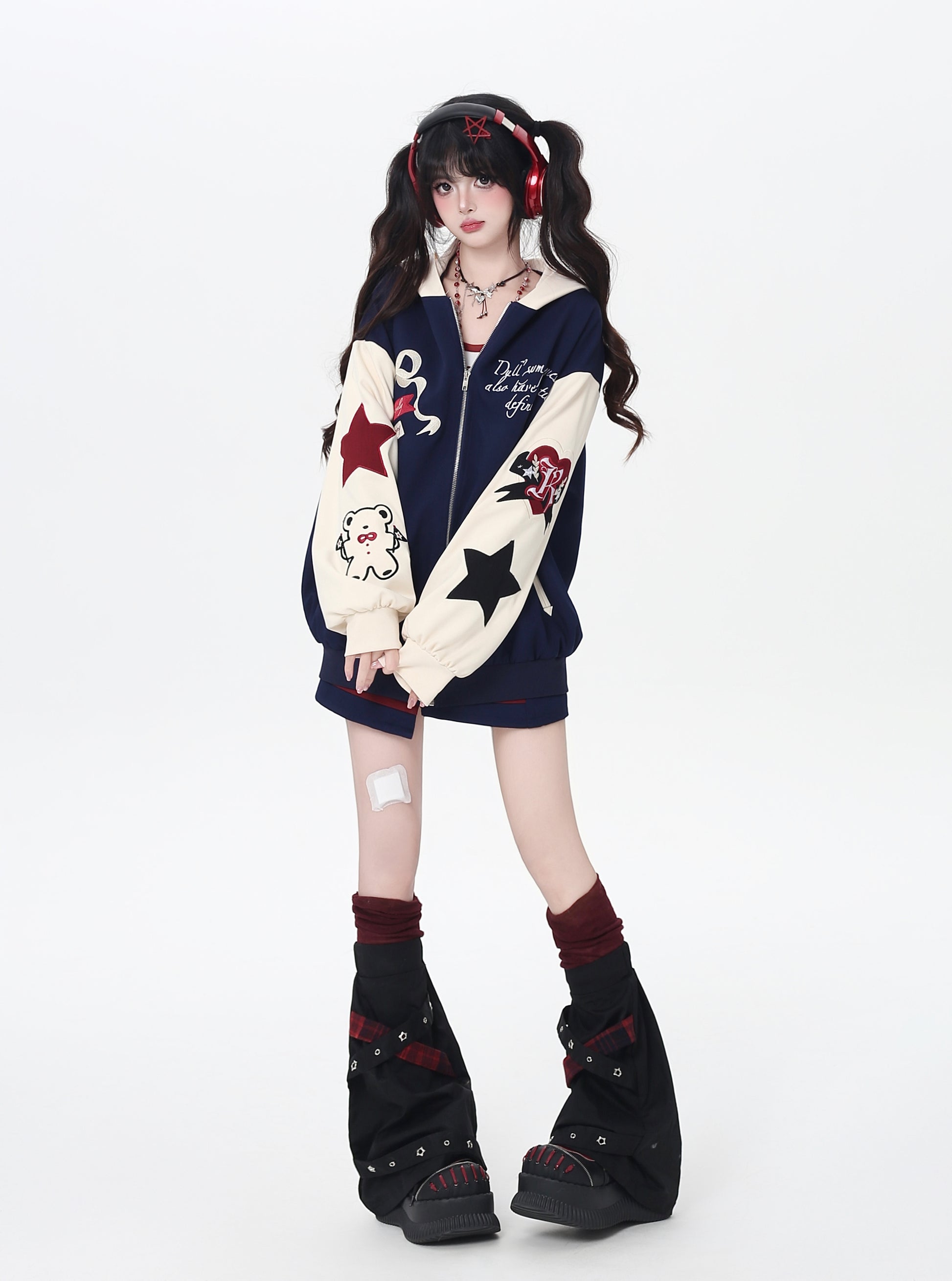 くま刺繍ストリートブルゾン|ゆる甘カジュアルアウター