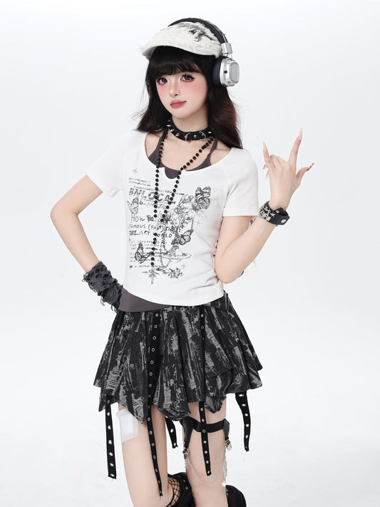 星柄ストライプティアードミニスカート|インナーパンツ付き
